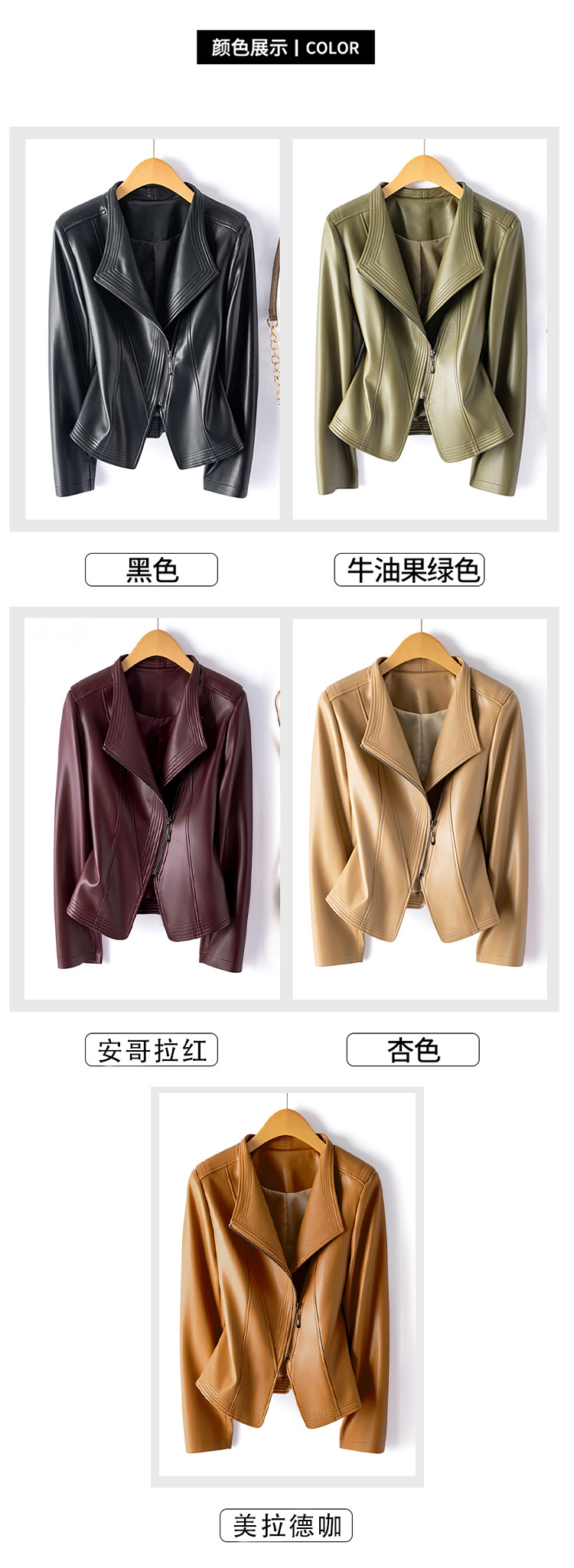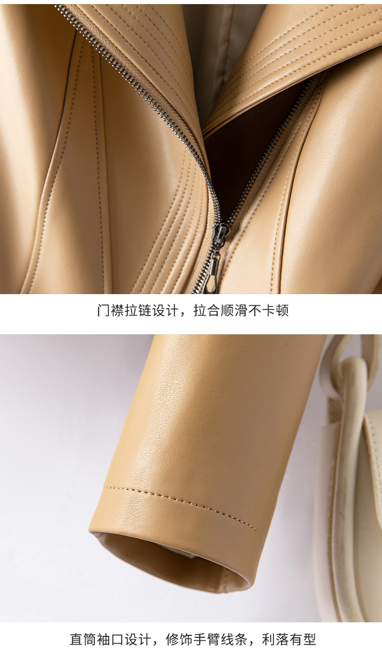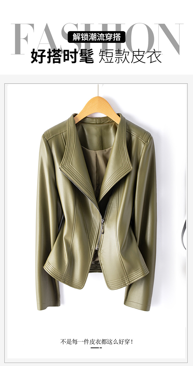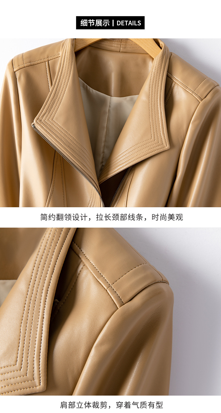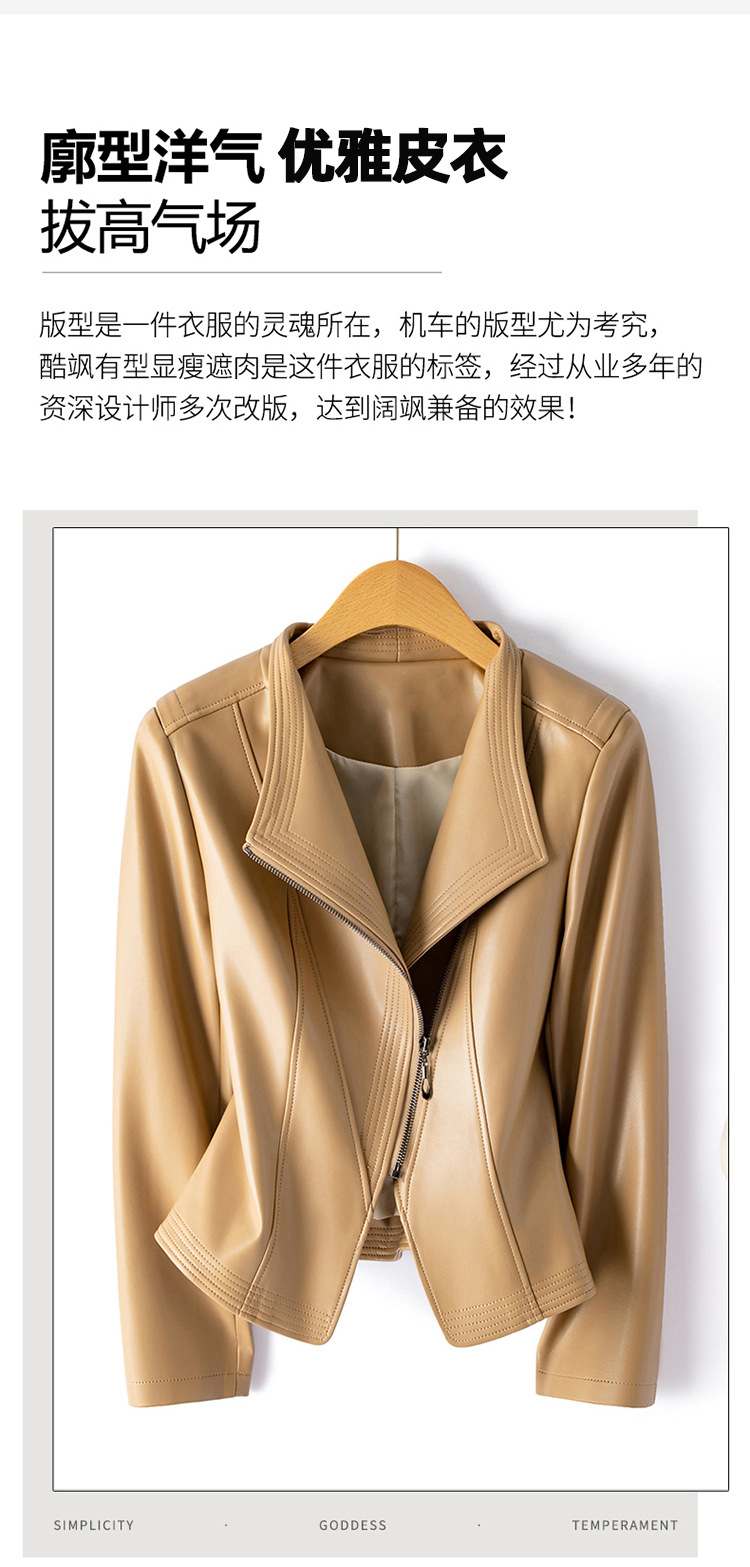 가죽 여성용 2025 바이커 여성용 가죽 자켓 플러스 사이즈 슬림 핏 슬리밍 가죽 재킷 옷깃 멀티 컬러 1911