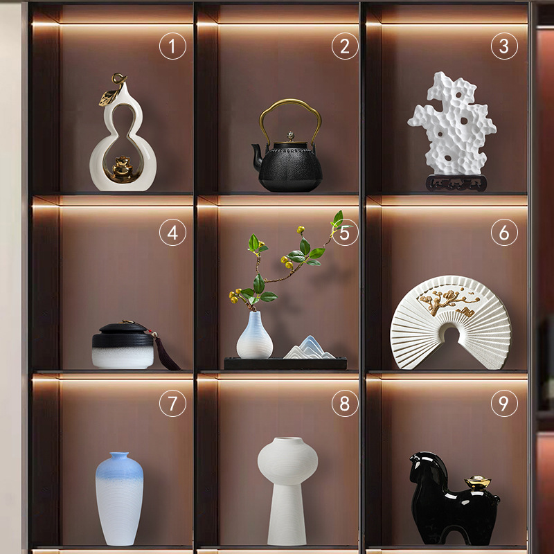 새로운 중국 스타일 홈 가구 모델 룸 부드러운 장식 스터디 룸 거실 와인 캐비닛 현관 골동품 랙 장식품