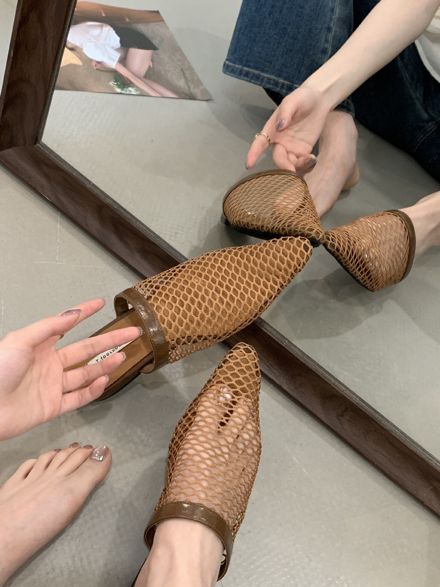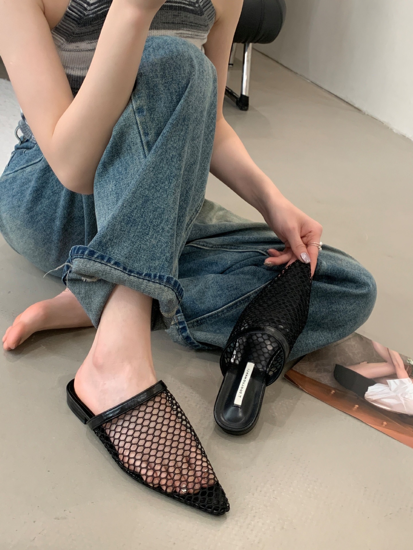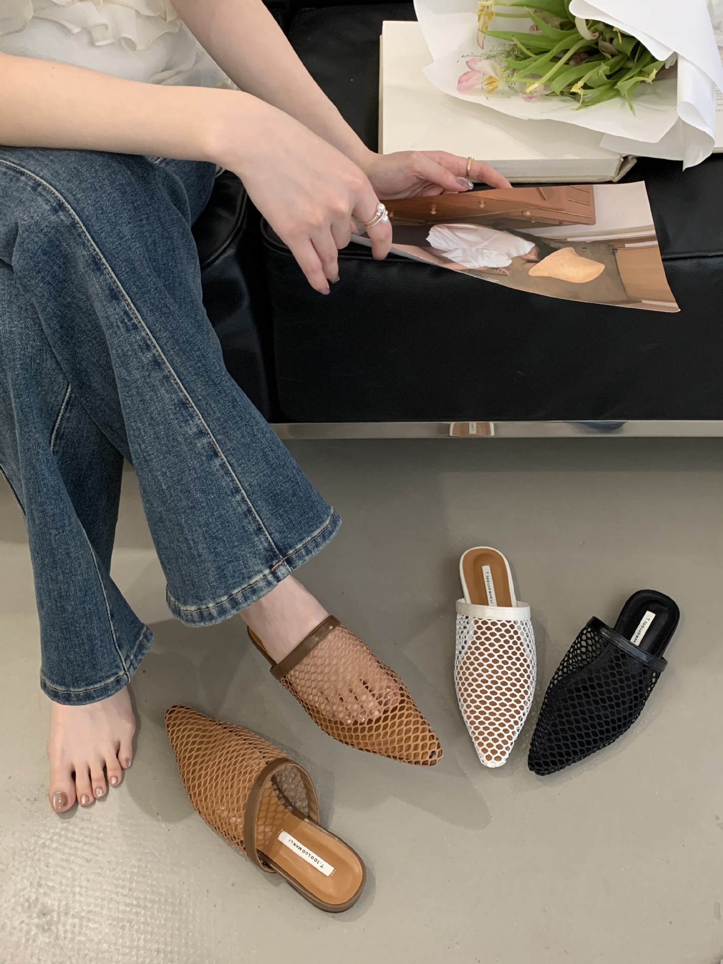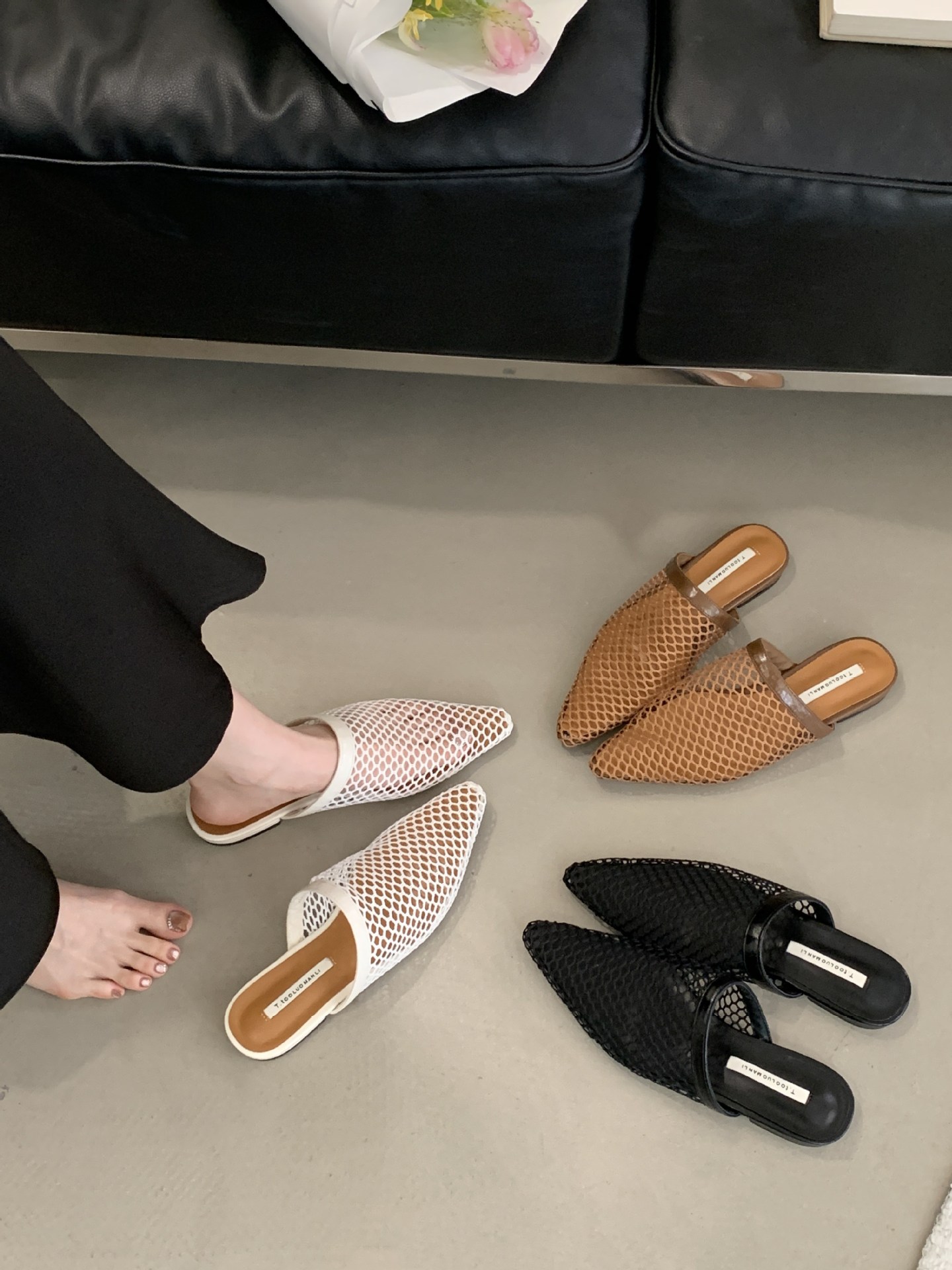 2025 여름 새로운 여성 슬리퍼 외부 착용 플랫 힐 메쉬 통기성 인터넷 인기 패션 중공 바오터우 샌들