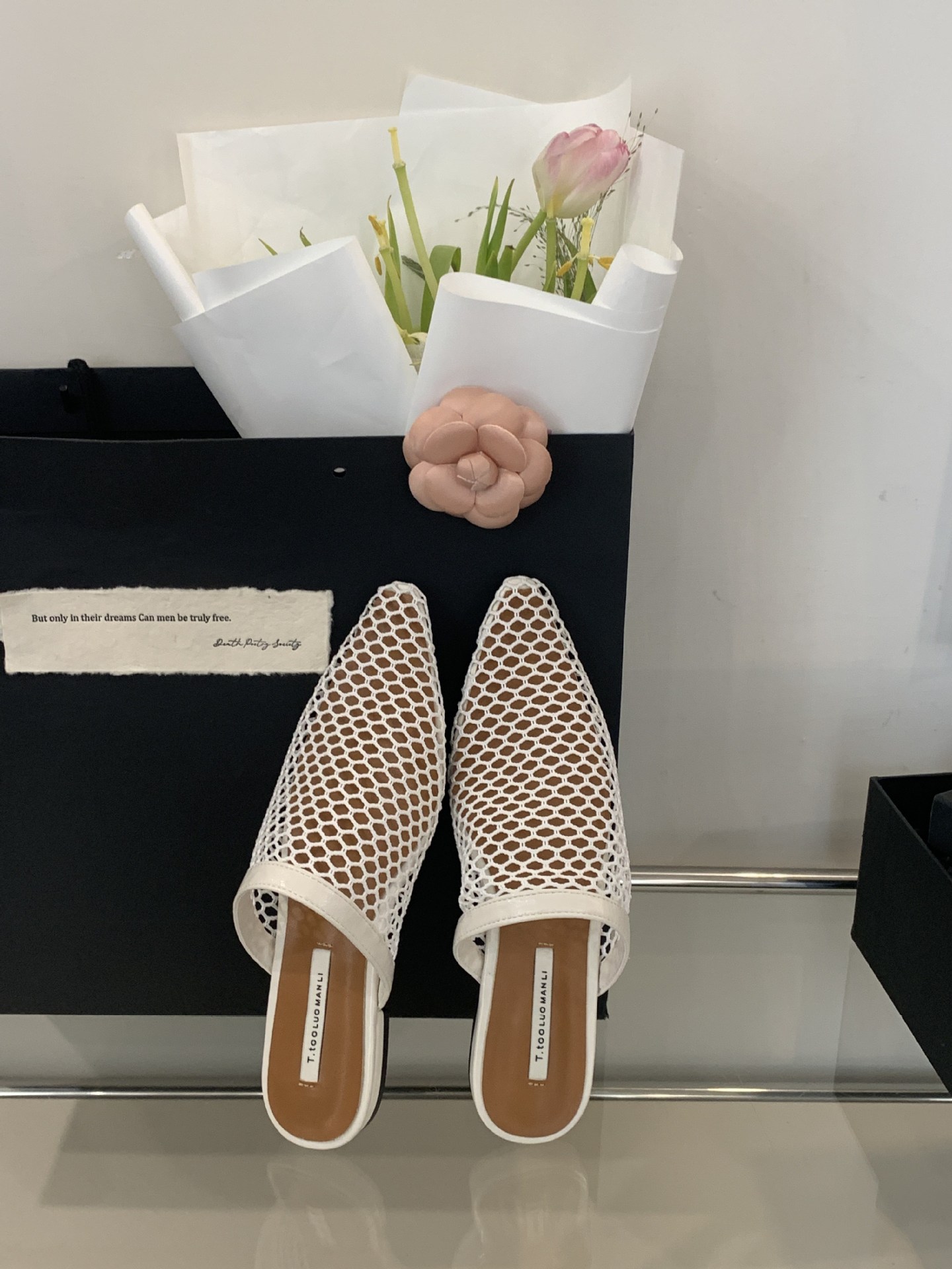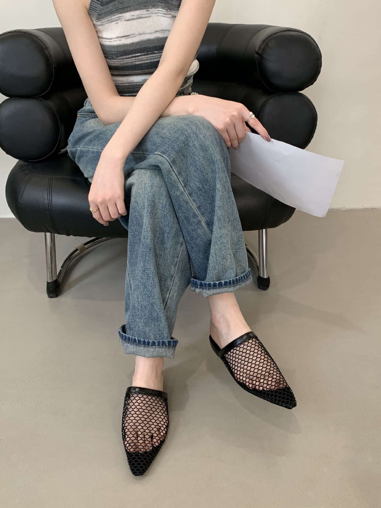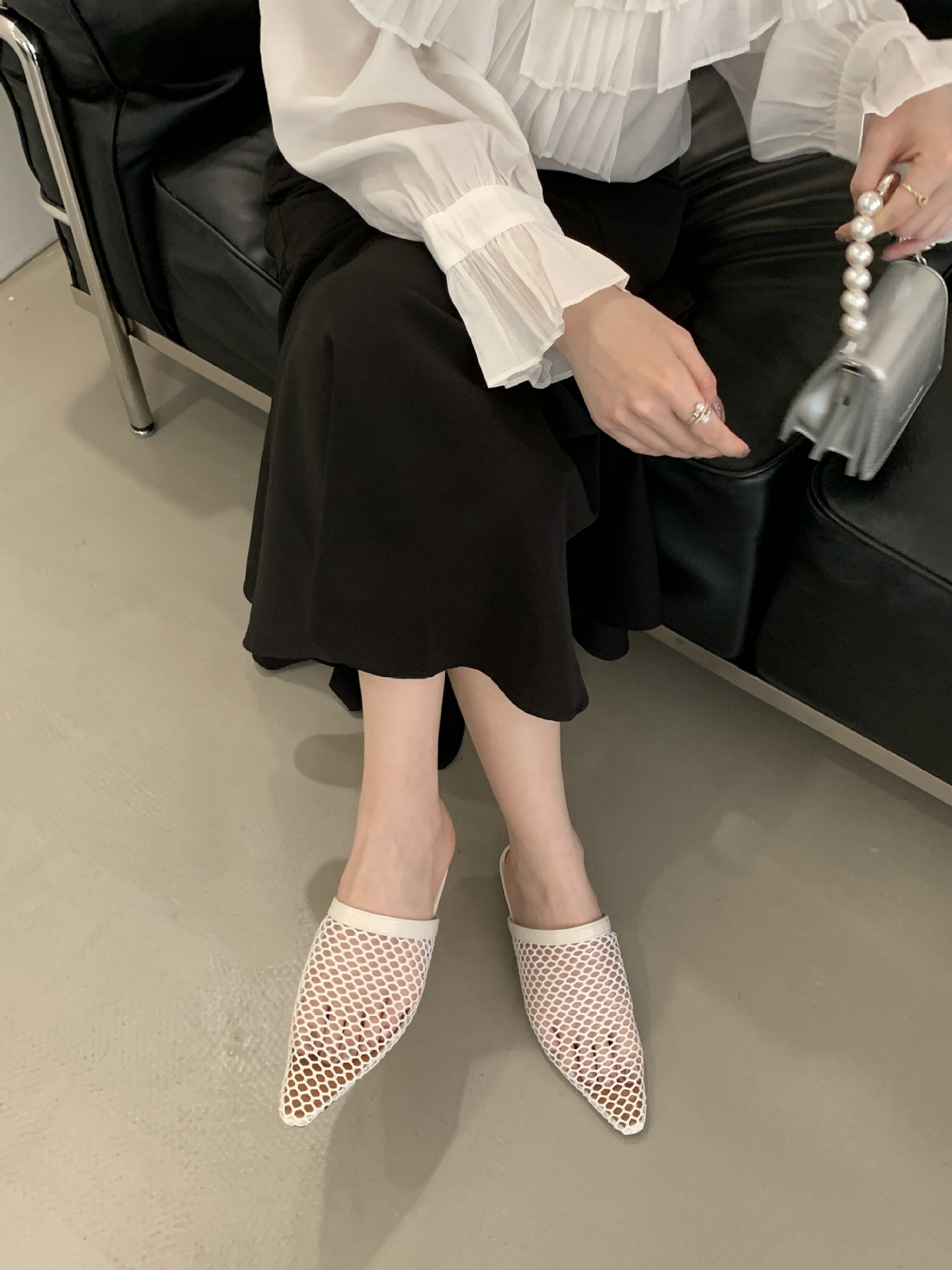 2025 여름 새로운 여성 슬리퍼 외부 착용 플랫 힐 메쉬 통기성 인터넷 인기 패션 중공 바오터우 샌들