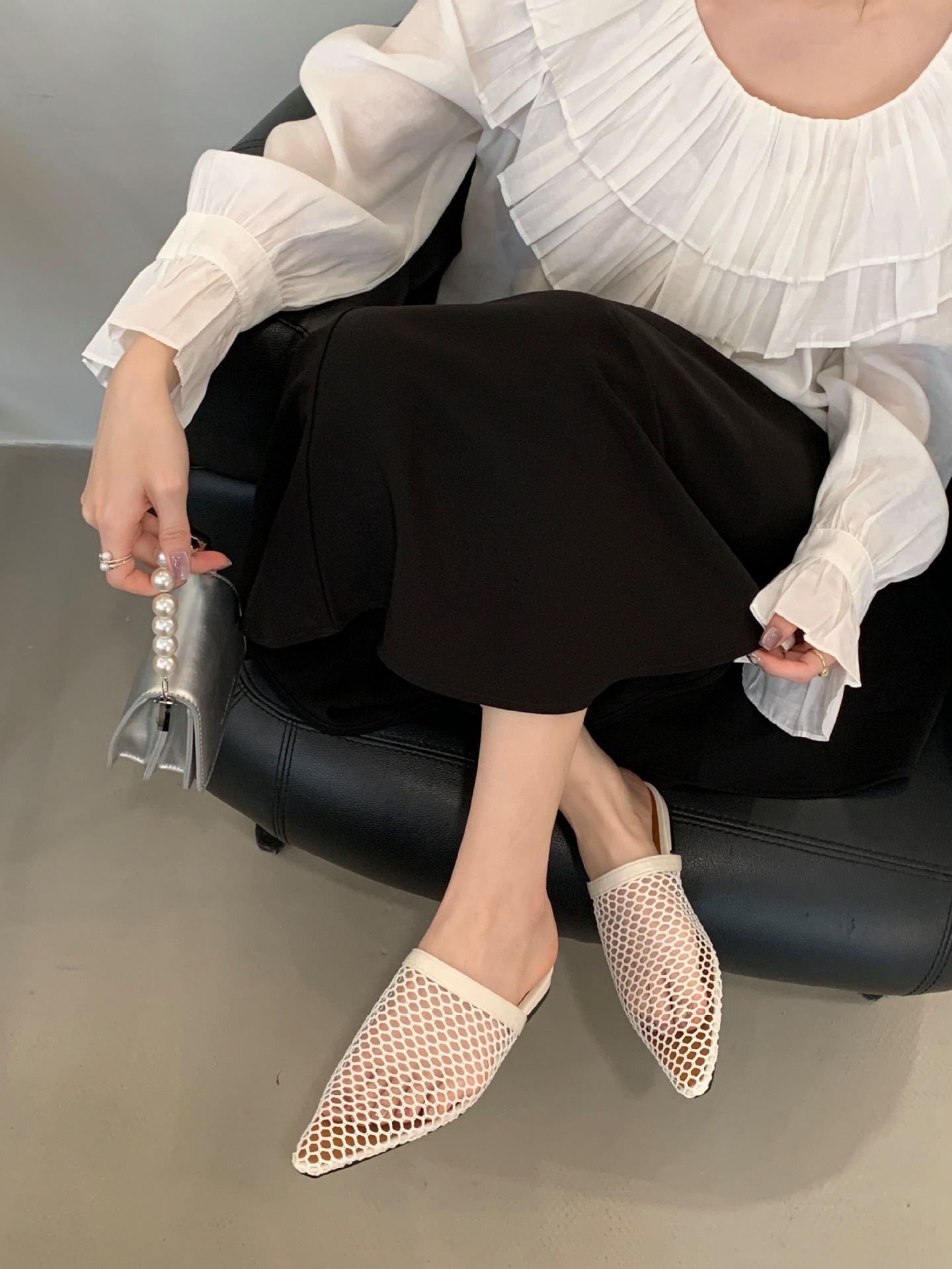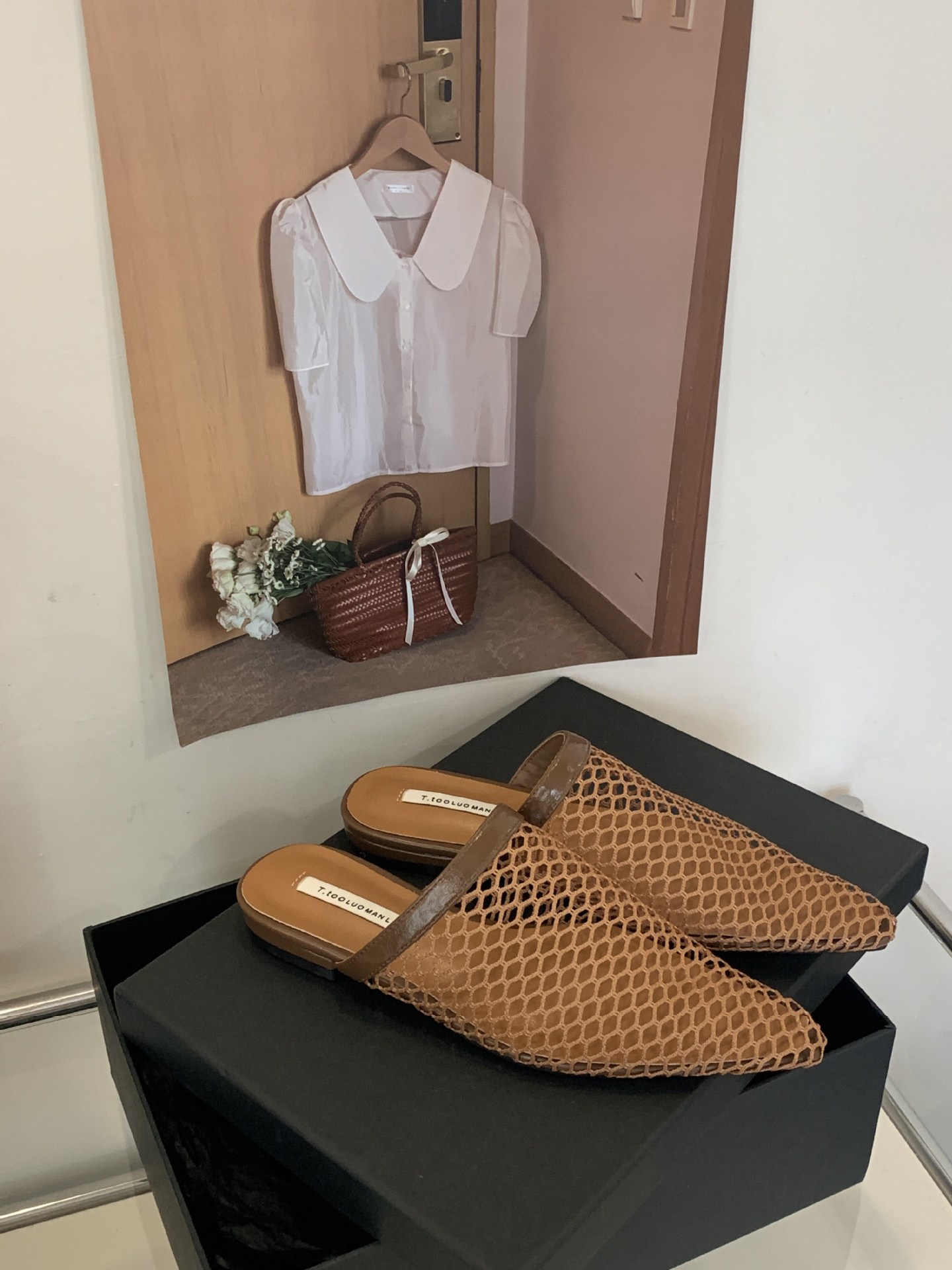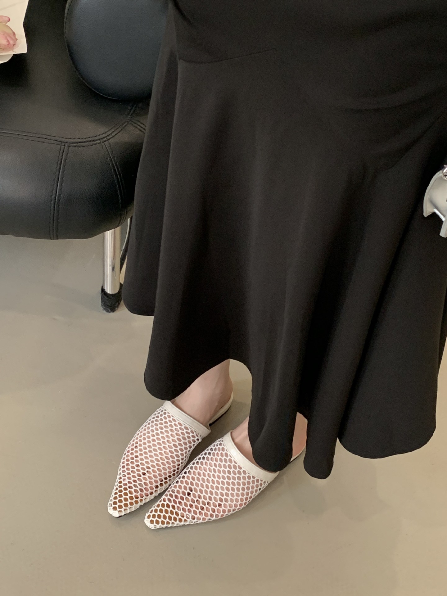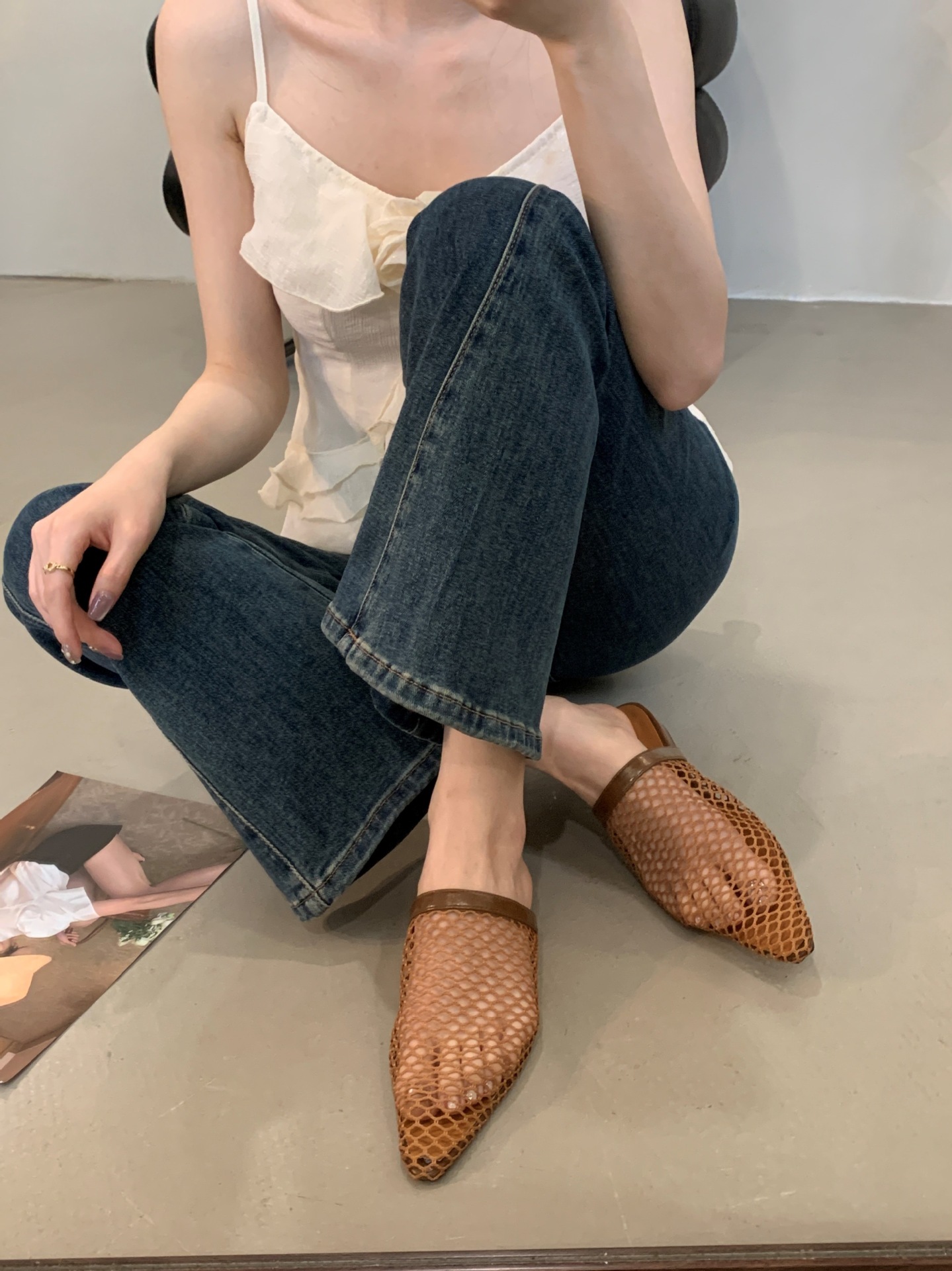 2025 여름 새로운 여성 슬리퍼 외부 착용 플랫 힐 메쉬 통기성 인터넷 인기 패션 중공 바오터우 샌들
