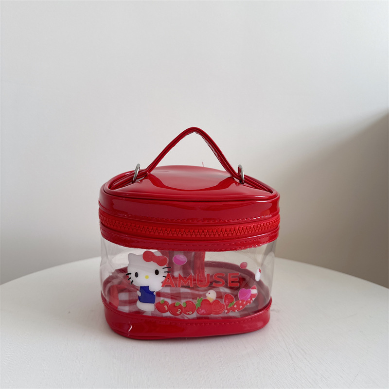 한국식 휴대용 메이크업 가방 양동이 높은 가치의 어린이 만화 고양이 인쇄 투명 메이크업 가방 스타스토어 가기