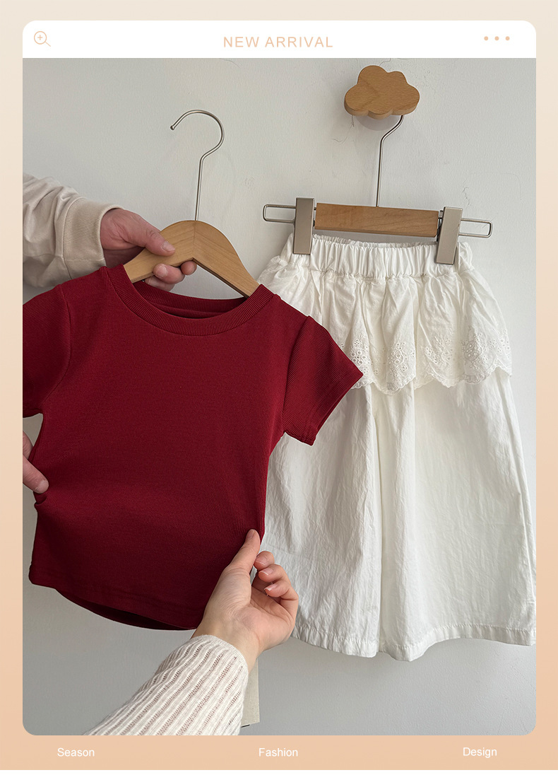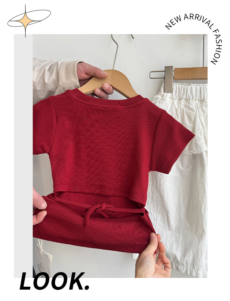 2025 새로운 아동복 소녀 여름 티셔츠 세트 아기 소녀 심플 스타일 어린이 반팔 앙코라 레드 탑