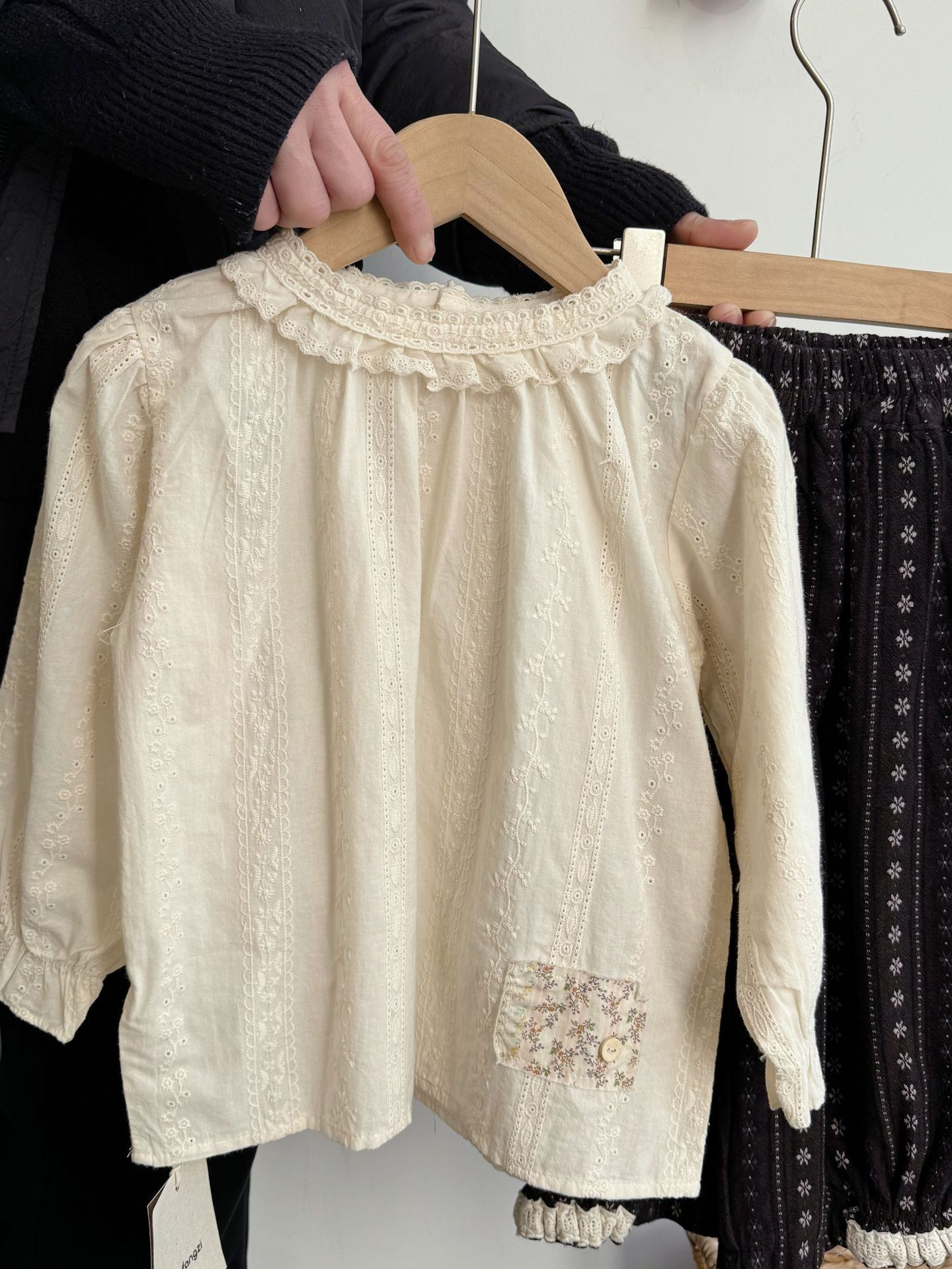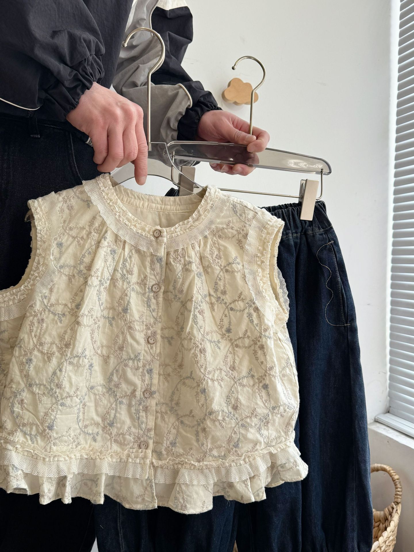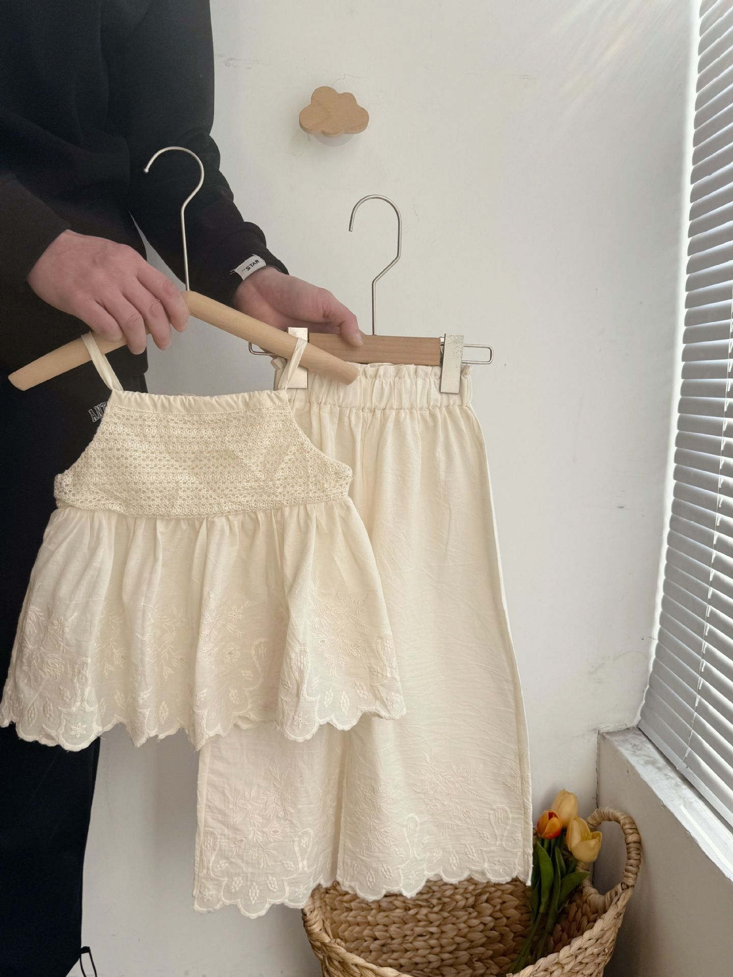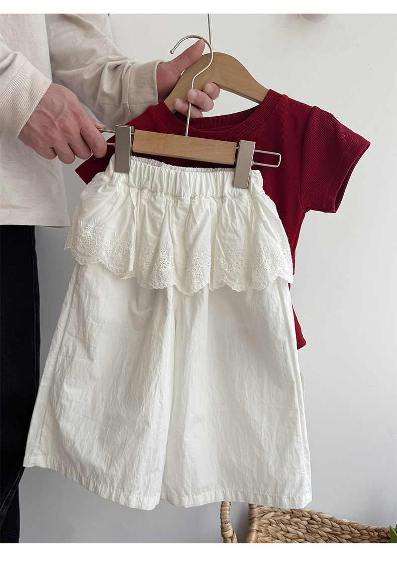 2025秋季中大女童拼接蕾丝花边牛仔裤中裤长裤设计感喇叭裤阔腿裤