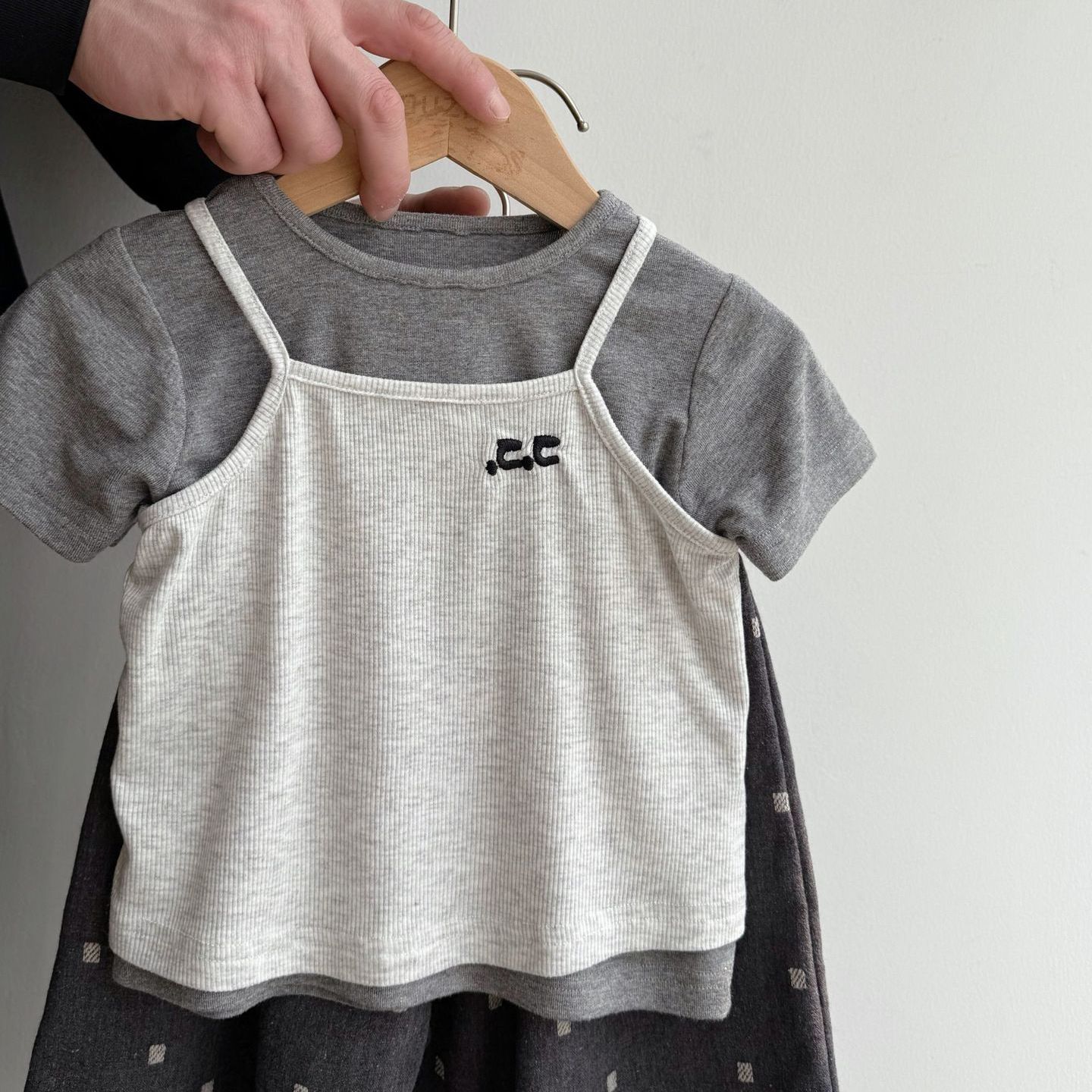 2025 새로운 아동복 소녀 여름 티셔츠 세트 아기 소녀 심플 스타일 어린이 반팔 앙코라 레드 탑스토어 가기