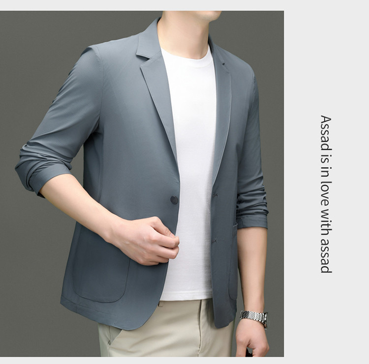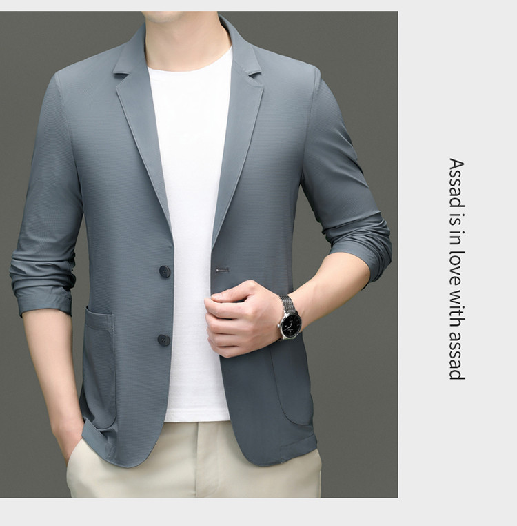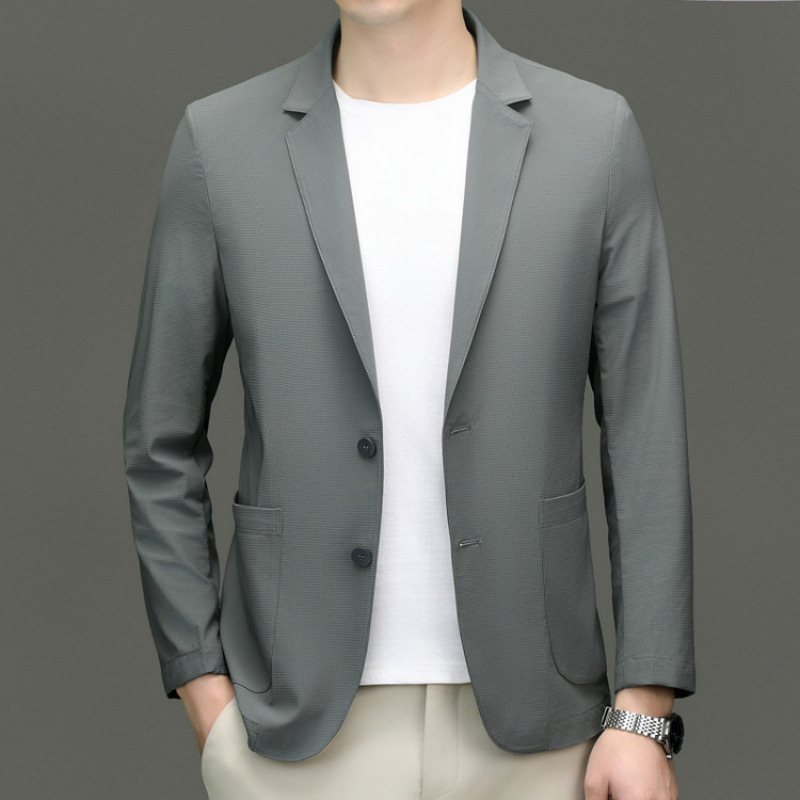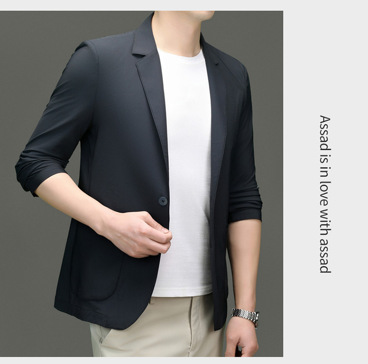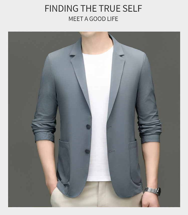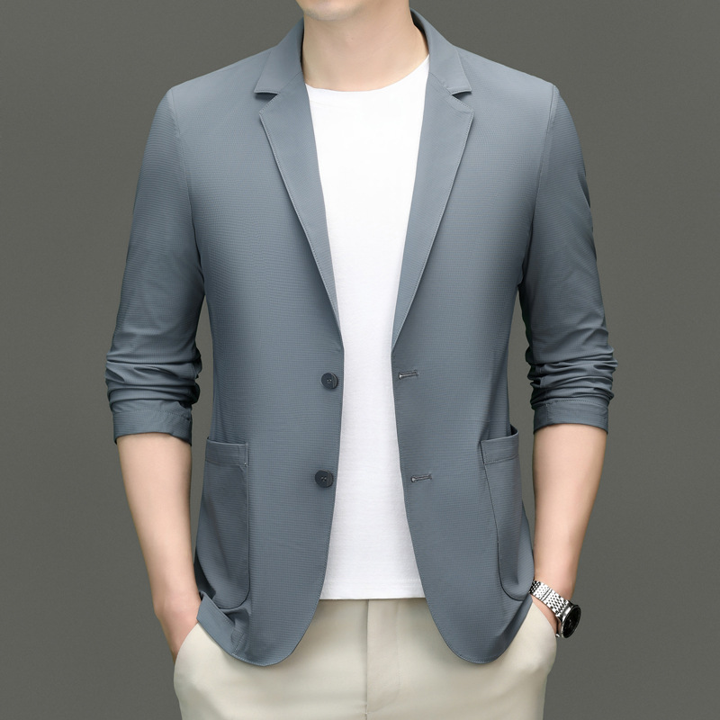 고급 스트레치 아이스 실크 남성 비즈니스 캐주얼 세트 2025 여름 선 스크린 얇은 세트 재킷 아빠 세트스토어 가기