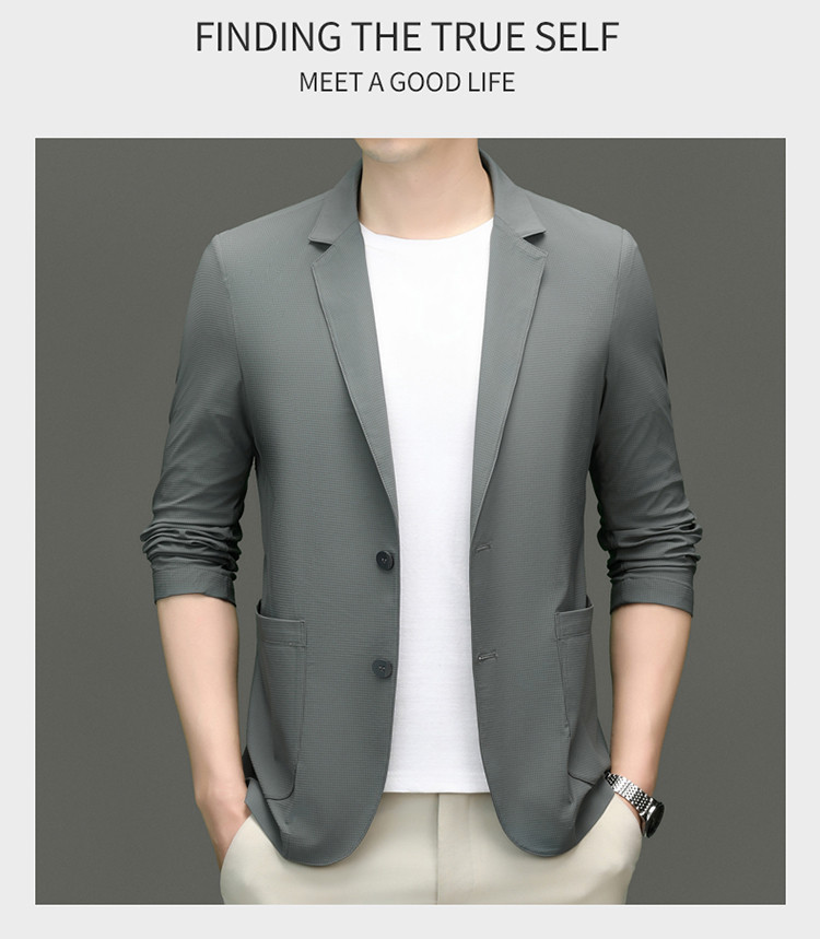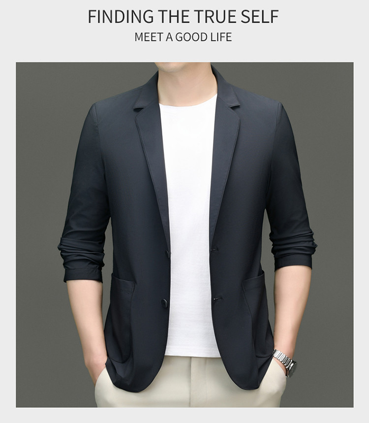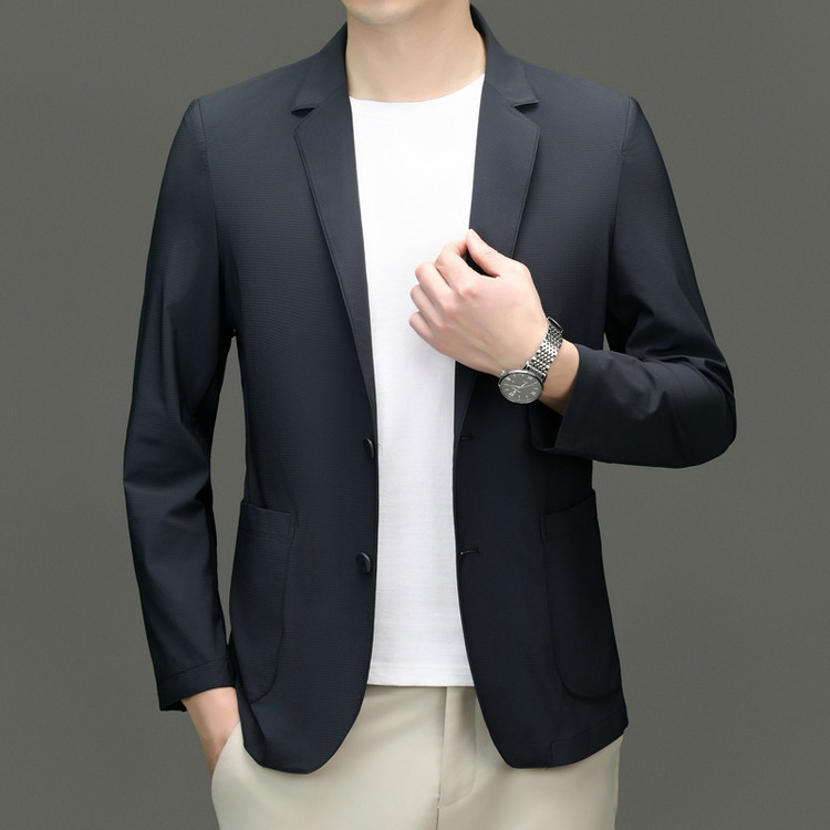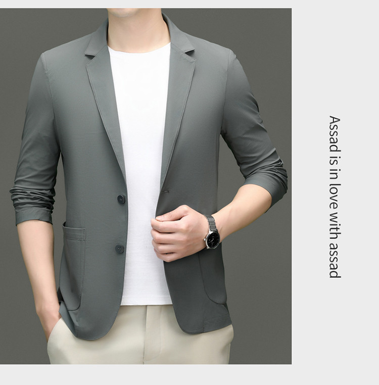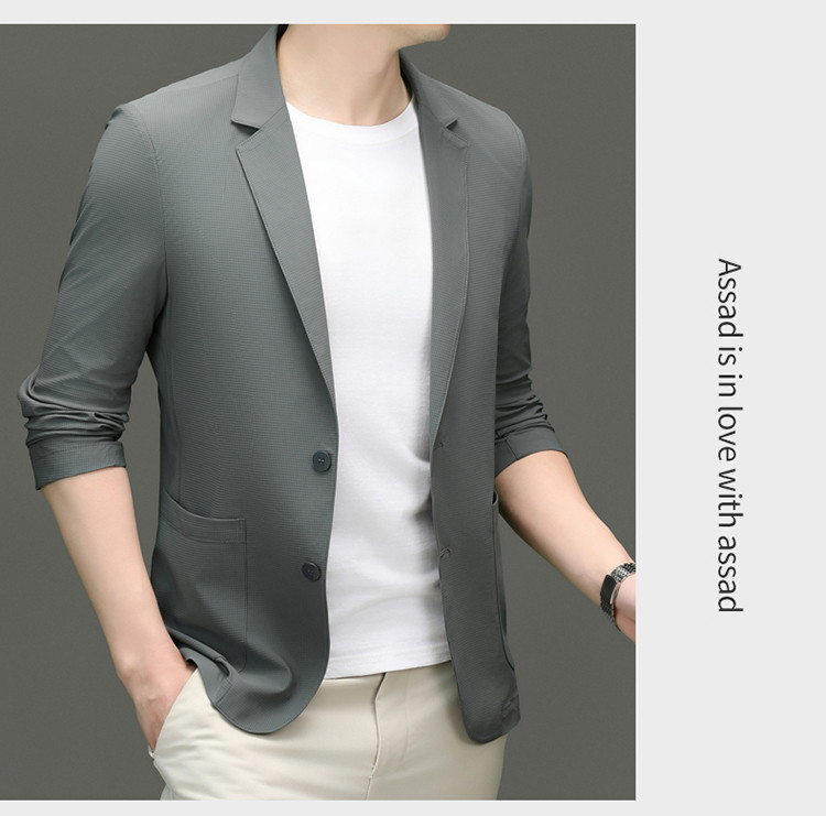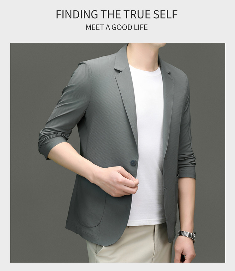 고급 스트레치 아이스 실크 남성 비즈니스 캐주얼 세트 2025 여름 선 스크린 얇은 세트 재킷 아빠 세트스토어 가기