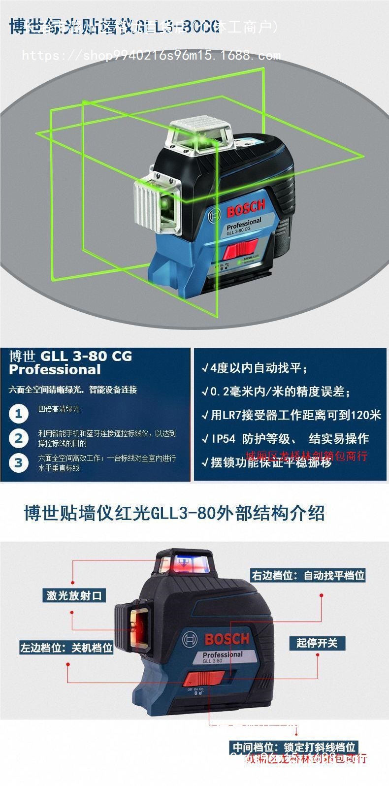 • 보쉬 레드 라이트 벽걸이 GLL3-80 표준