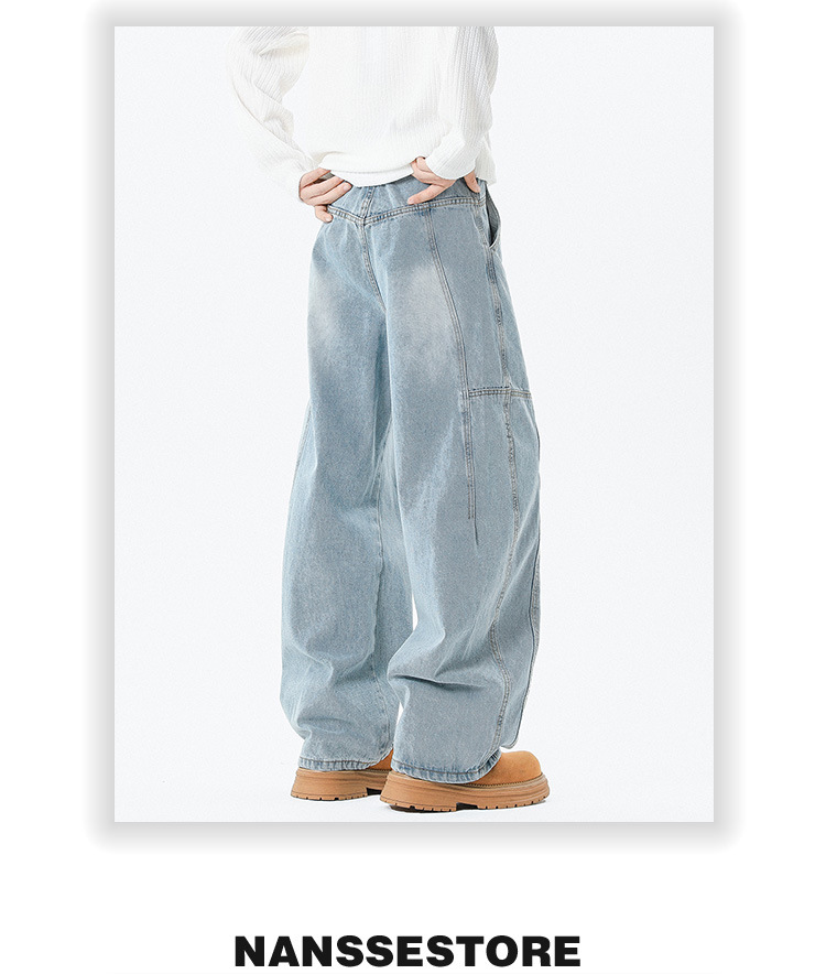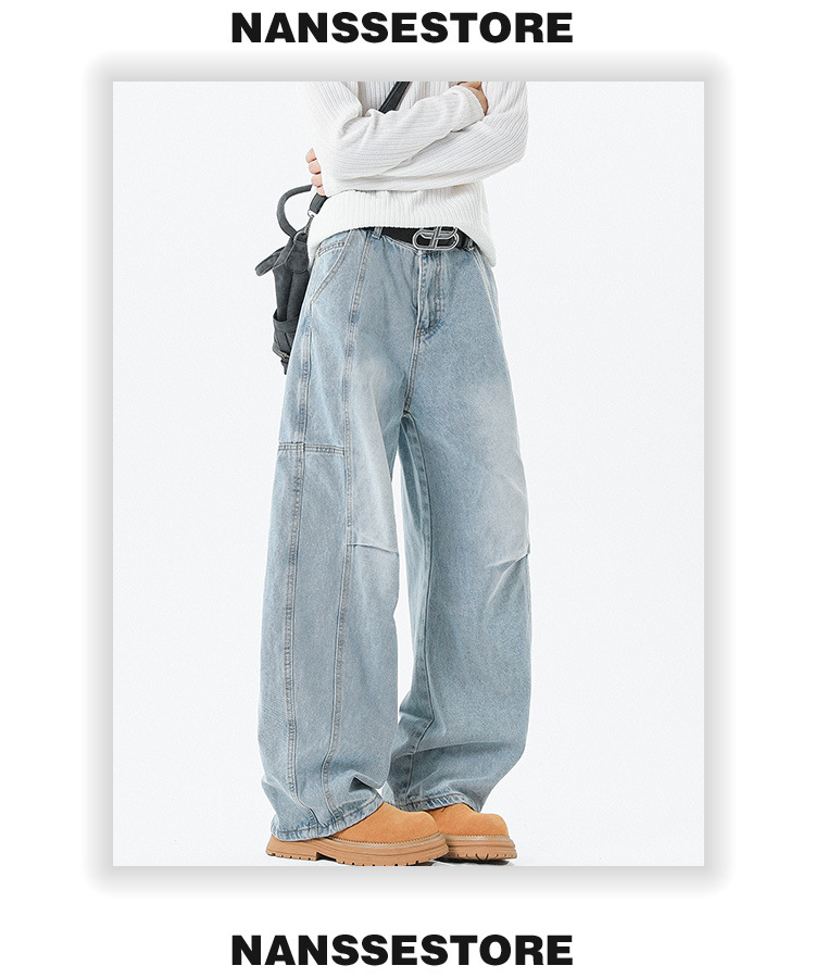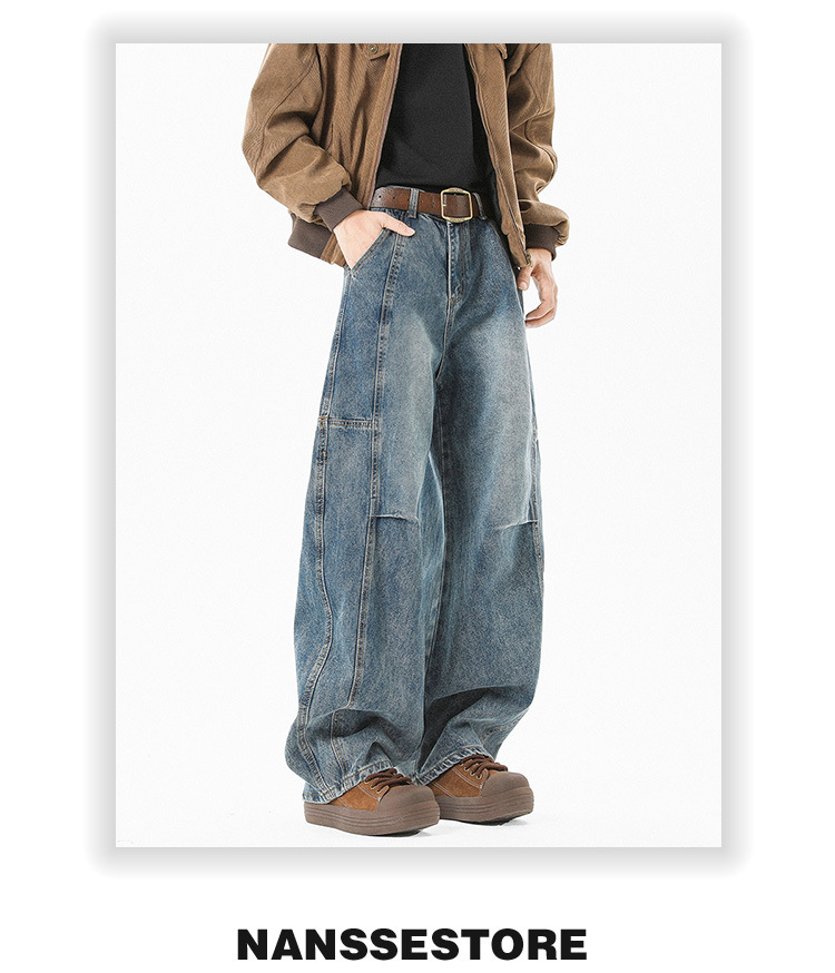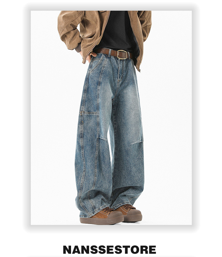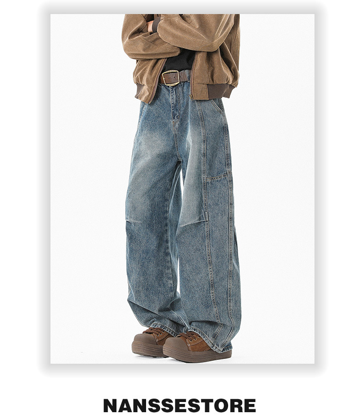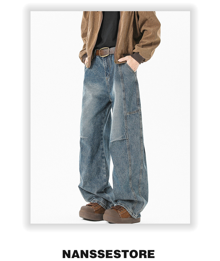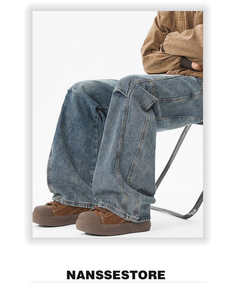 Machete Jeans 남성 2025 년 봄 새로운 미국 스타일 복고풍 해체 디자인 센스 루즈 스트레이트 다리 와이드 다리 바지스토어 가기
