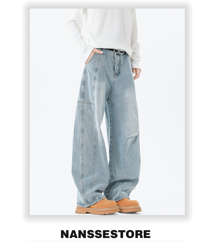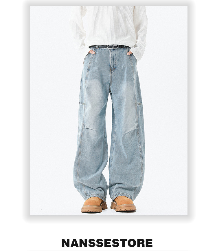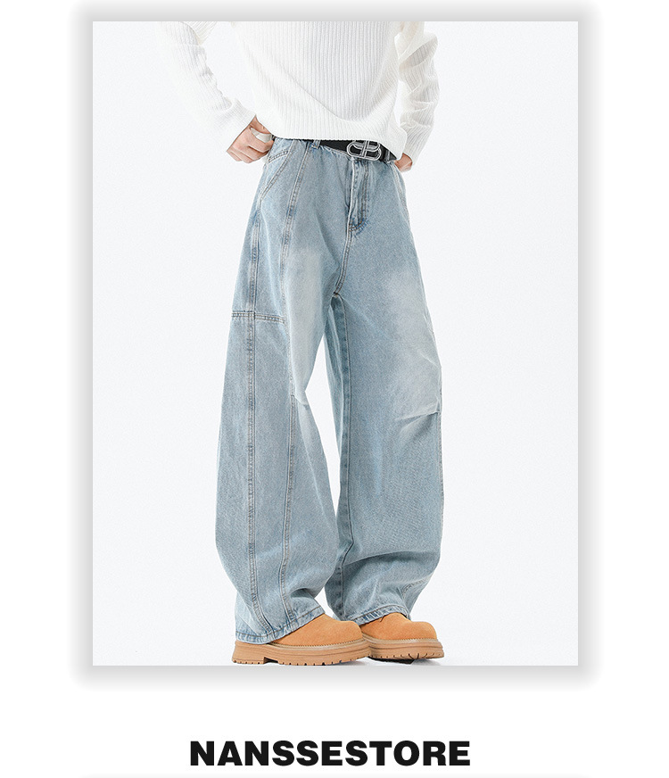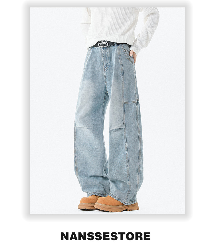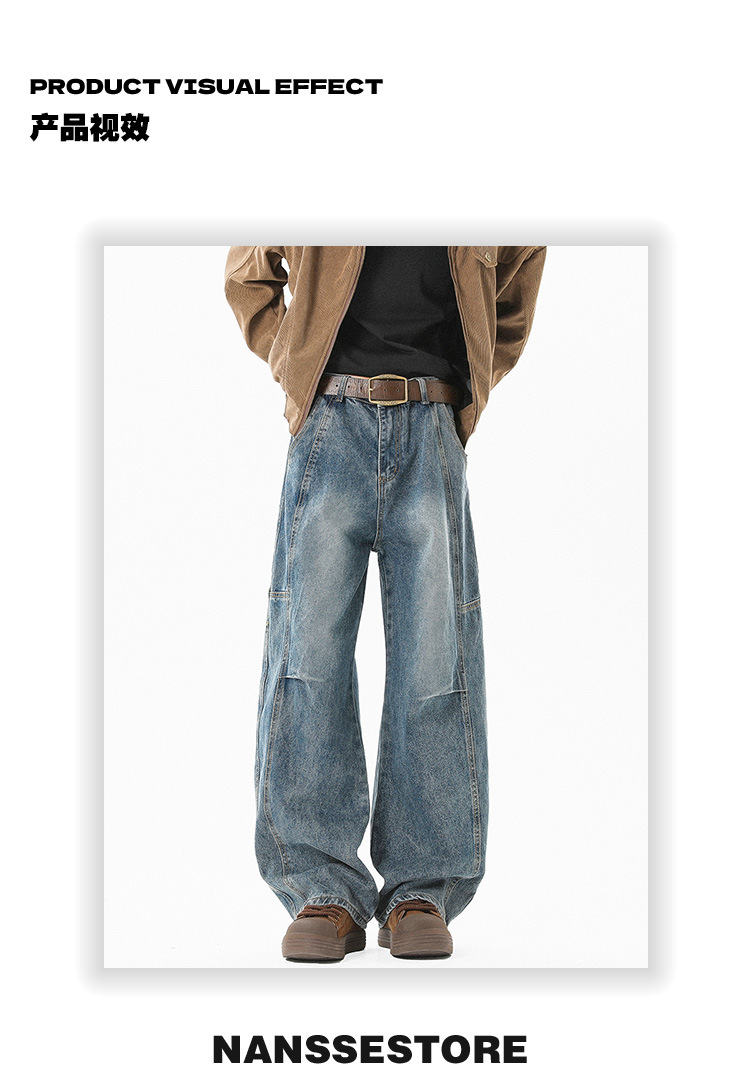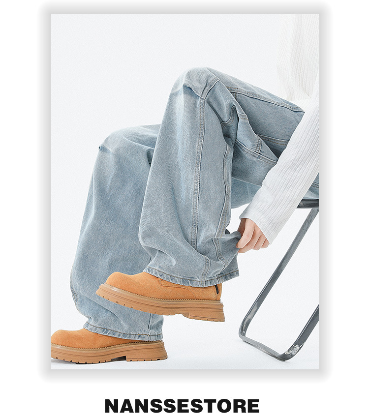 Machete Jeans 남성 2025 년 봄 새로운 미국 스타일 복고풍 해체 디자인 센스 루즈 스트레이트 다리 와이드 다리 바지스토어 가기