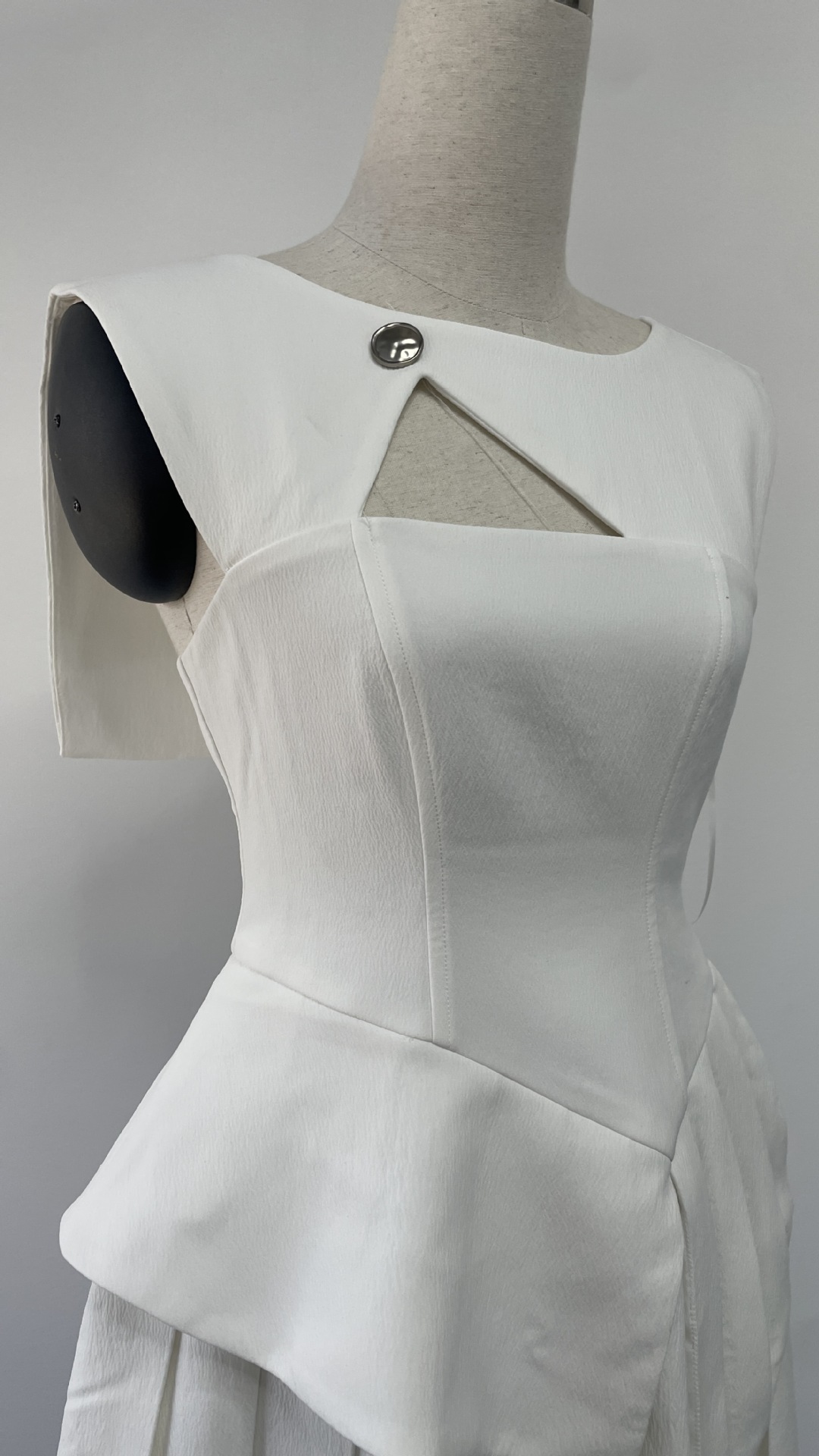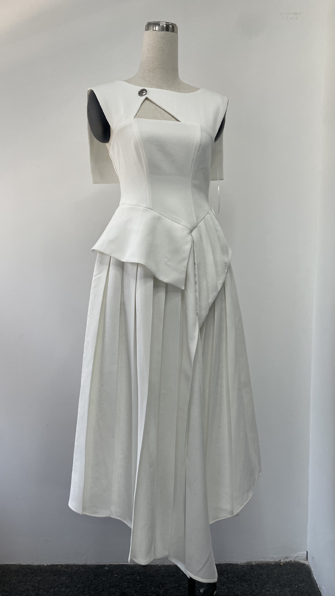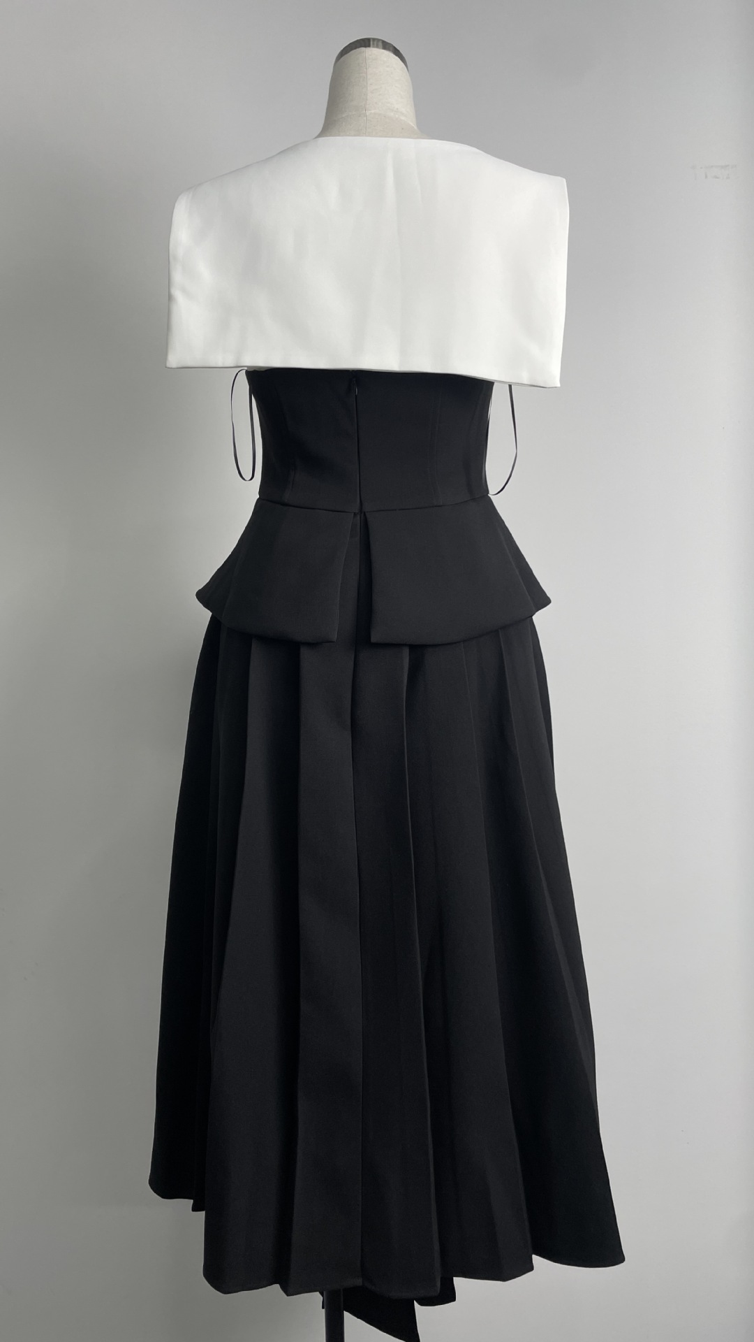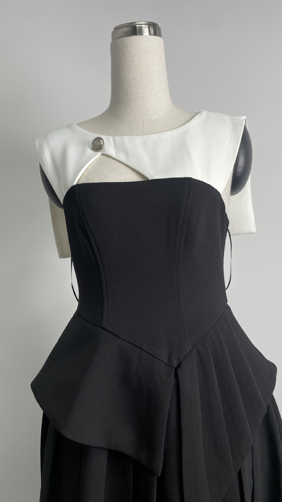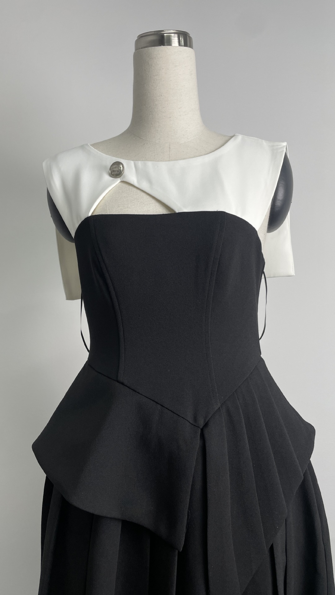 재고 있음, 독특한 디자인의 흑백 배색 불규칙 원피스, 레이스 숄, 투피스 스타일, 허리 조절 가능한 여성용 원피스스토어 가기