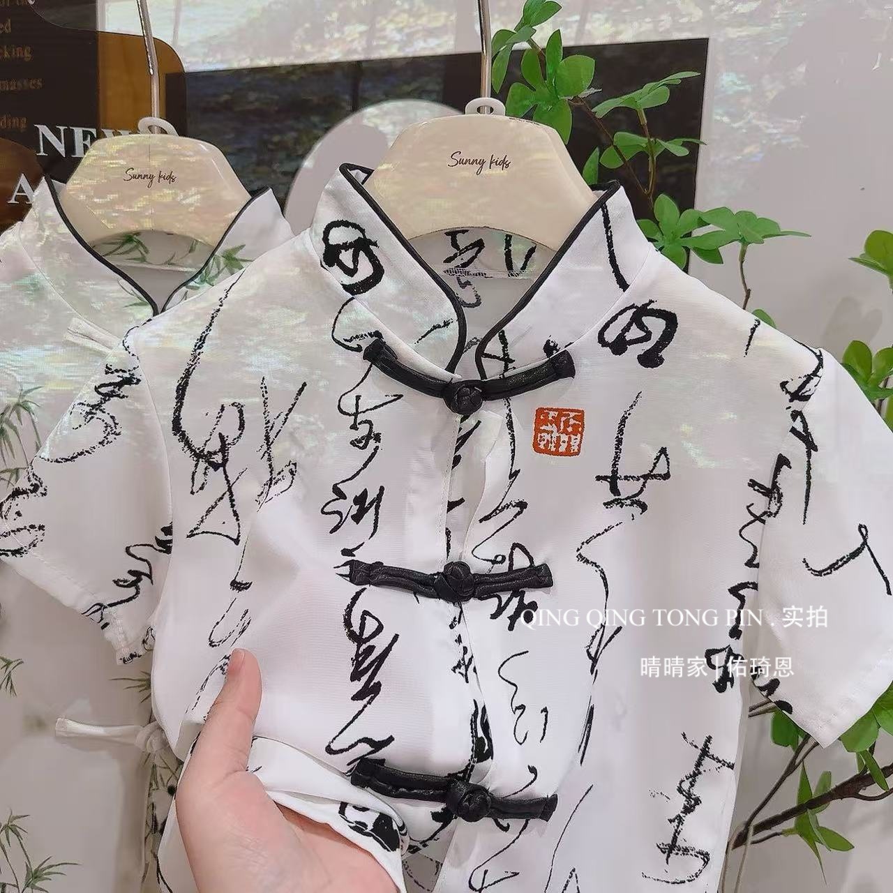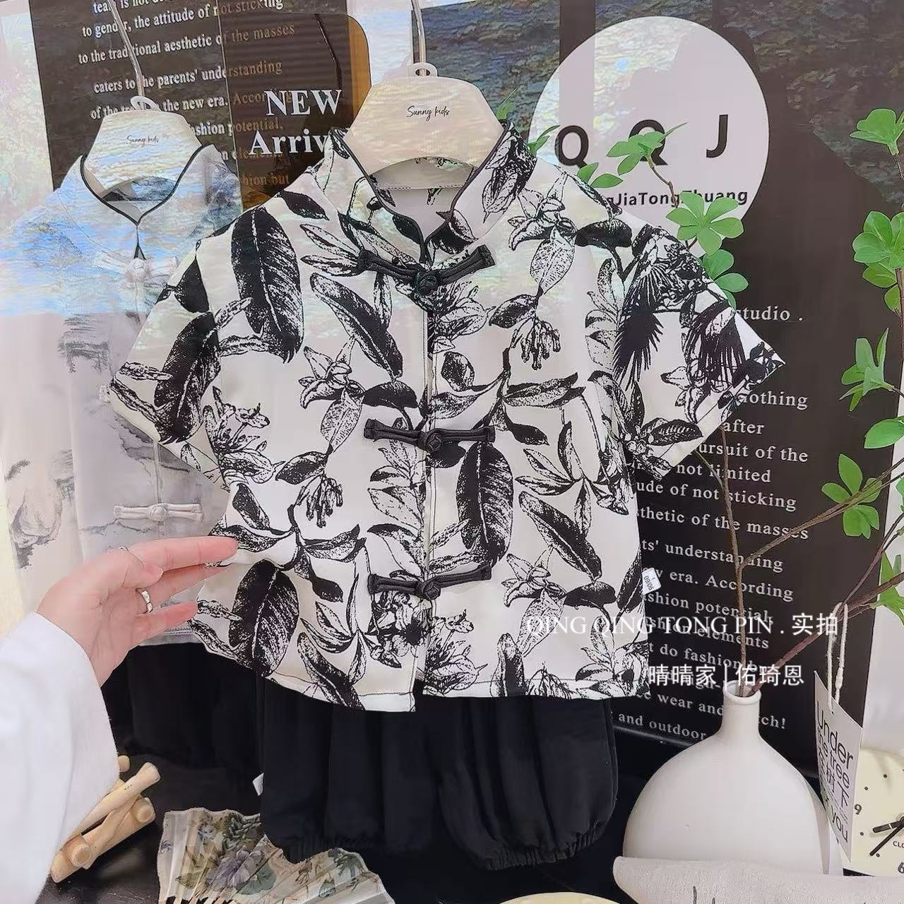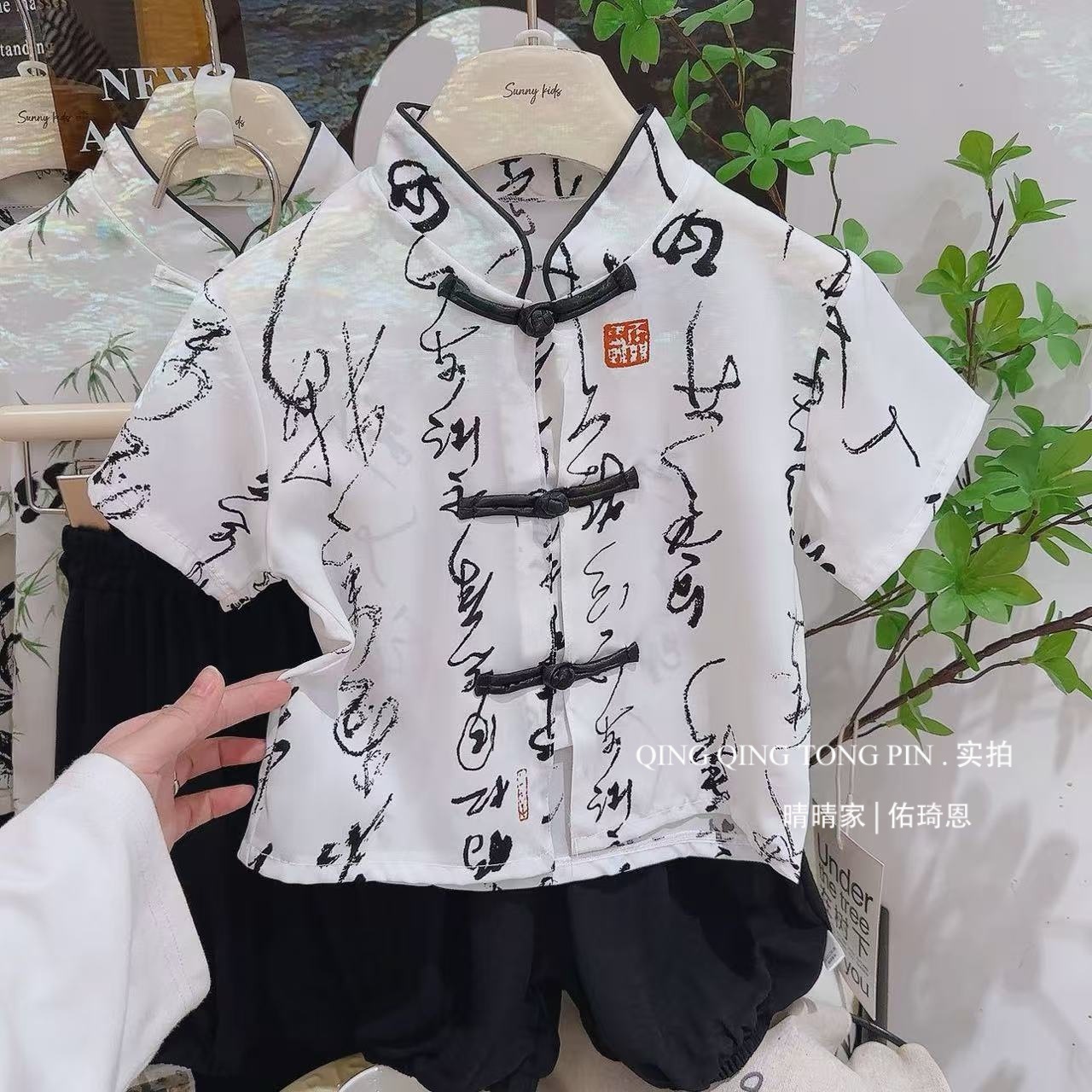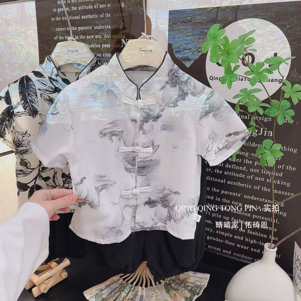 어린이 Guofeng 세트 여름 소년의 새 중국 반팔 셔츠 반쪽 바지 투피스 세트 얇은 한후 탕 세트스토어 가기