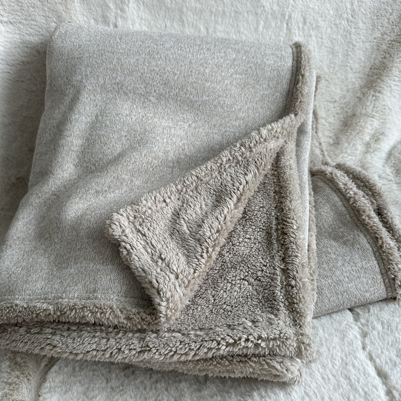 • 베이지 두꺼운 바늘 니트 복합 양모 두꺼운 담요
