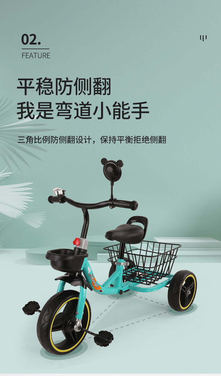 3-6 세 트롤리 유모차 어린이 장난감 자동차 리어 버킷 바구니가있는 어린이 세발 자전거 안티 롤오버 자전거