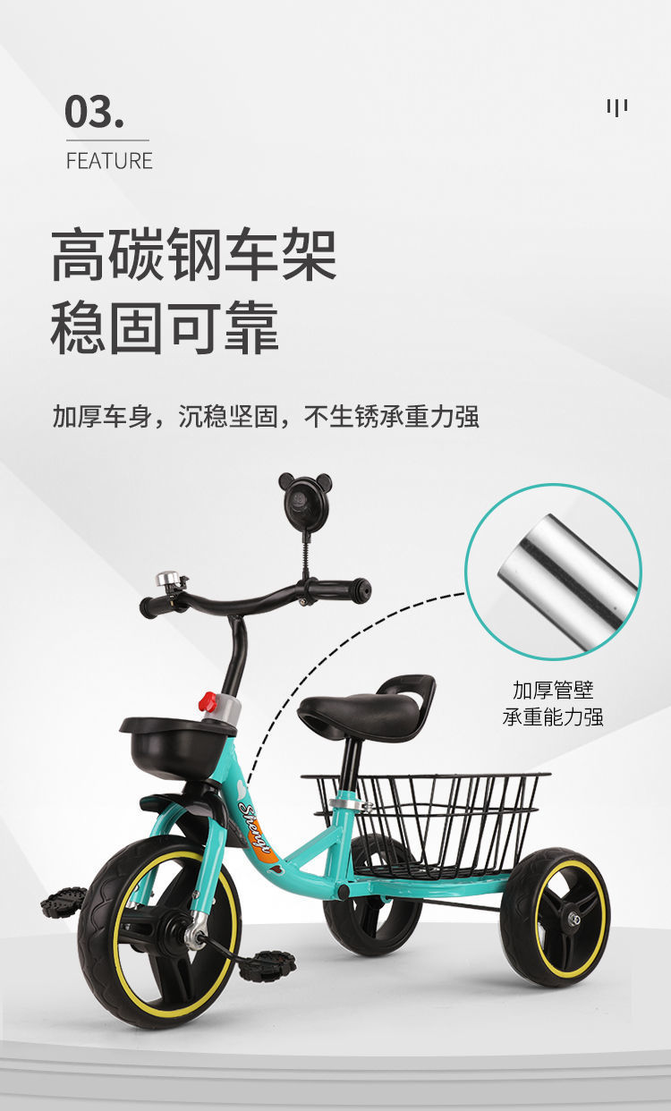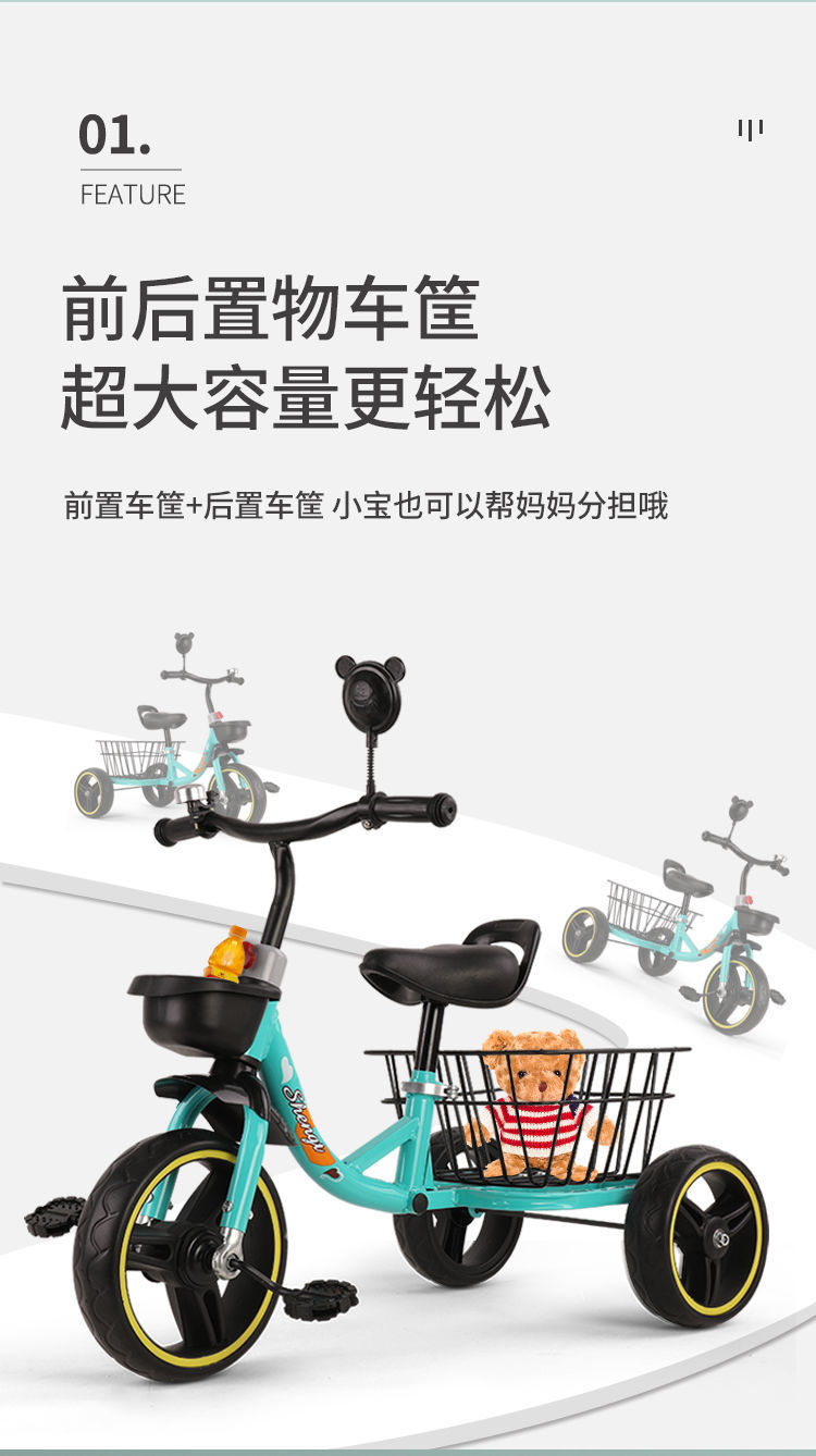 3-6 세 트롤리 유모차 어린이 장난감 자동차 리어 버킷 바구니가있는 어린이 세발 자전거 안티 롤오버 자전거스토어 가기