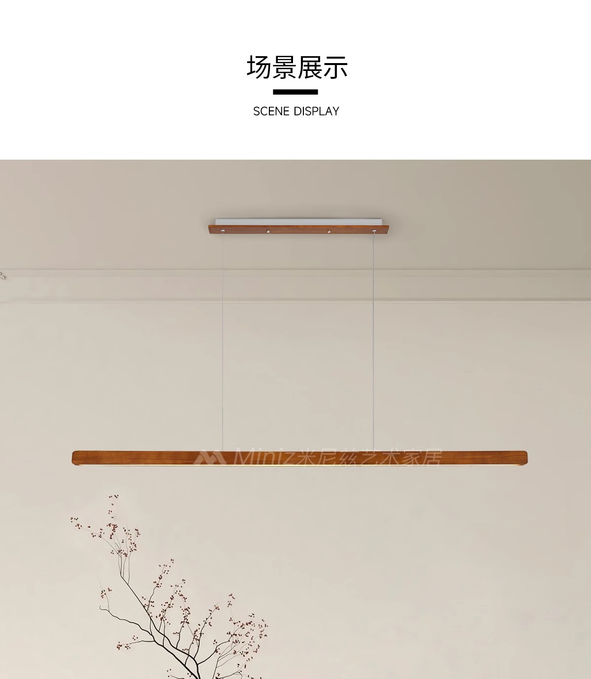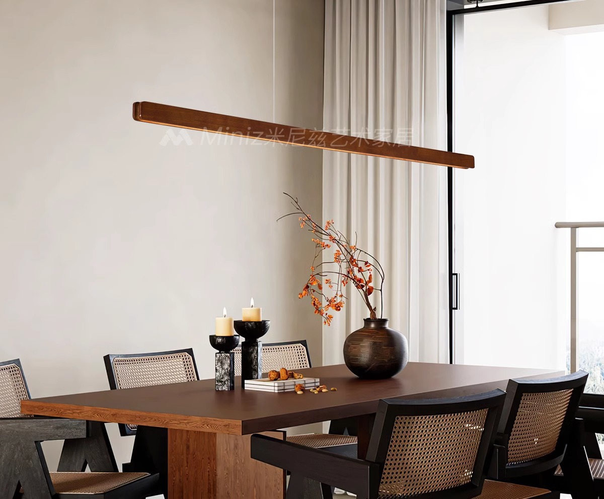 새로운 중국 스타일 간단한 단단한 나무 한 단어 긴 레스토랑 샹들리에 중간 고대 레트로 월넛 곡물 식탁 바 식당 방 램프