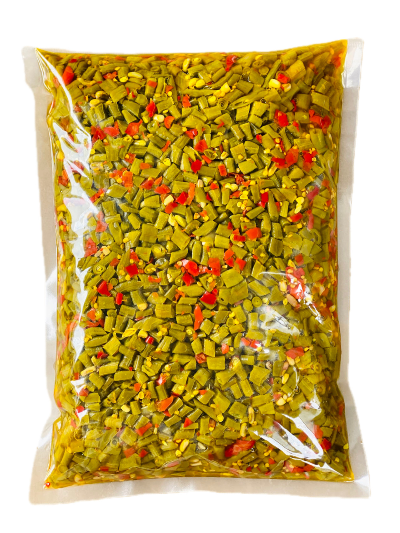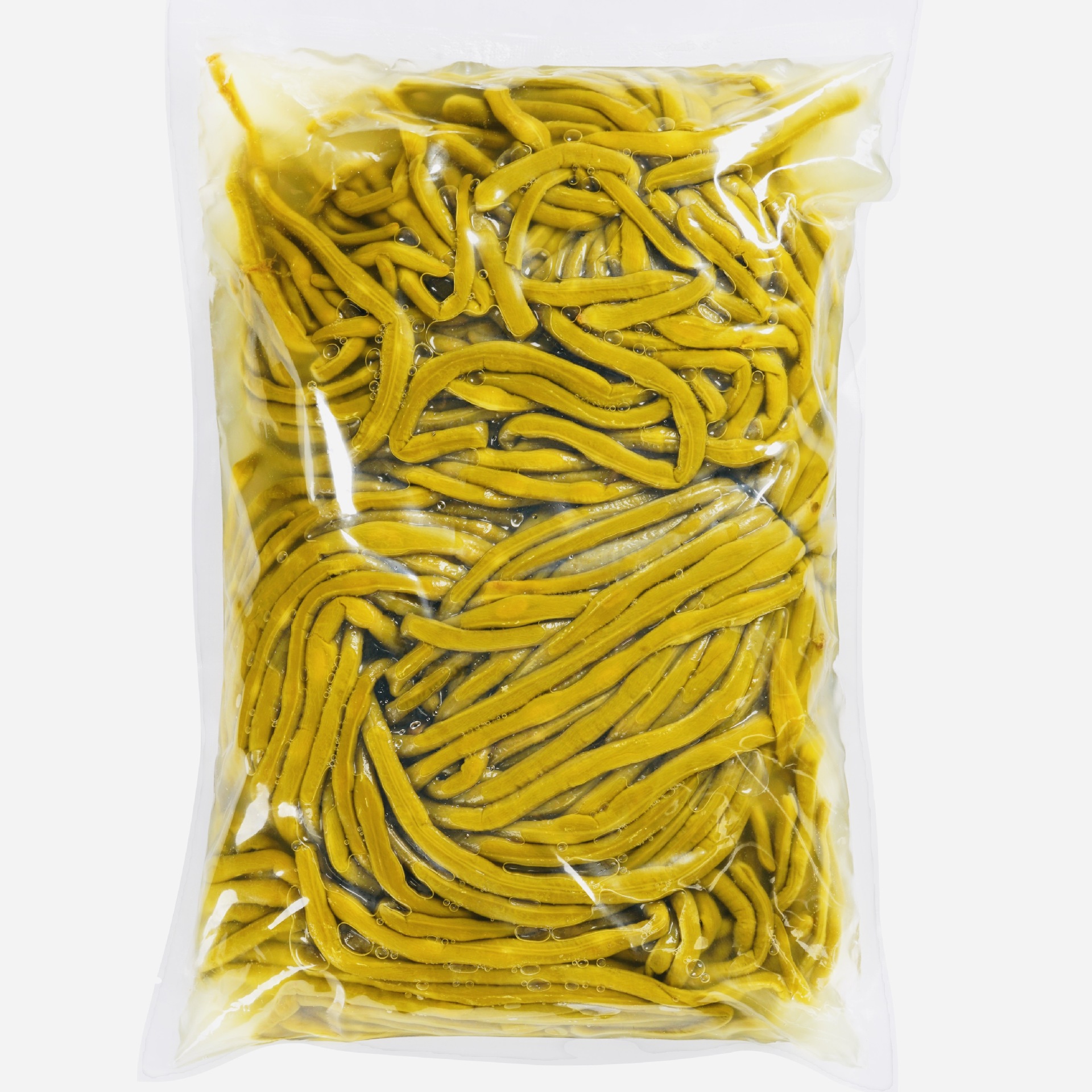 • (기름을 두르지 않고 약간 매콤한 신맛이 나는 콩) 1cm 정도로 잘라서 포장