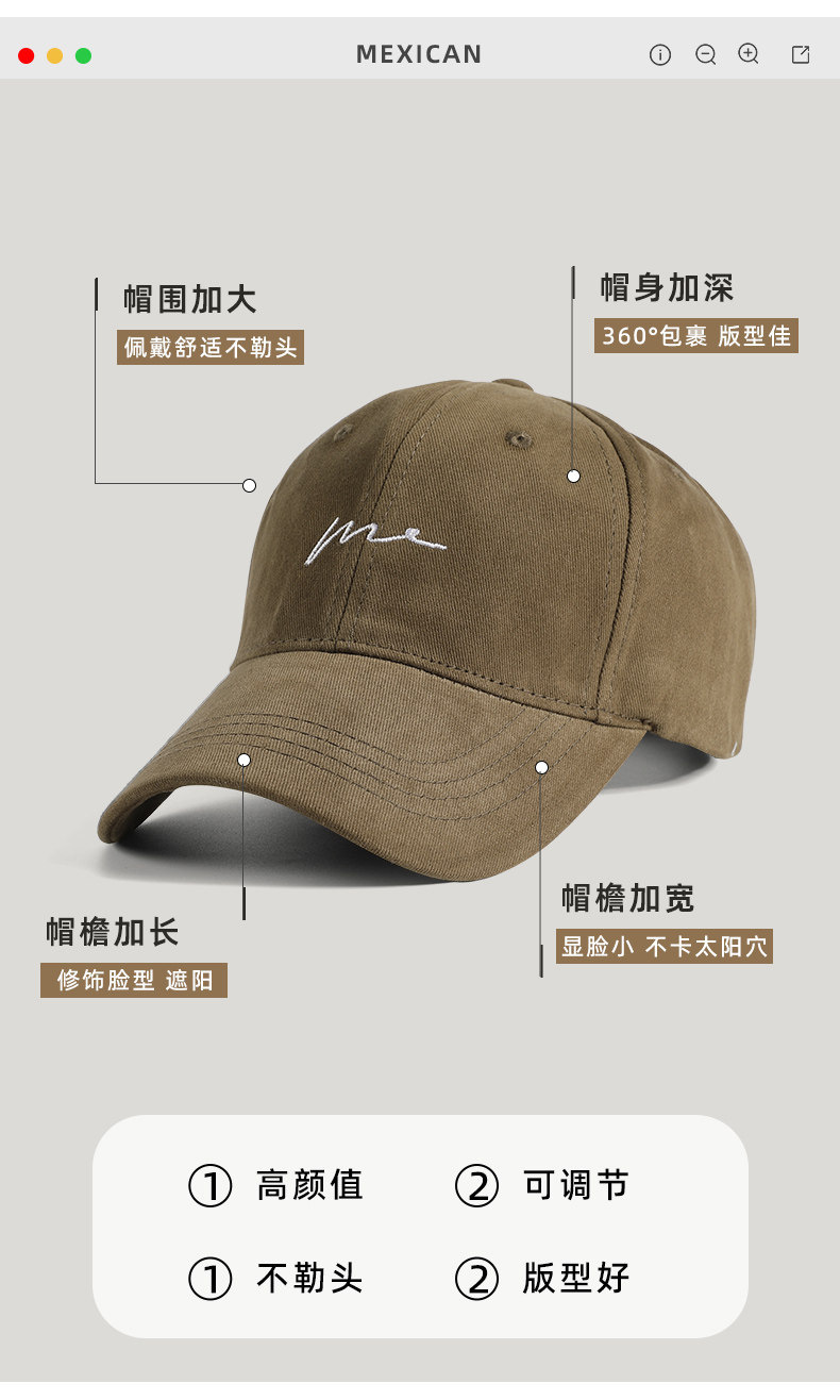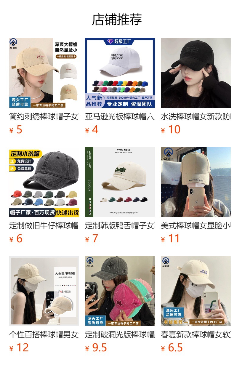 심플 자수 야구모자 여성용 봄여름 얼굴을 더 작아 보이게 하는 디자인, 깊은 챙, 자외선 차단 모자, 맞춤 제작, 공장 직판스토어 가기