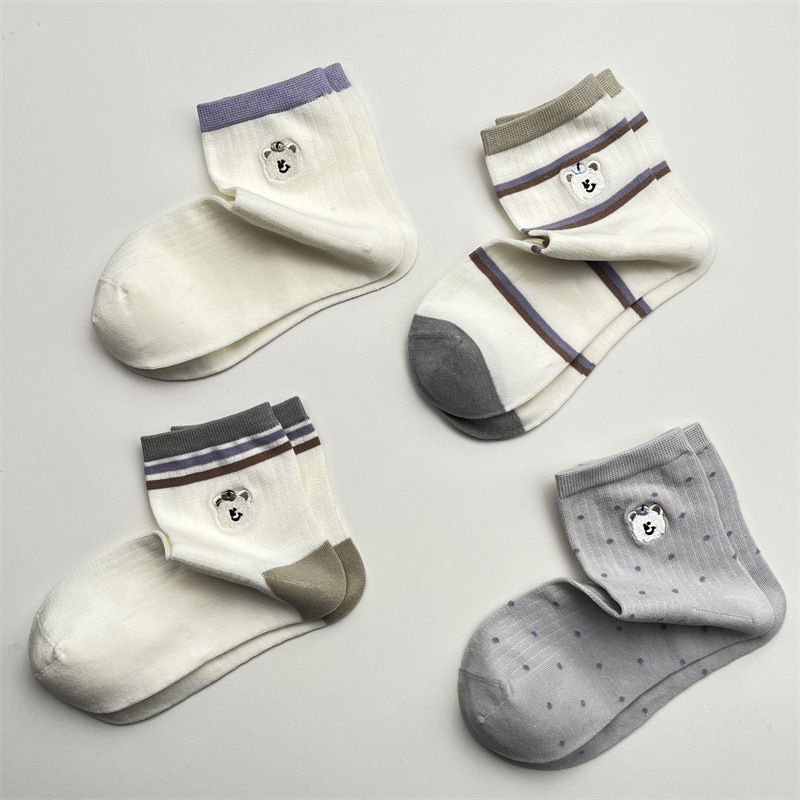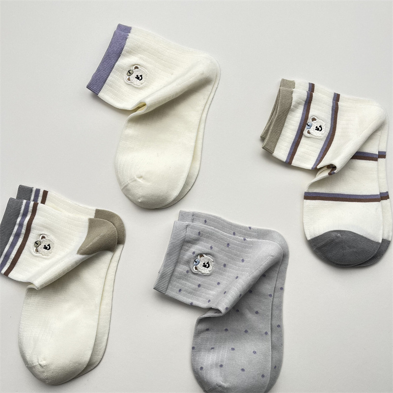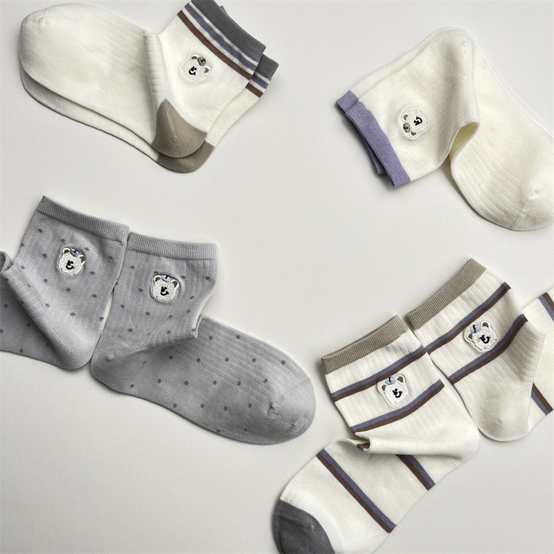 봄과 여름 새로운 귀여운 만화 모자 곰 자수 양말 여성 캐주얼 올 매치 스트라이프 도트 본없는 미드 바디 양말