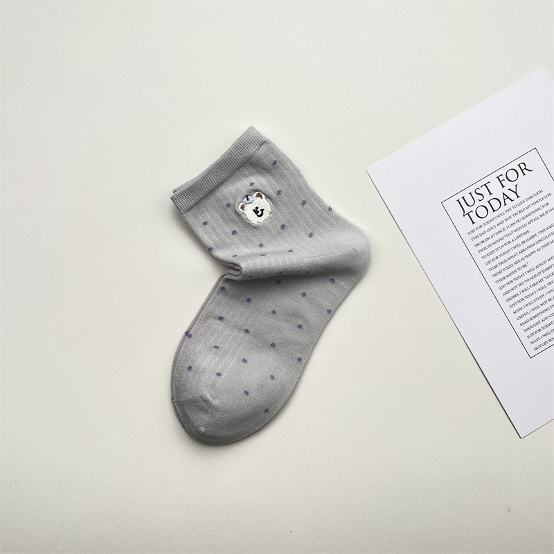 봄과 여름 새로운 귀여운 만화 모자 곰 자수 양말 여성 캐주얼 올 매치 스트라이프 도트 본없는 미드 바디 양말스토어 가기