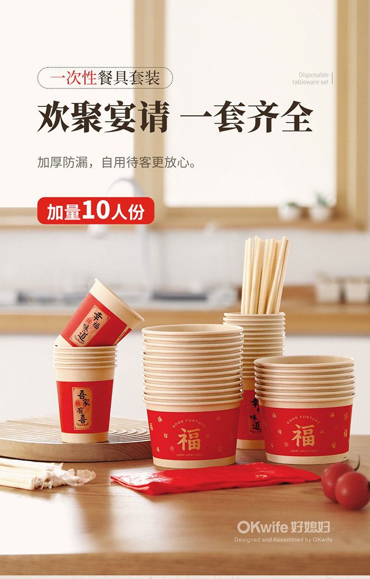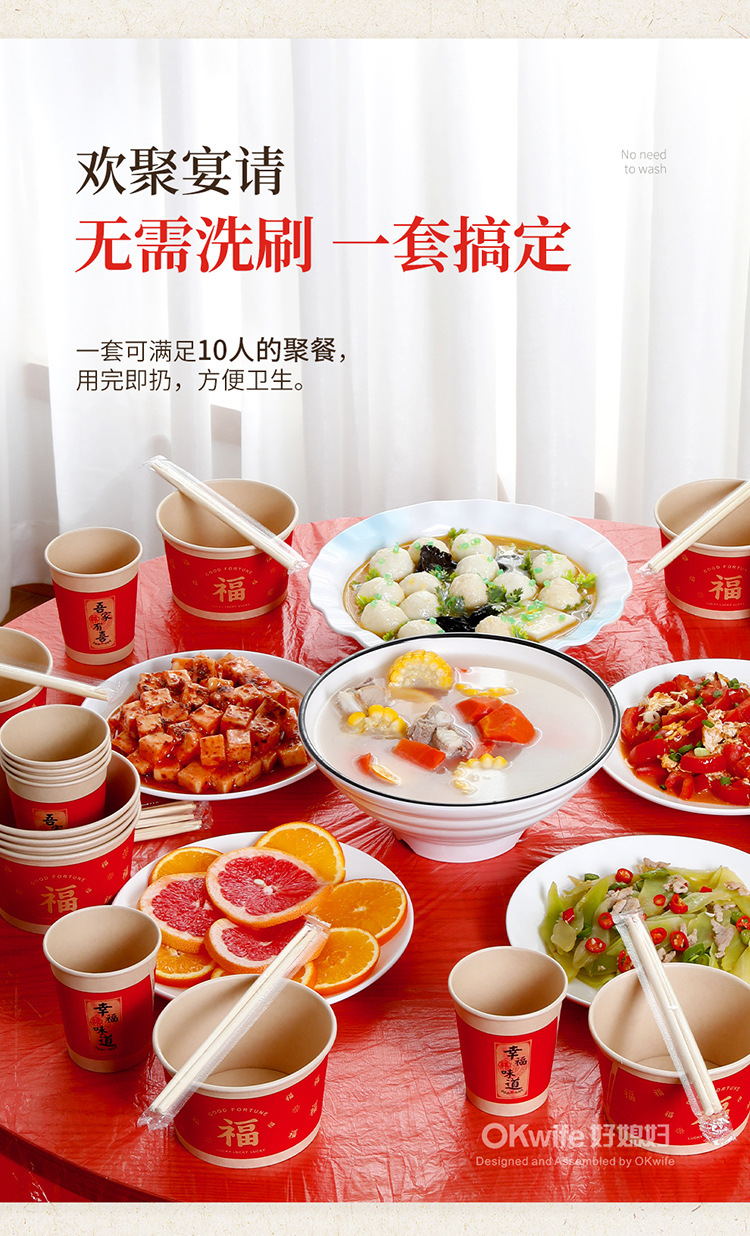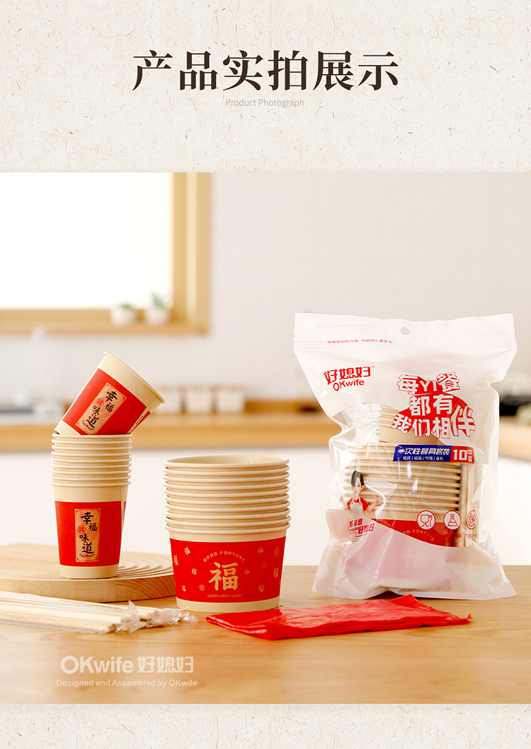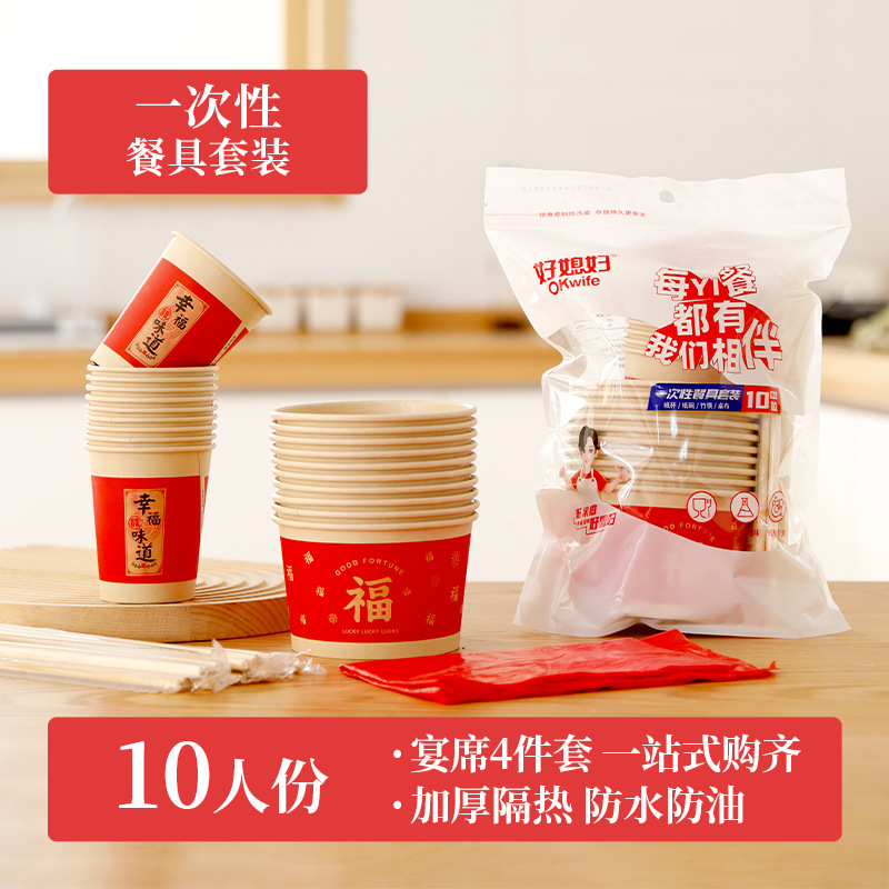 좋은 며느리 일회용 그릇 젓가락 세트 10 명 식기 일회용 종이 그릇 종이컵 식탁보 저녁 식사 캠핑 가구스토어 가기