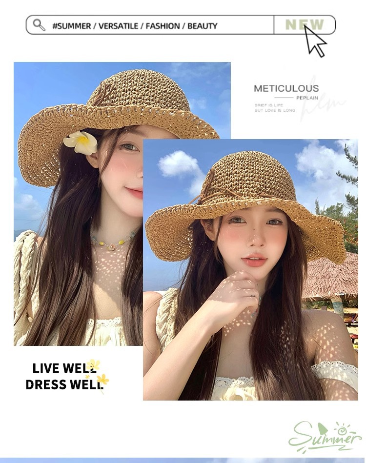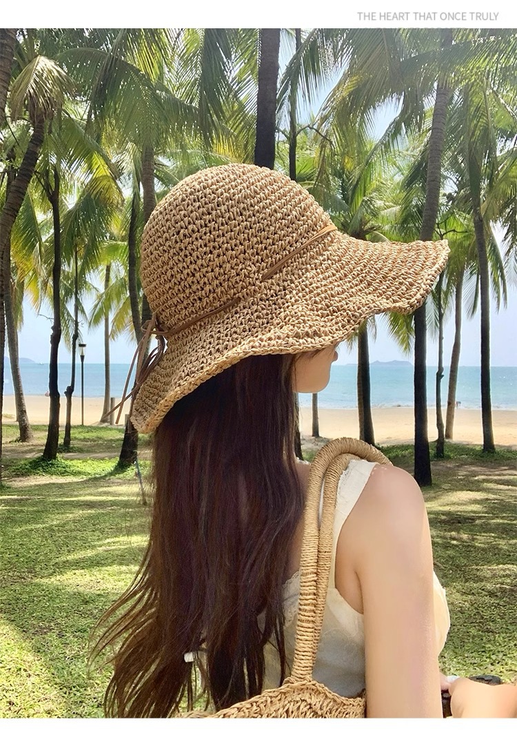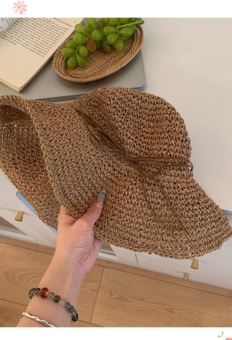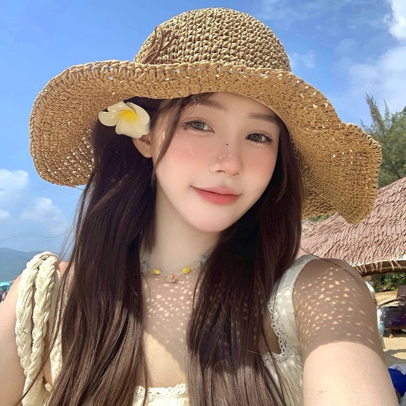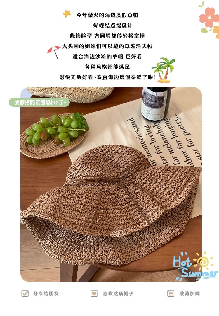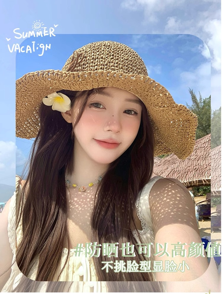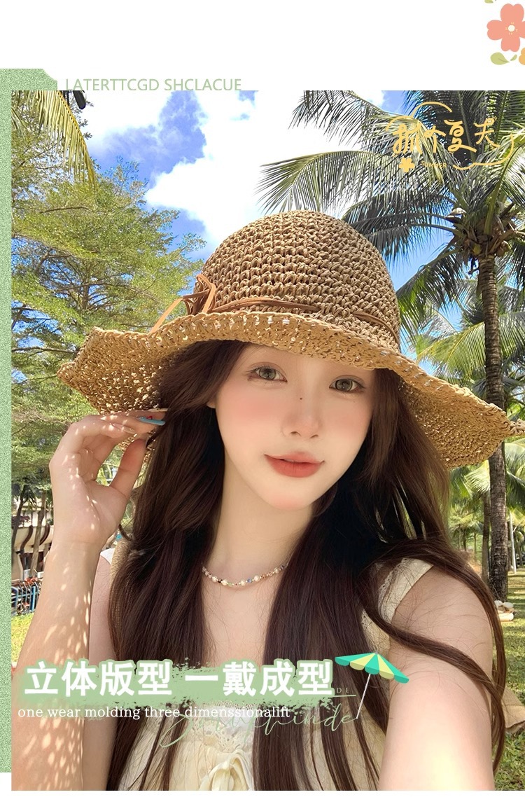 해변 휴일 빈 밀짚 모자 여성의 봄과 여름 큰 브림 선스크린 햇빛 모자 얼굴 작은 밀짚 어부 모자 트렌디스토어 가기
