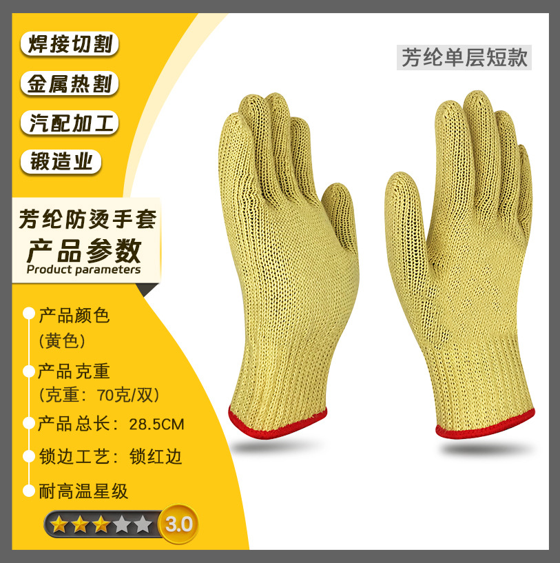 厂家直供工业芳纶防割手套耐高温阻燃隔热防切割手套可定制贴牛皮