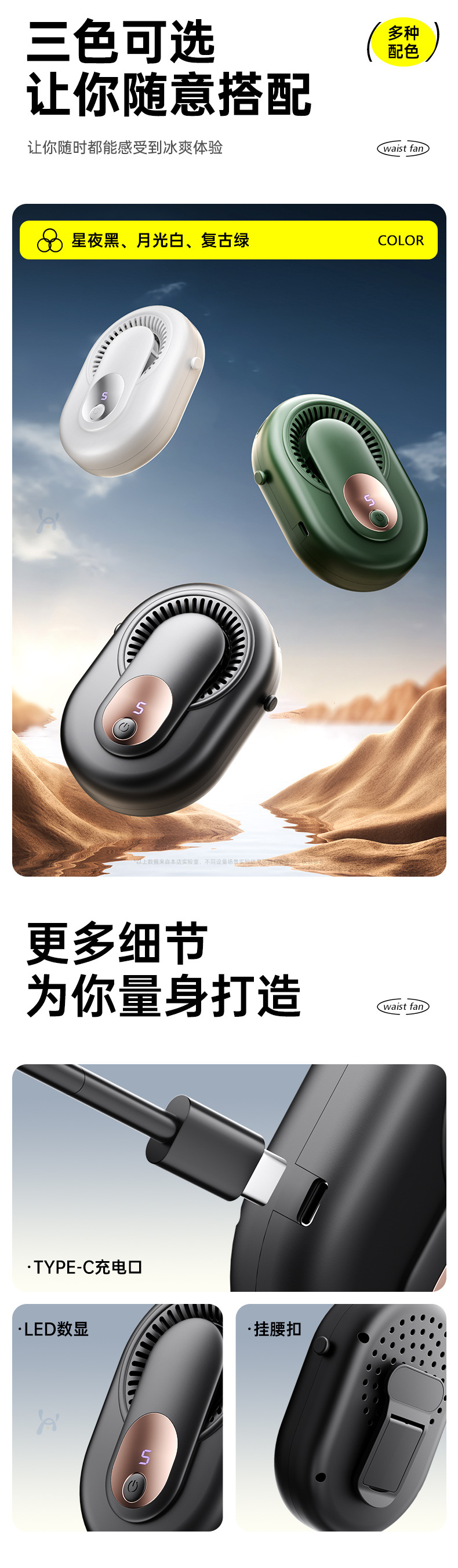 국경 맞춤형 usb 클립 팬 데스크탑 충전 휴대용 미니 작은 목 매달려 허리 선풍기 도매