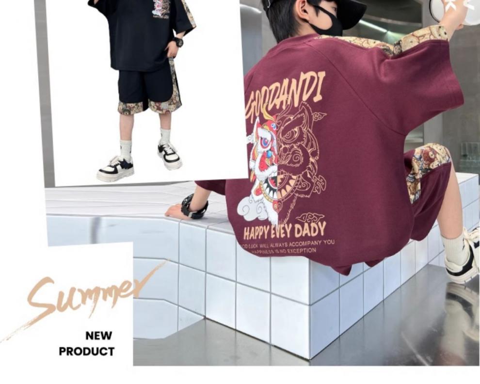 아동복 소년 여름 반팔 세트 2025 새로운 여름 스포츠 여름 소년 멋쟁이스토어 가기