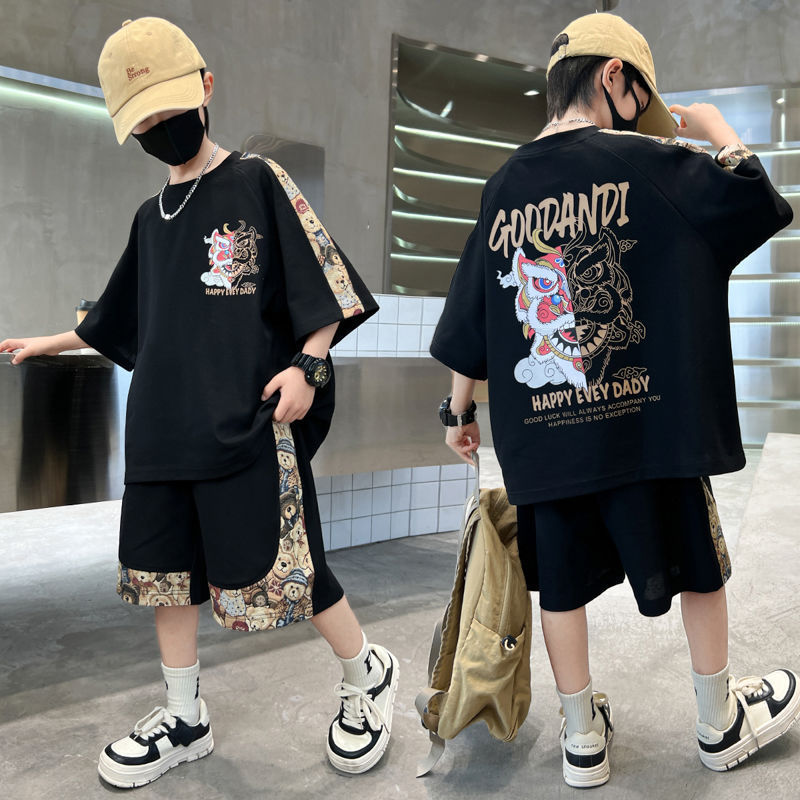 아동복 소년 여름 반팔 세트 2025 새로운 여름 스포츠 여름 소년 멋쟁이