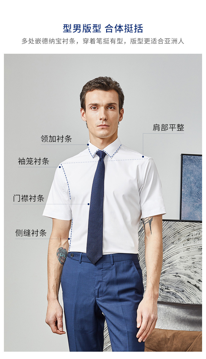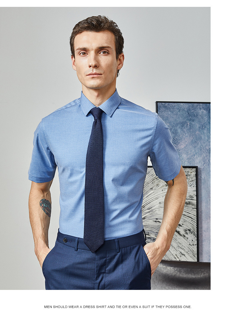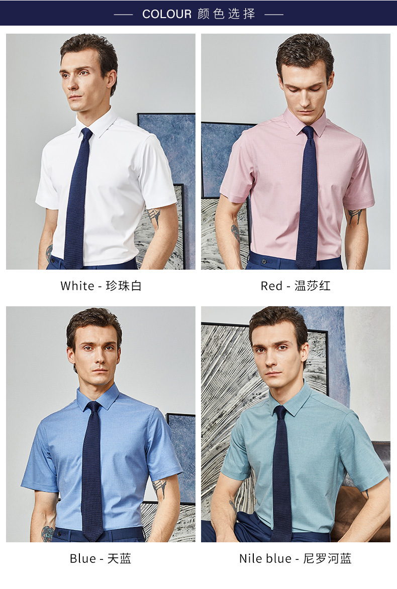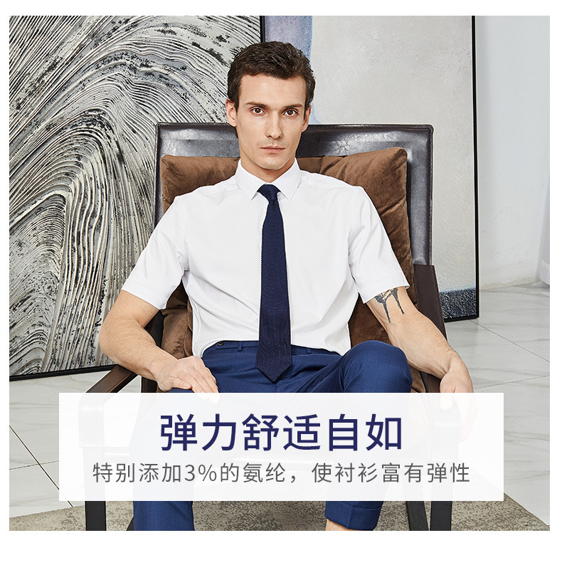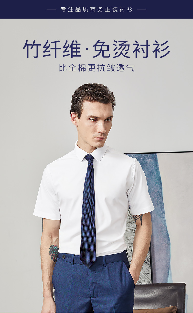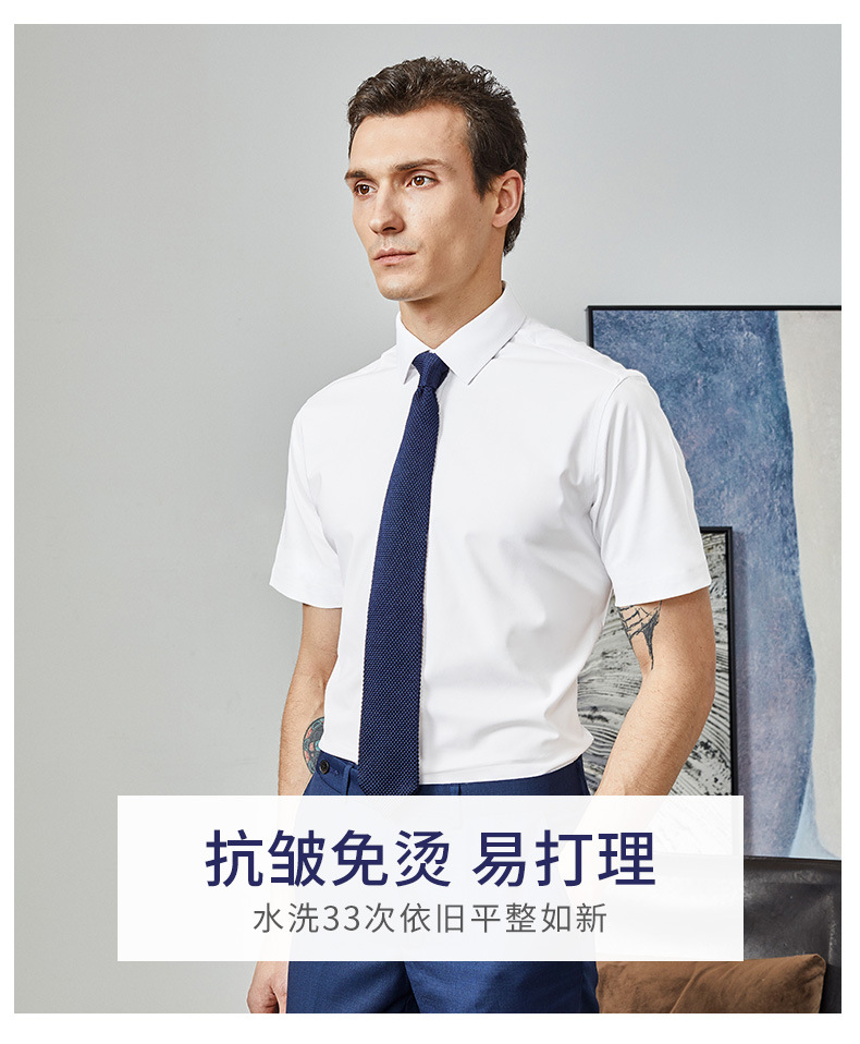 여름 반소매 화이트 셔츠 남성용 아이스 실크 얇은 대나무 섬유 셔츠 전문 원피스 사업 반소매 주름 방지 셔츠스토어 가기