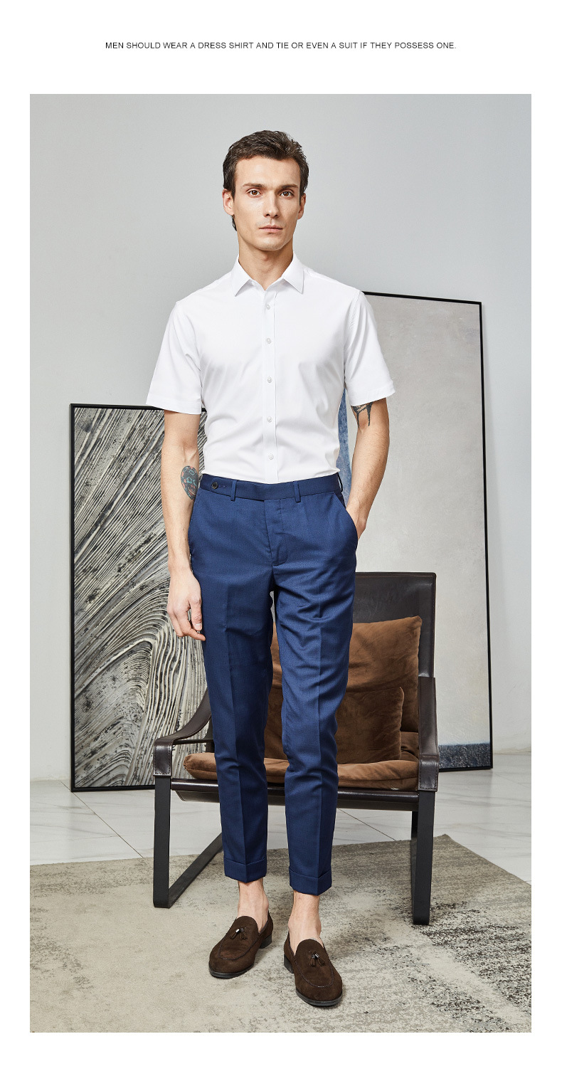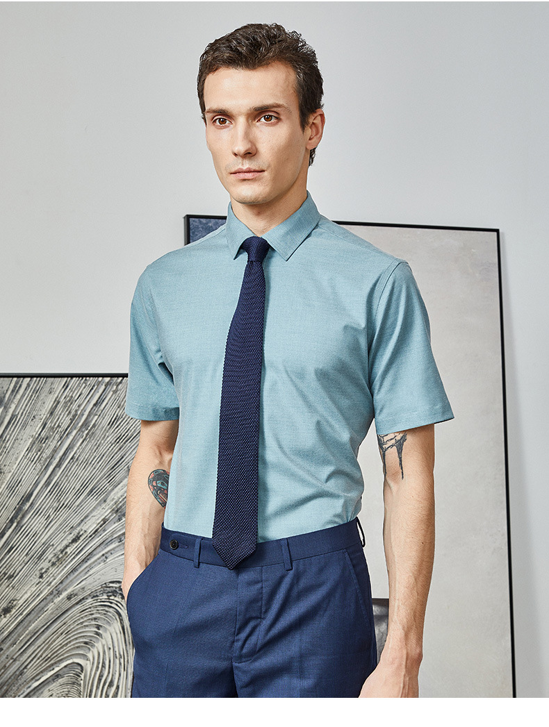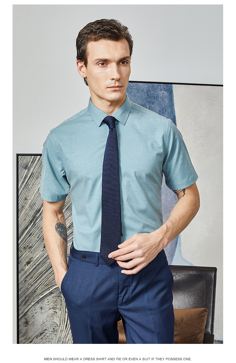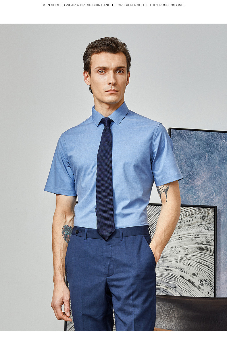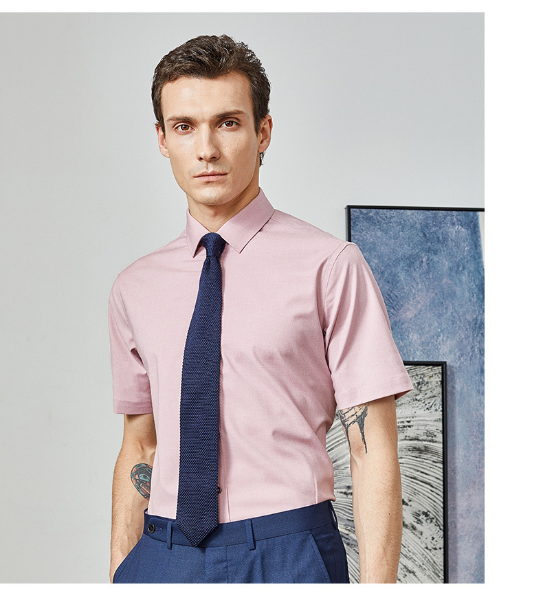 여름 반소매 화이트 셔츠 남성용 아이스 실크 얇은 대나무 섬유 셔츠 전문 원피스 사업 반소매 주름 방지 셔츠스토어 가기