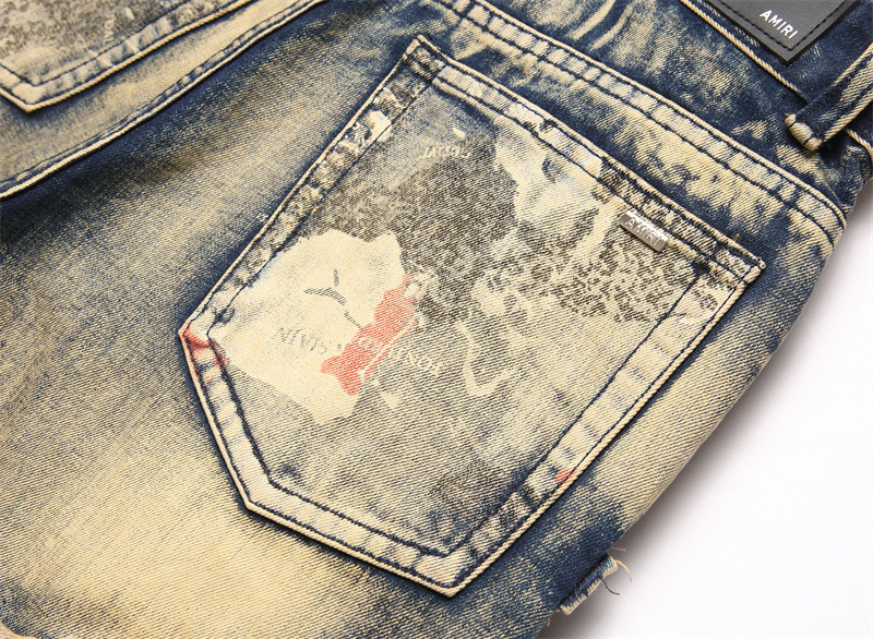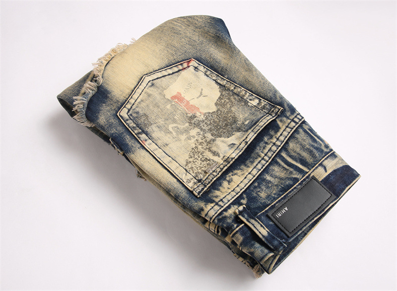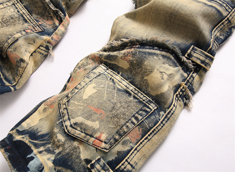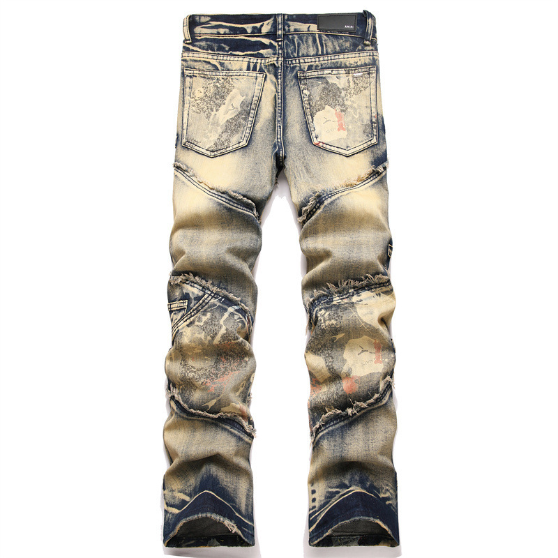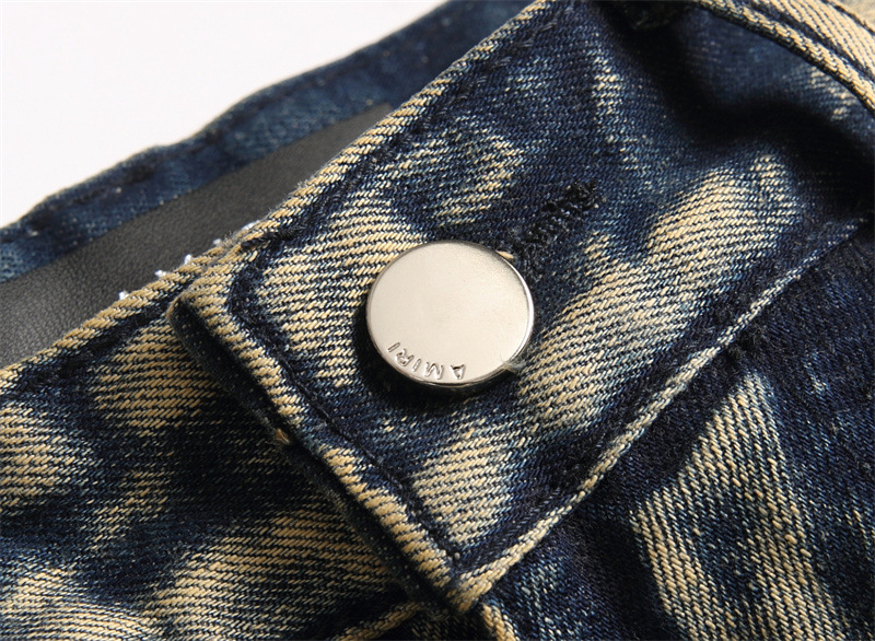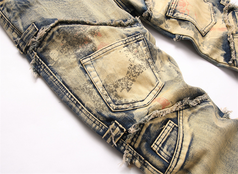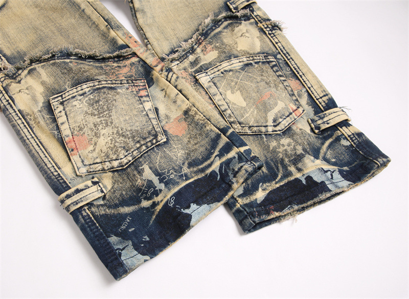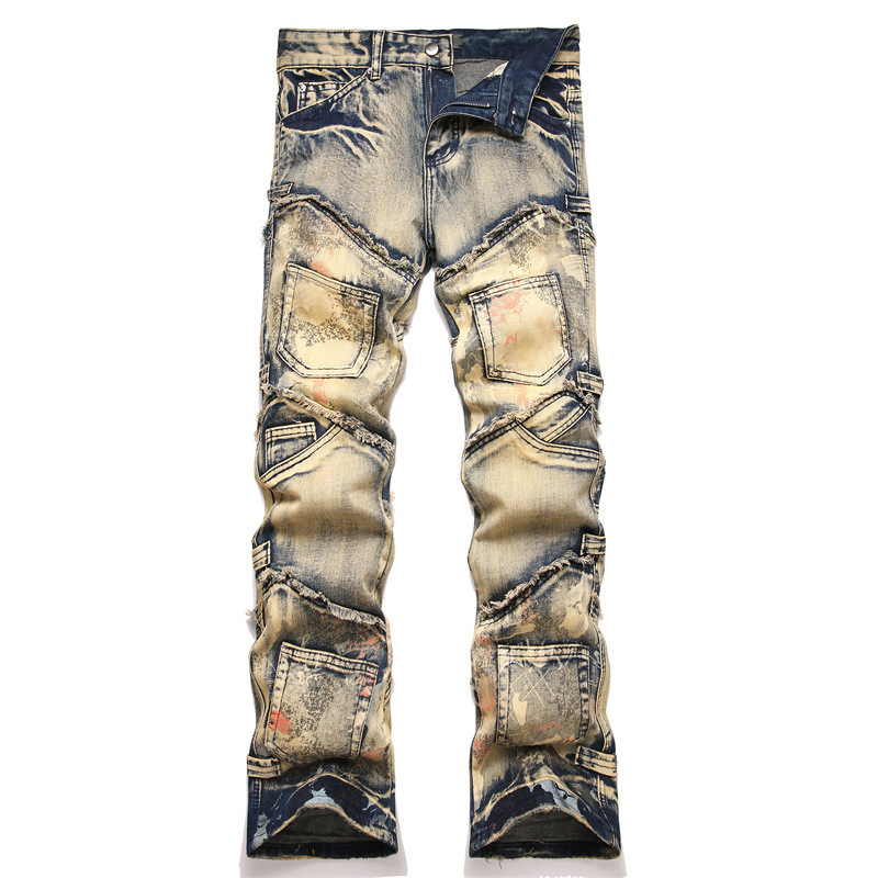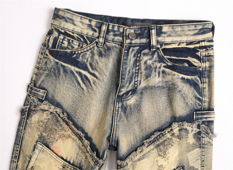 대외 무역 스타일 펑크 레트로 블루 스티칭 콜라주 멀티 포켓 스트레이트 혼 남성 청바지 3889스토어 가기