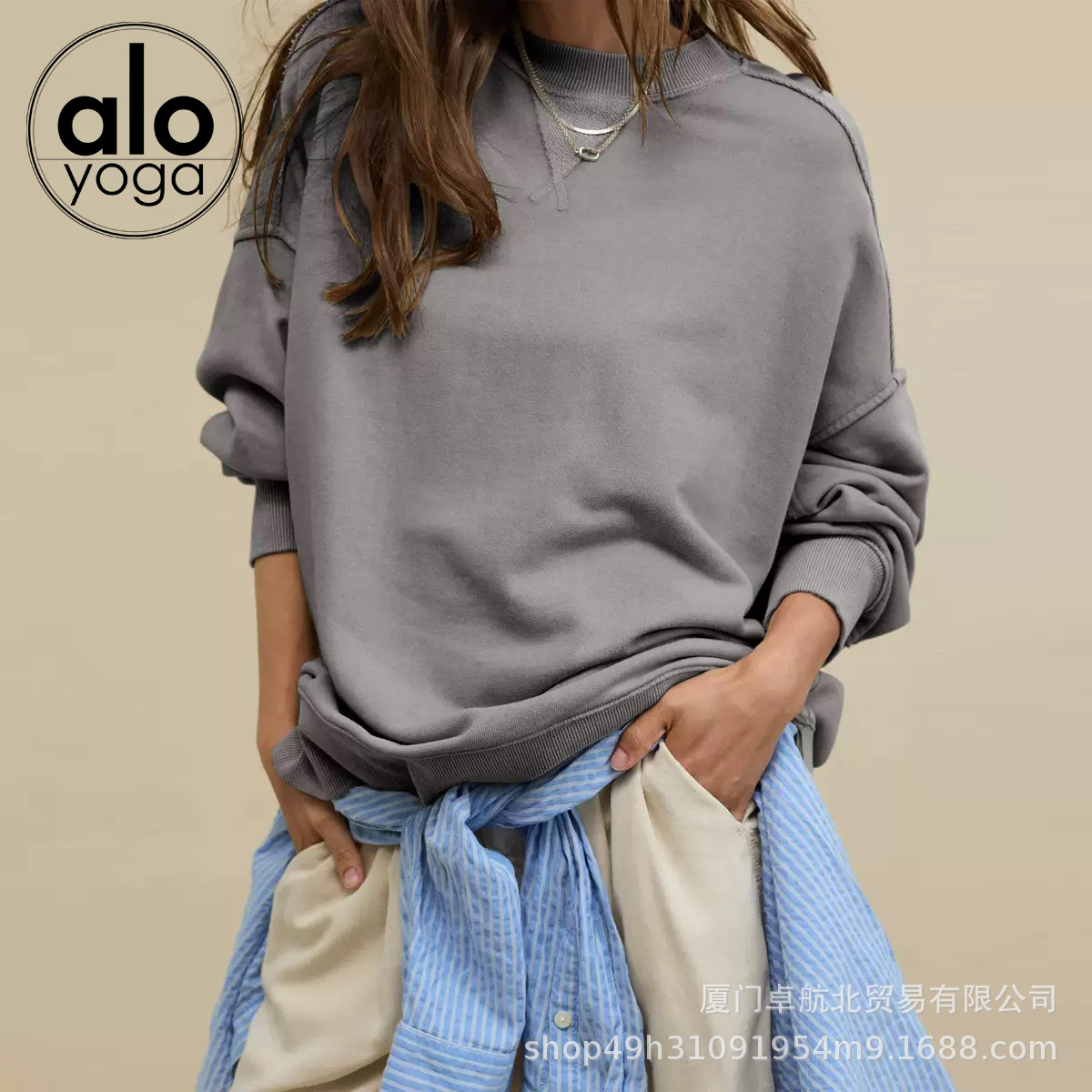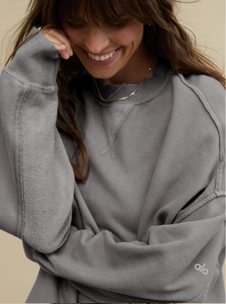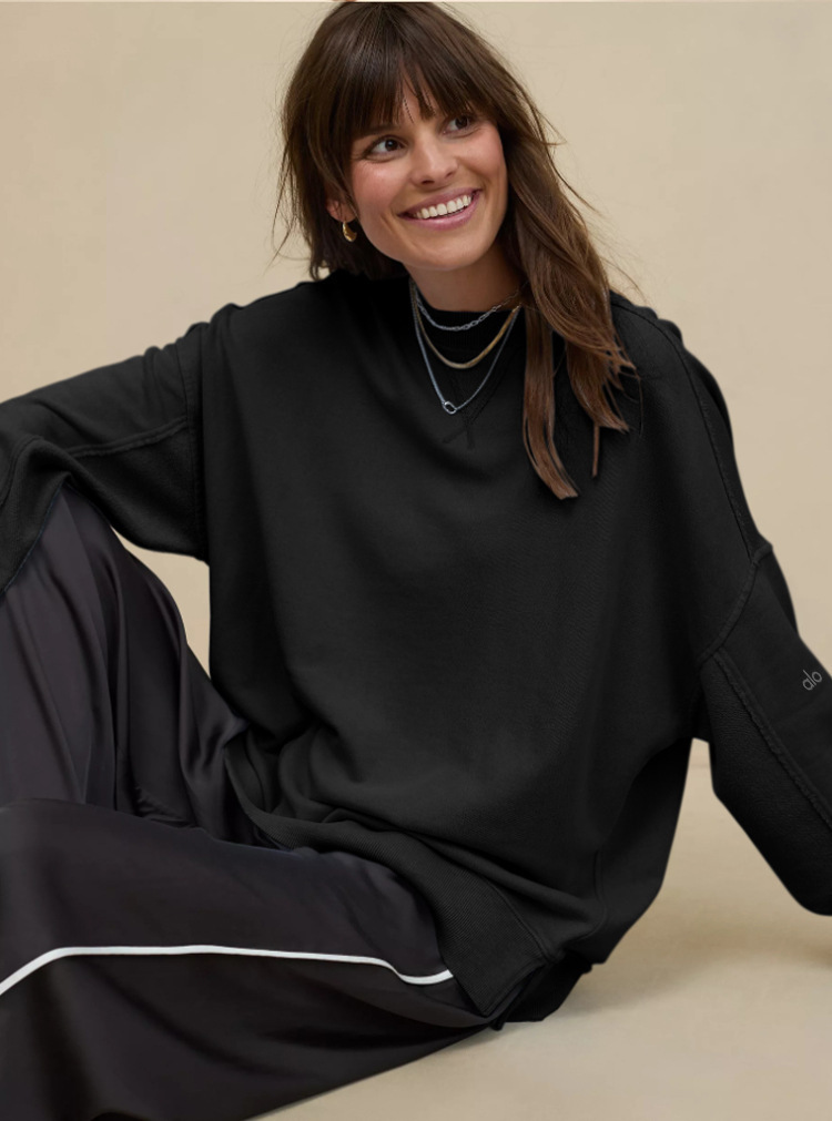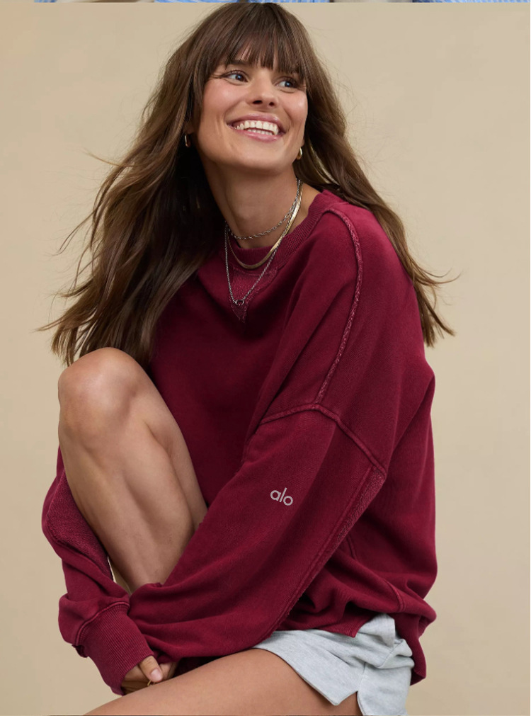 북미 alo 스포츠 스웨트셔츠 요가 여성용 가을 겨울 배색 루즈핏 드롭숄더 라운드넥 긴팔 상의 요가복스토어 가기