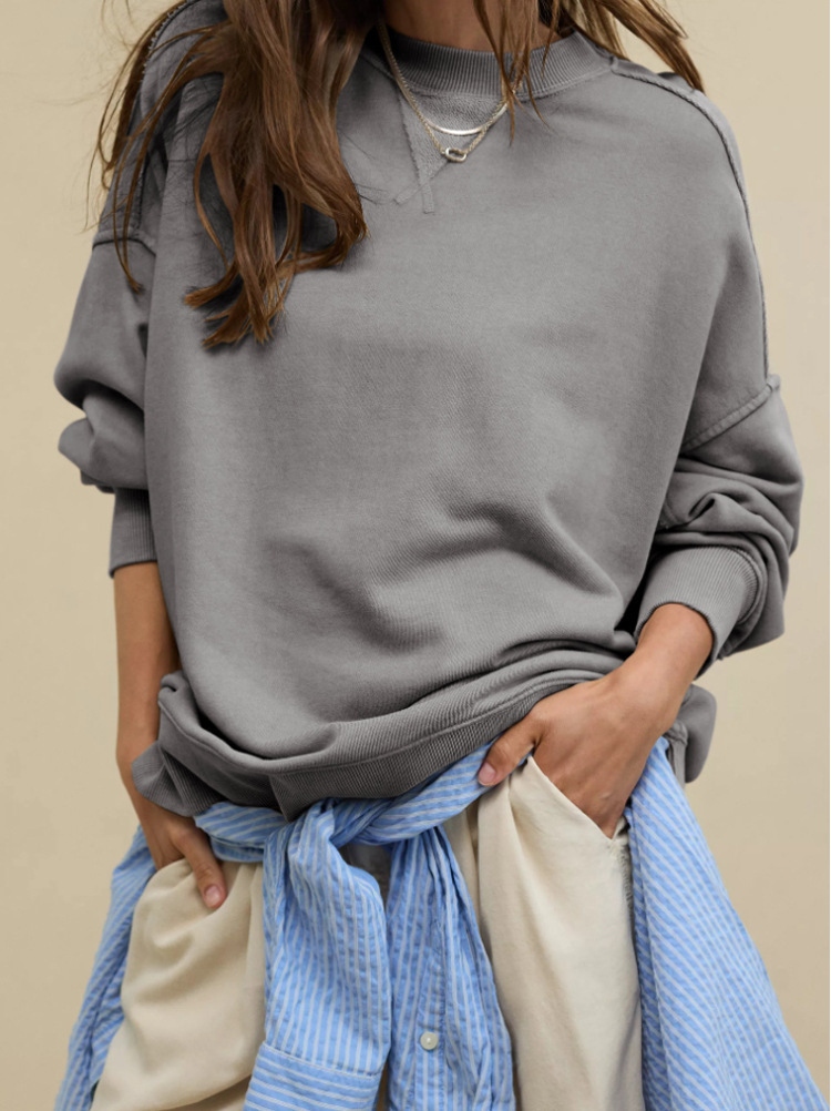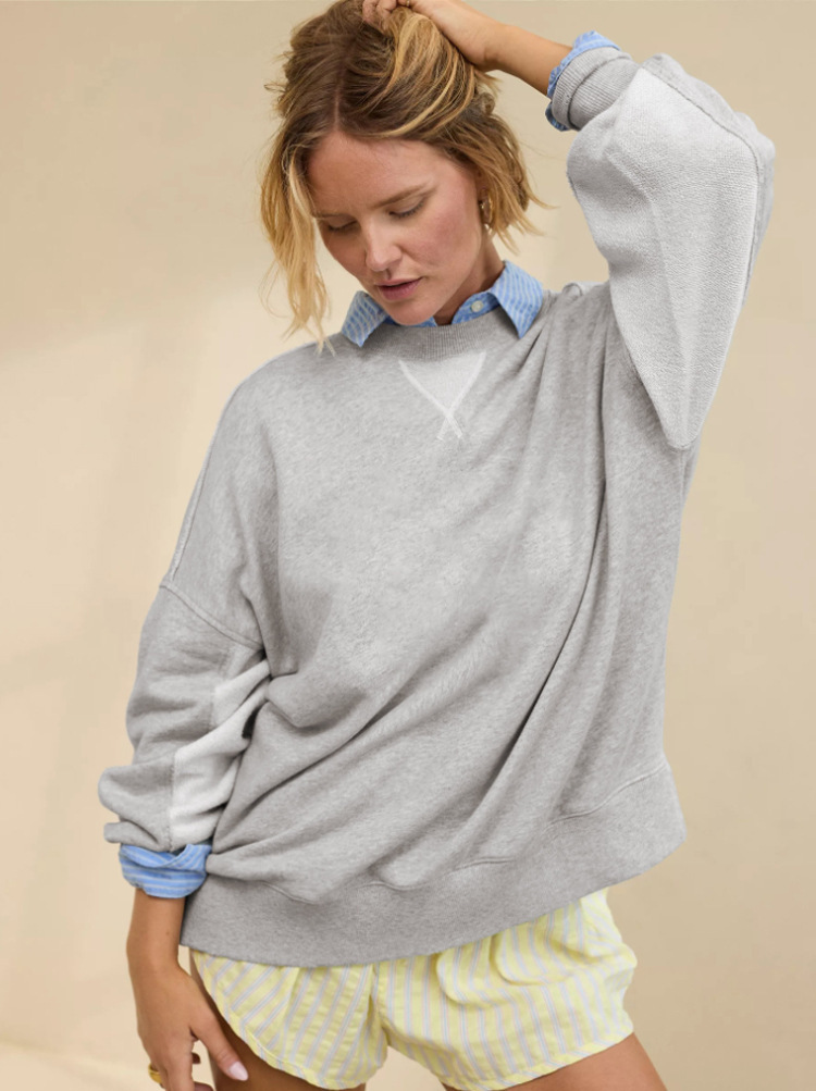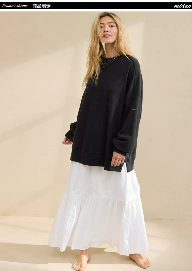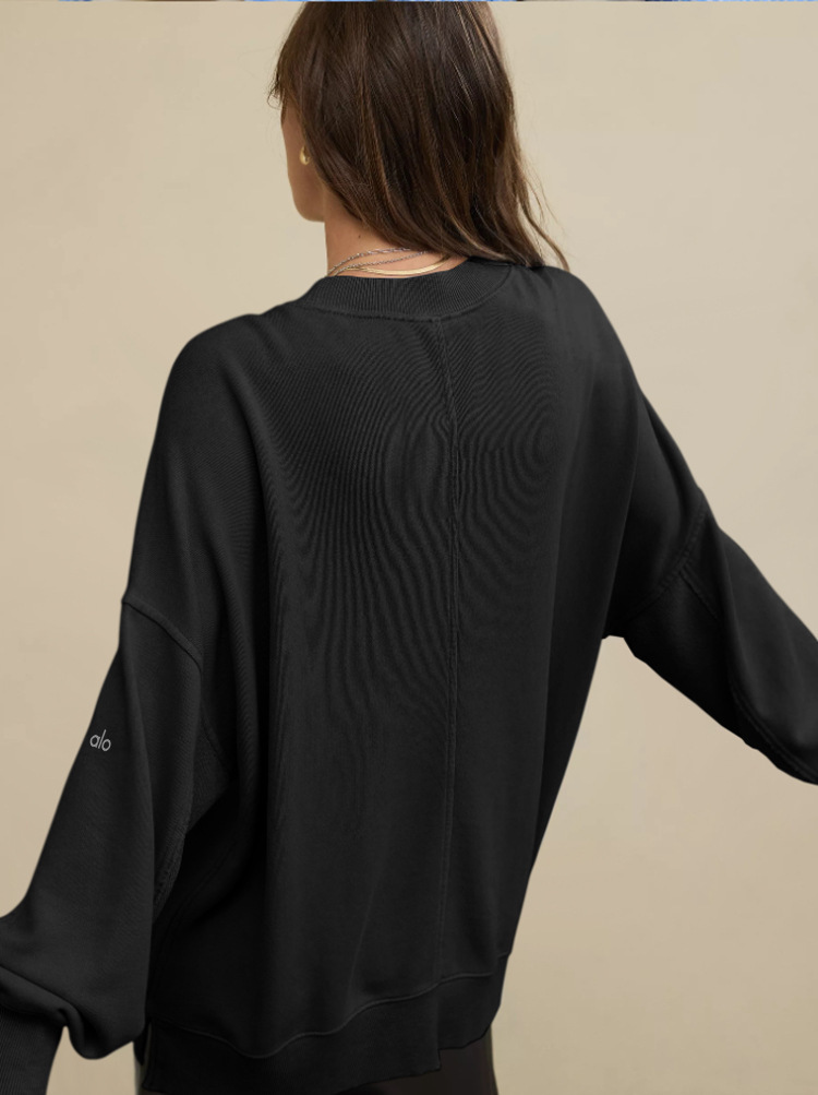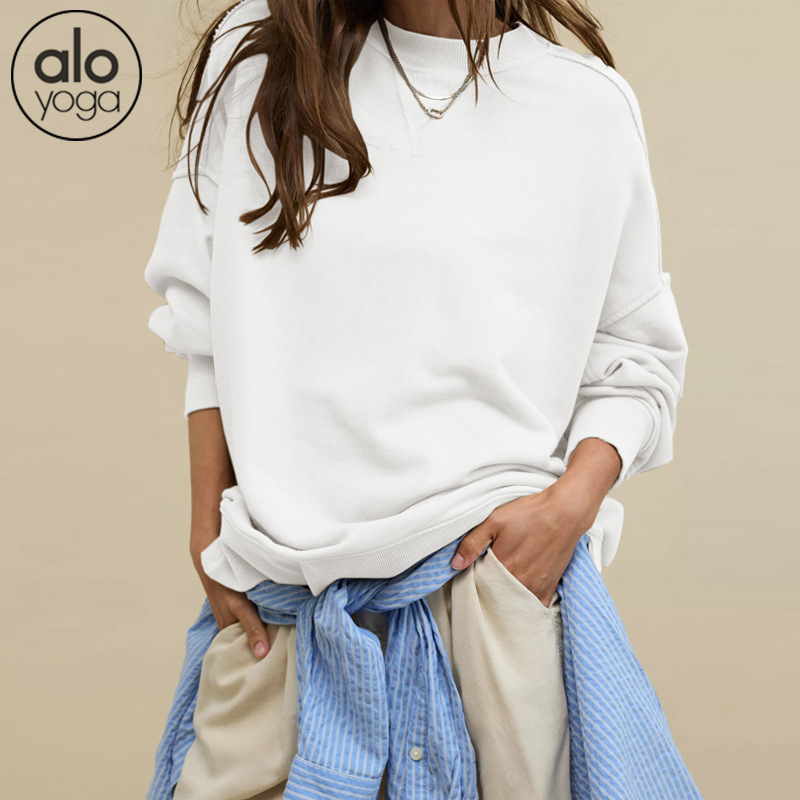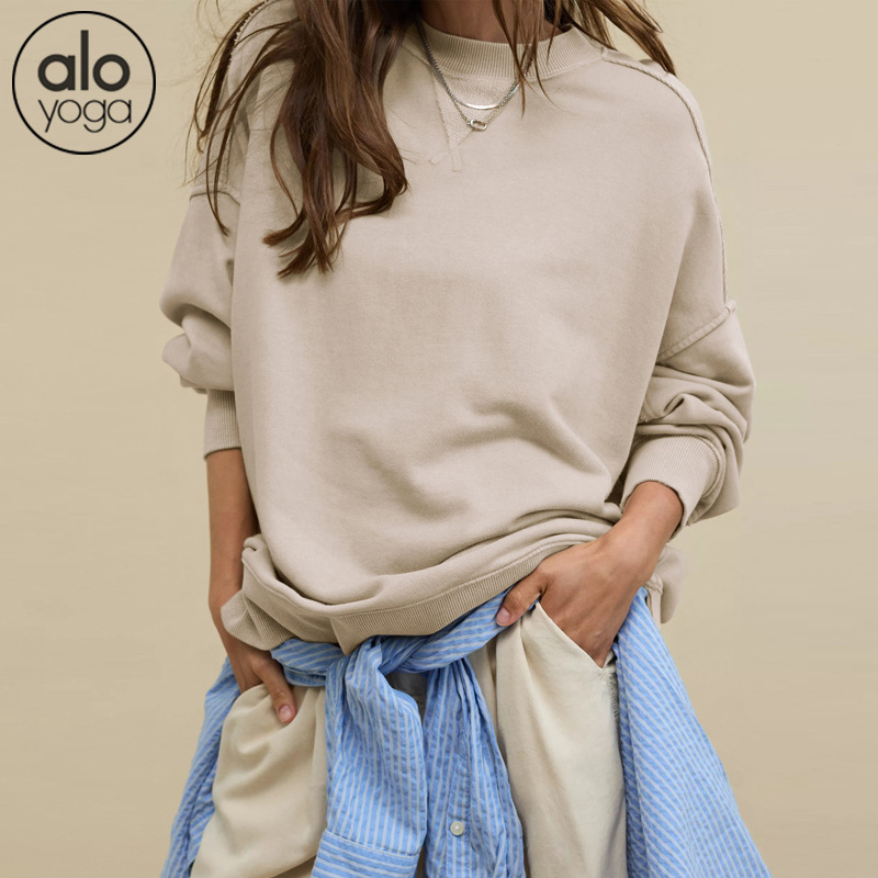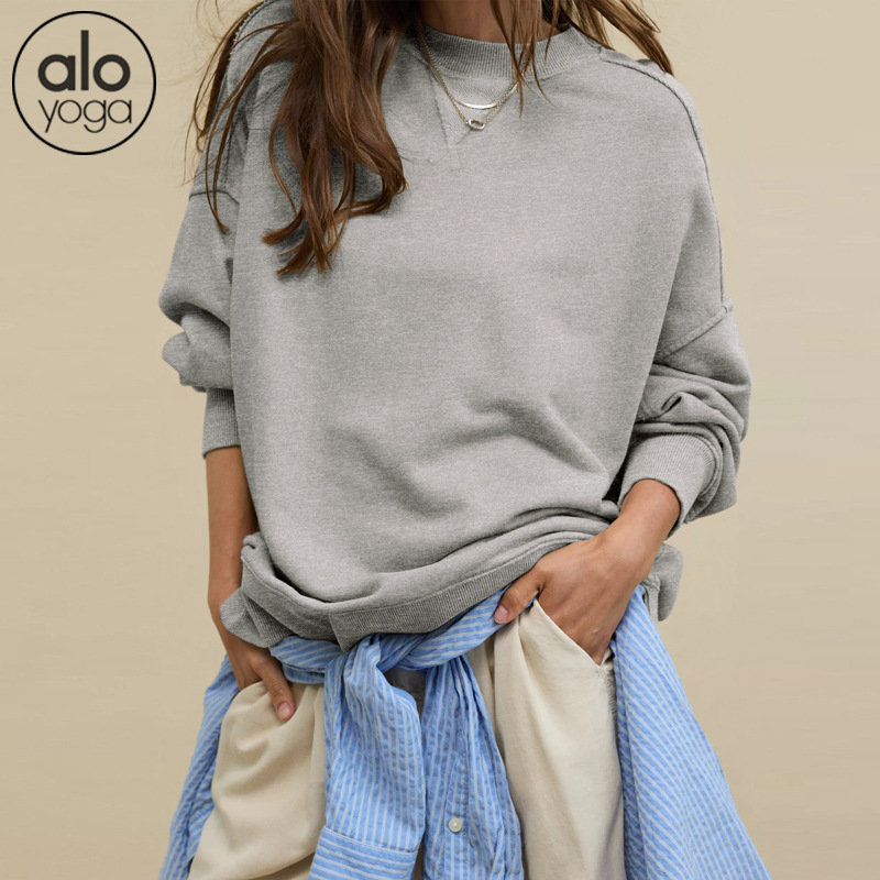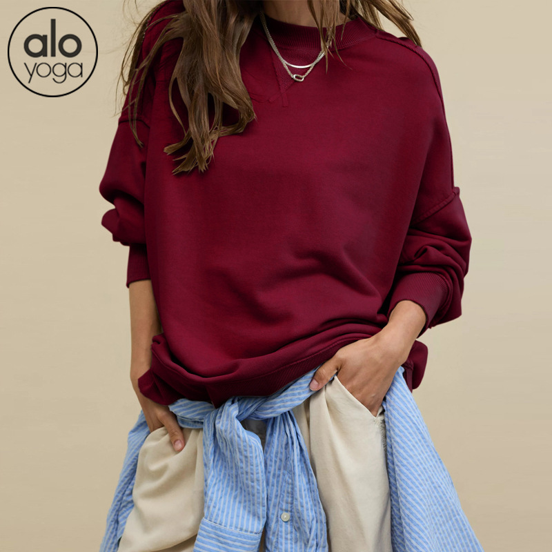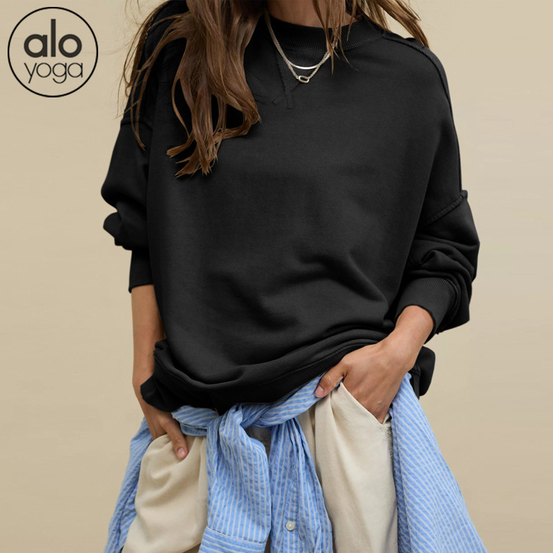 북미 alo 스포츠 스웨트셔츠 요가 여성용 가을 겨울 배색 루즈핏 드롭숄더 라운드넥 긴팔 상의 요가복