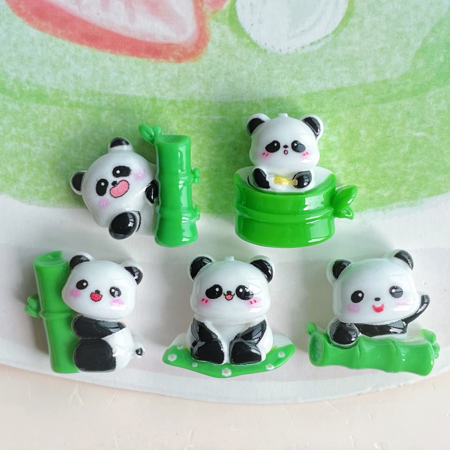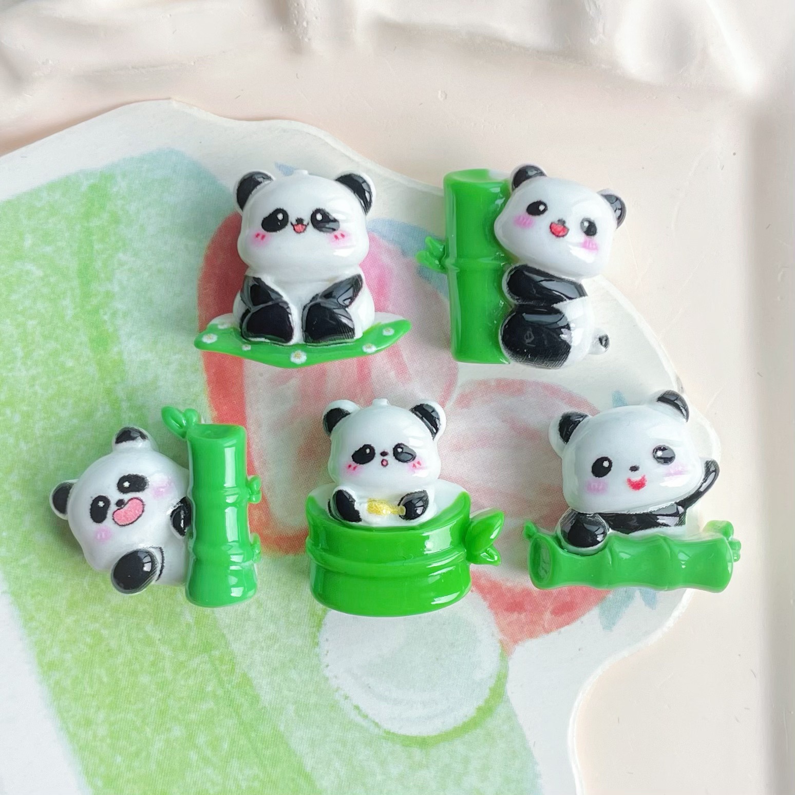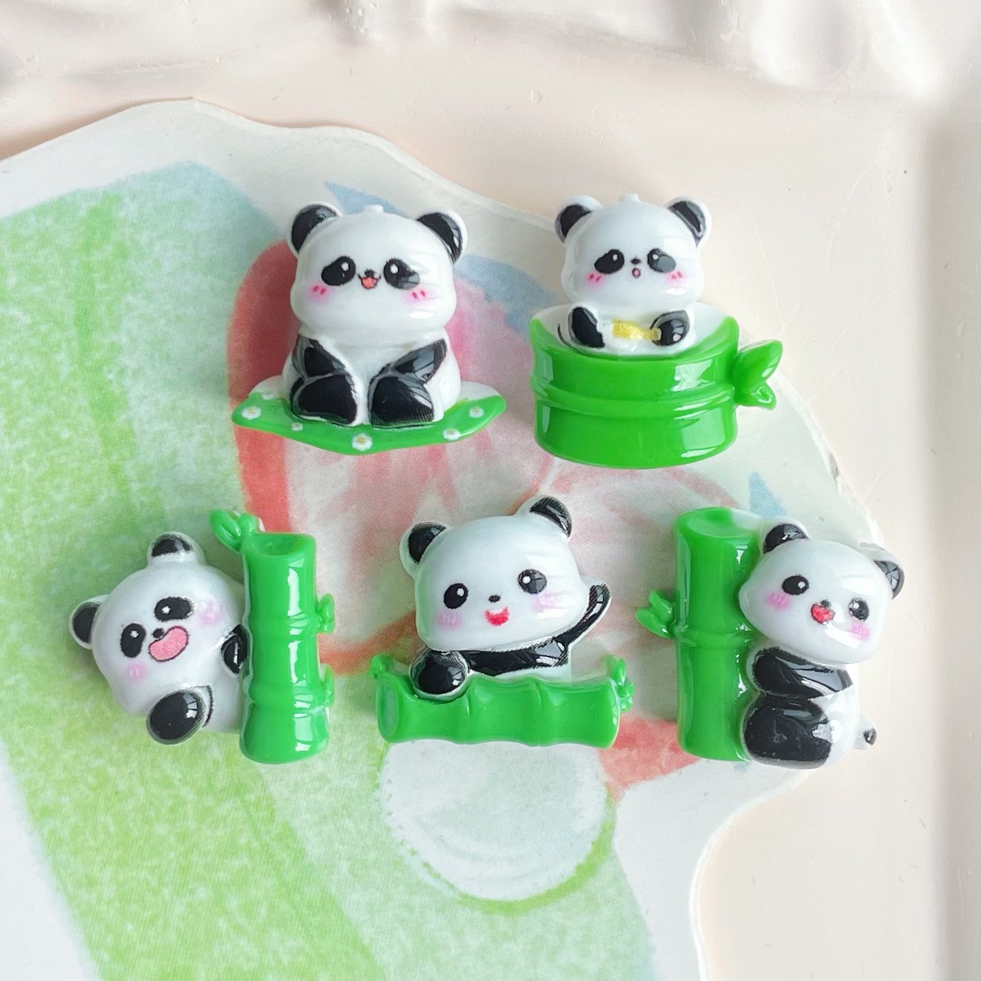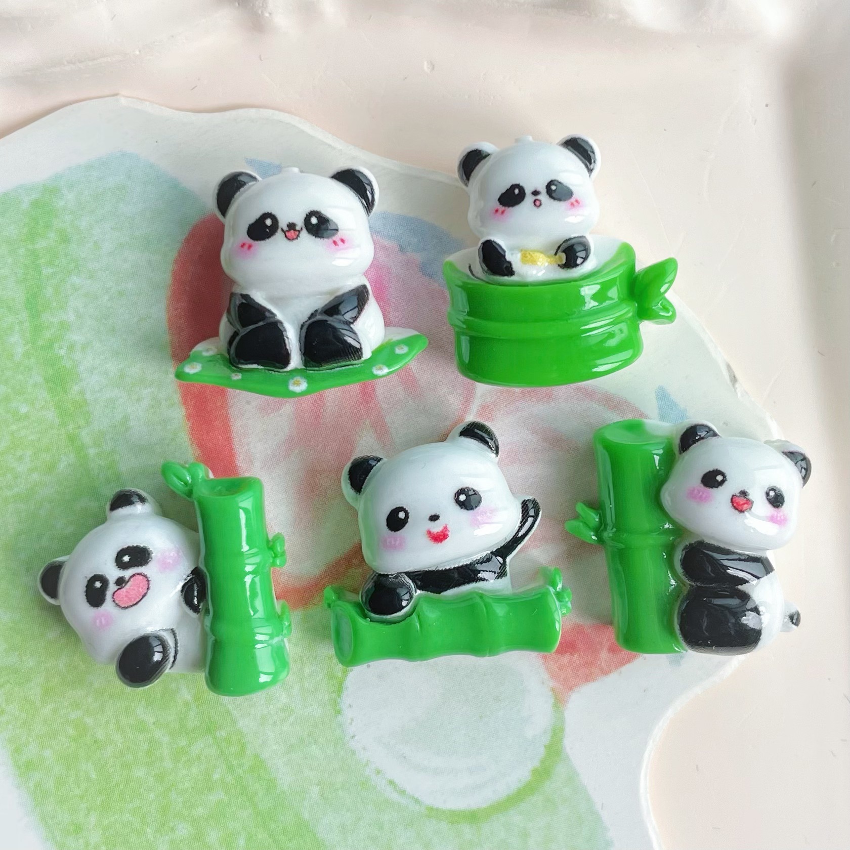 미니 스몰 사이즈 밝은 얼굴 귀여운 대나무 팬더 수지 보석 액세서리 수제 소재 가방 크림 접착제 휴대 전화 쉘 헤어