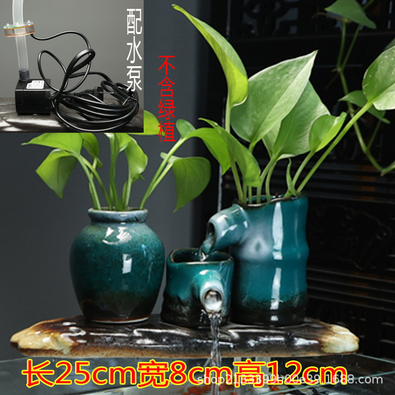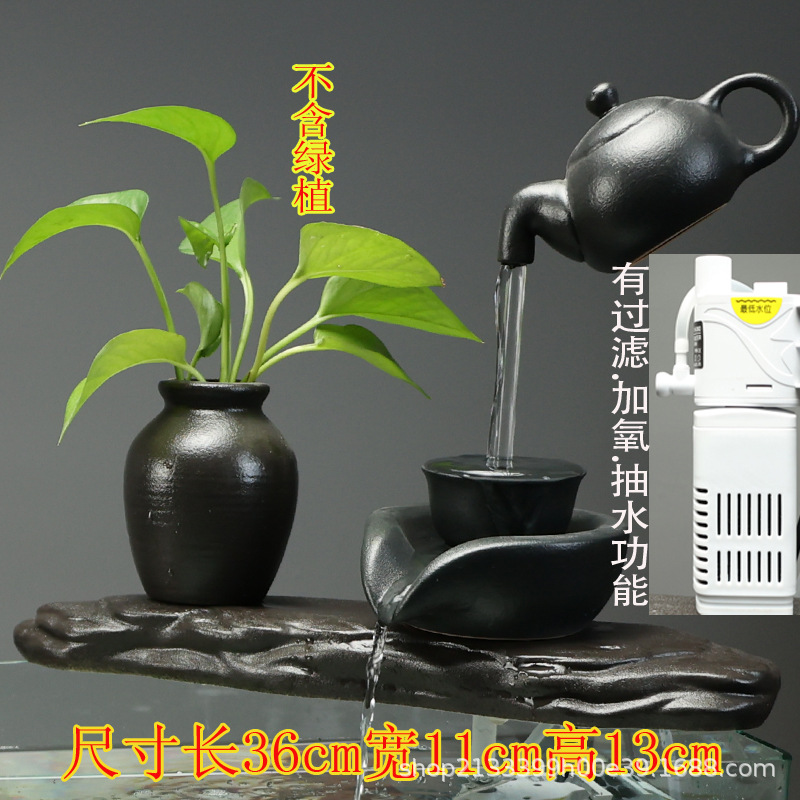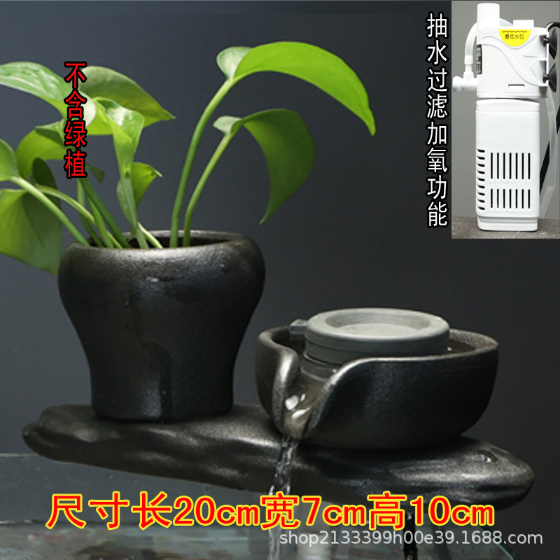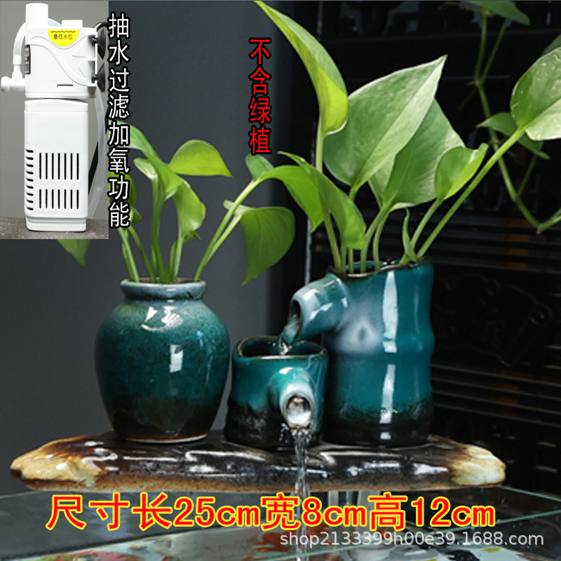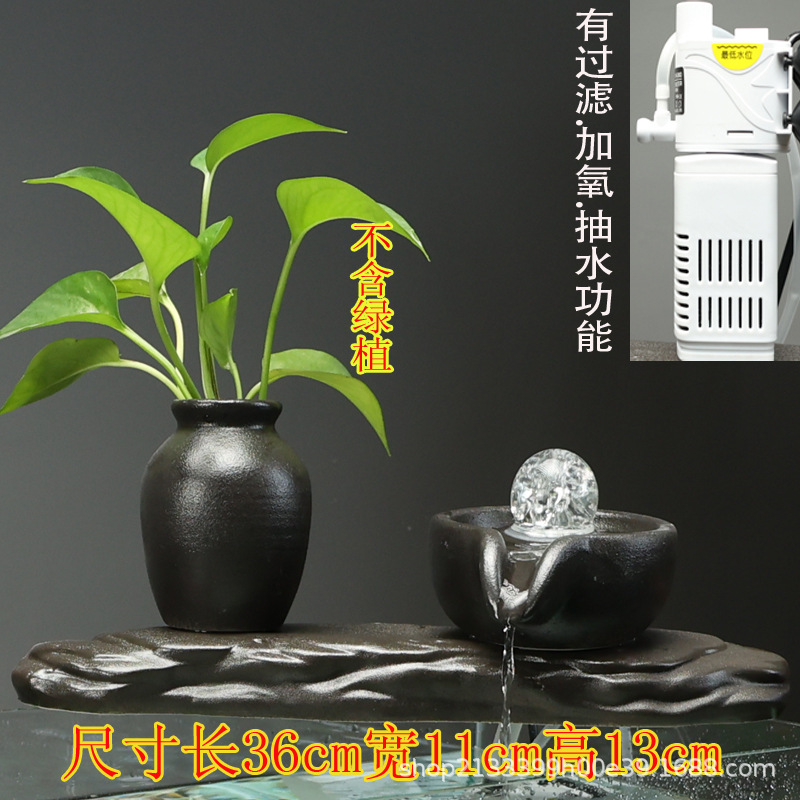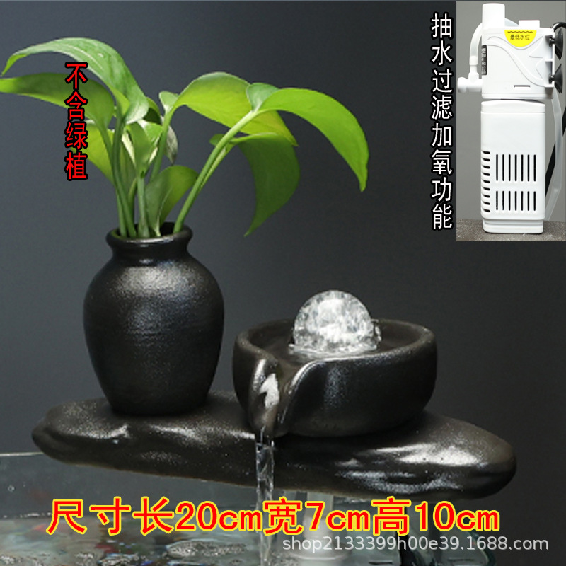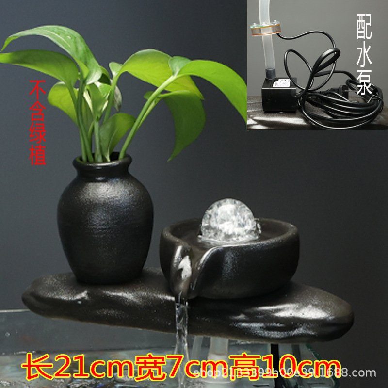 세라믹 유리 물고기 탱크 흐르는 물 재산 장식 비즈니스 선물 데스크탑 사무실 거실 실내 장식
