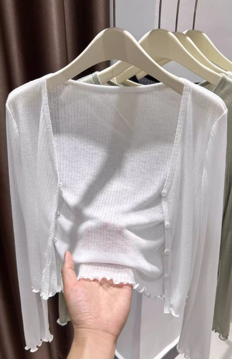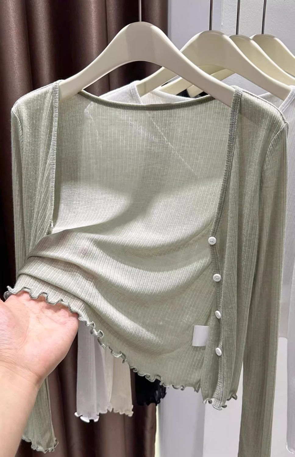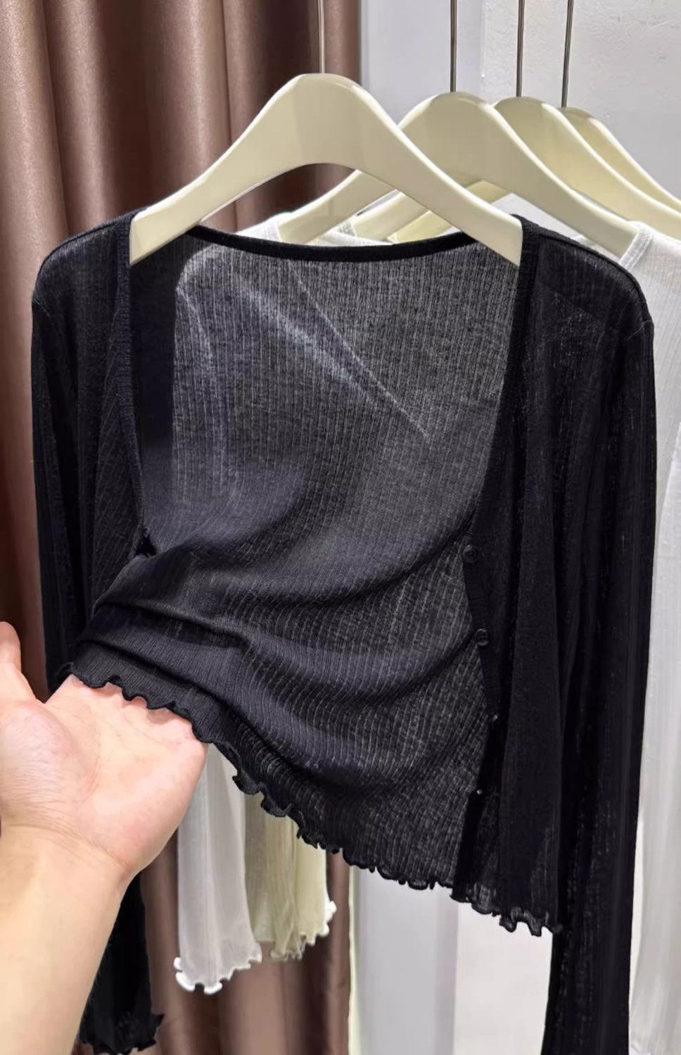 플러스 사이즈 아이스 실크 얇은 태양 보호 의류 카디건 여성용 통통한 여름 짧은 목도리 귀 가장자리와 블라우스 재킷