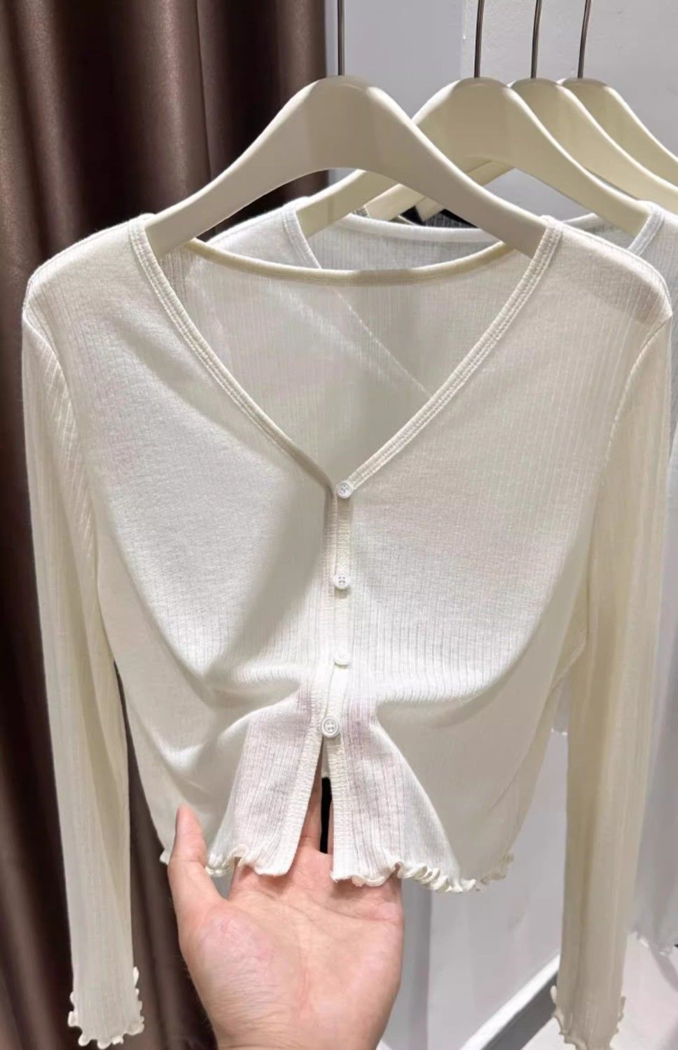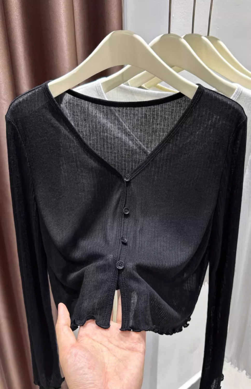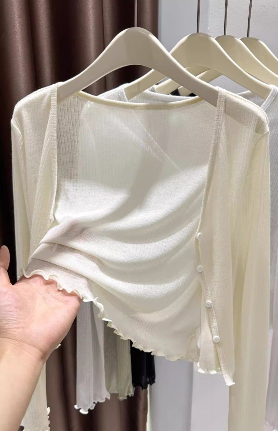 플러스 사이즈 아이스 실크 얇은 태양 보호 의류 카디건 여성용 통통한 여름 짧은 목도리 귀 가장자리와 블라우스 재킷