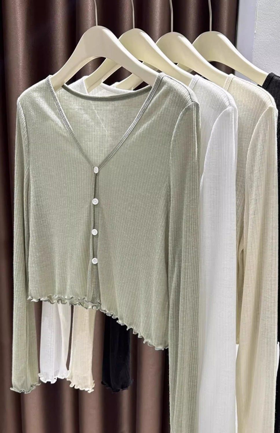 플러스 사이즈 아이스 실크 얇은 태양 보호 의류 카디건 여성용 통통한 여름 짧은 목도리 귀 가장자리와 블라우스 재킷스토어 가기