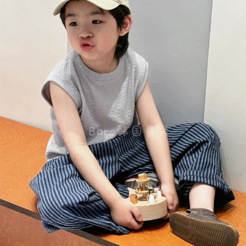 남학생의 한국식 착용 세트 어린이 여름 서양식 유행 조끼 소녀와 아기의 얇은 폭발성 인터넷 인기 투피스 세트스토어 가기