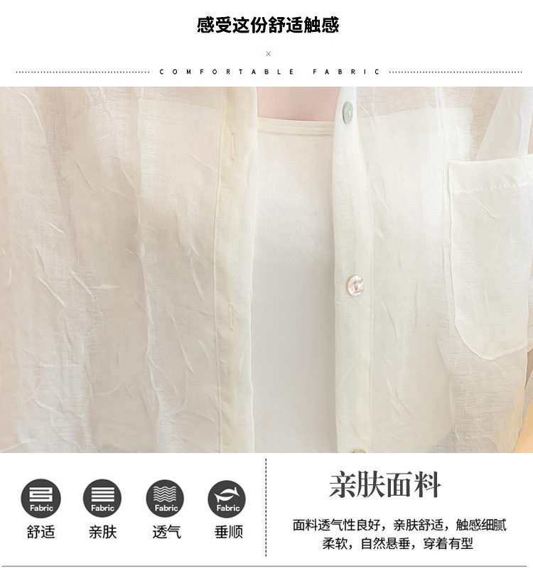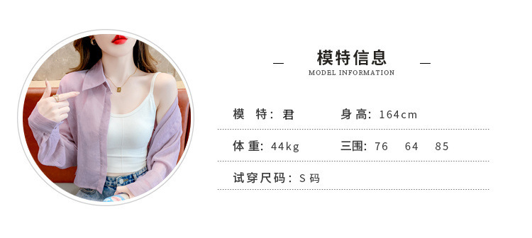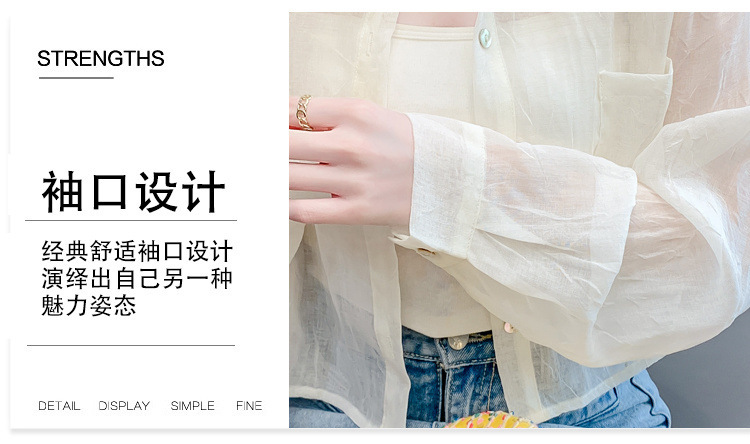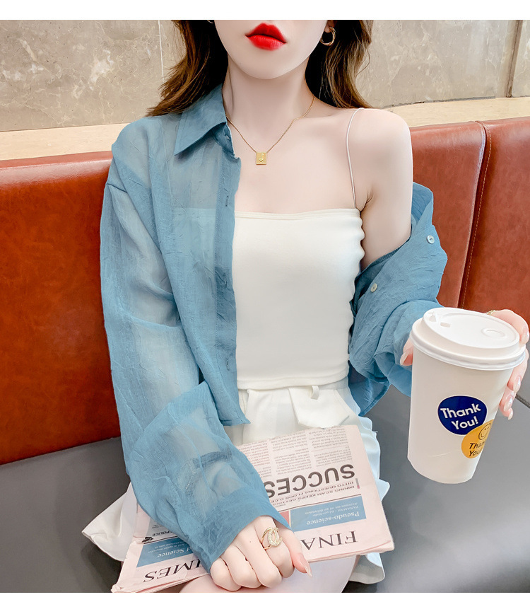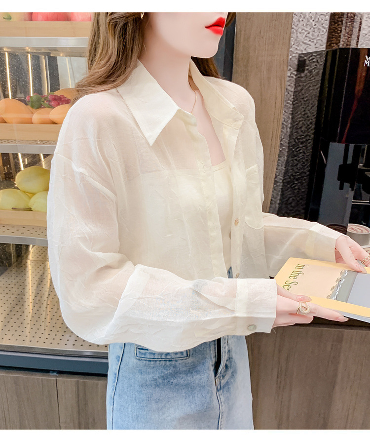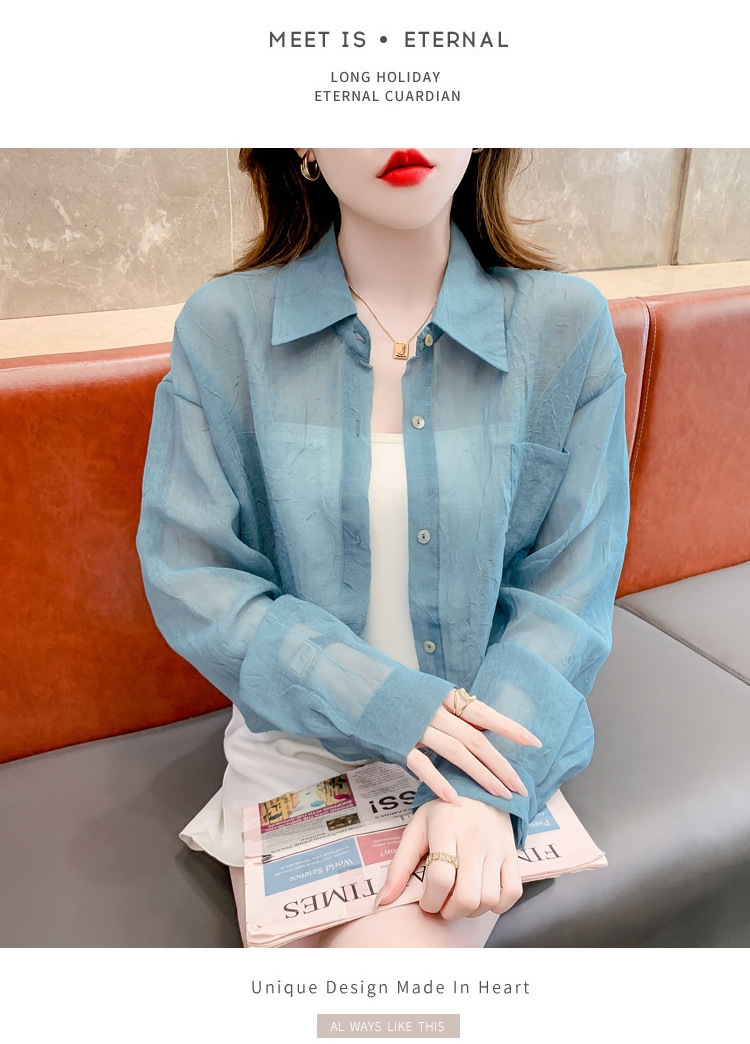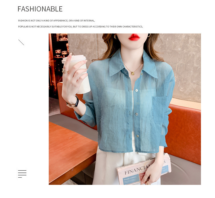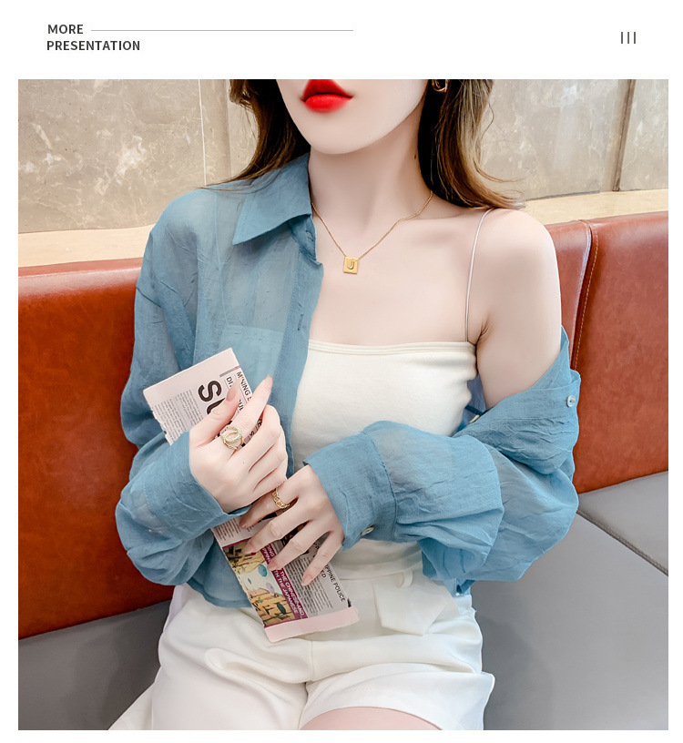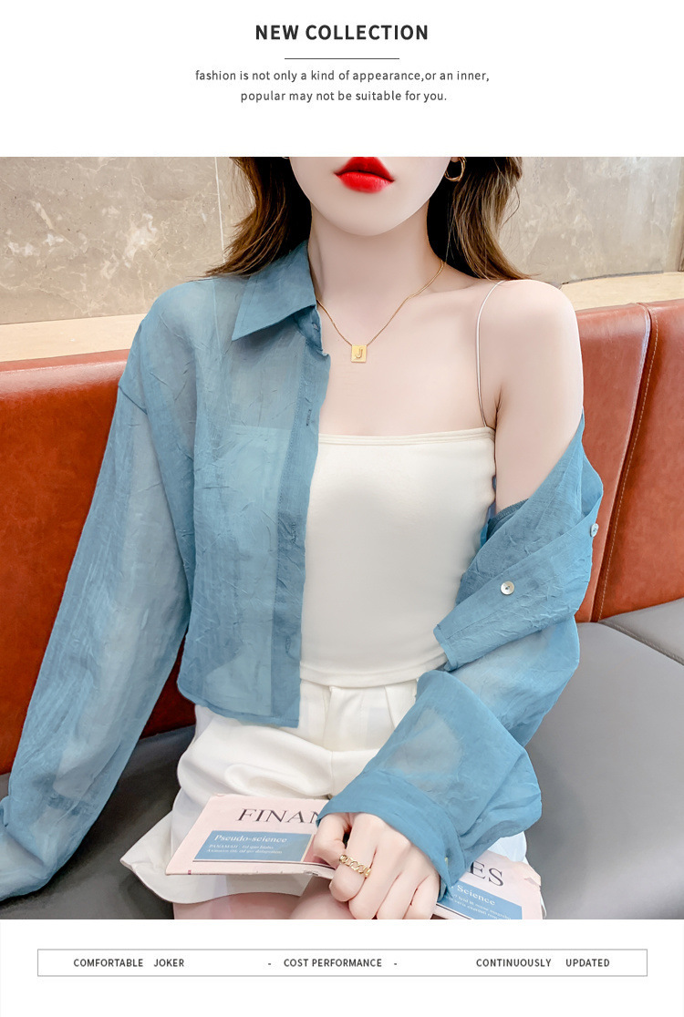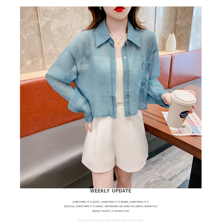 여성 선 스크린 의류 2024 새로운 여름 얇은 짧은 셔츠 재킷 패션 서양식 긴 소매 쉬폰 탑스토어 가기