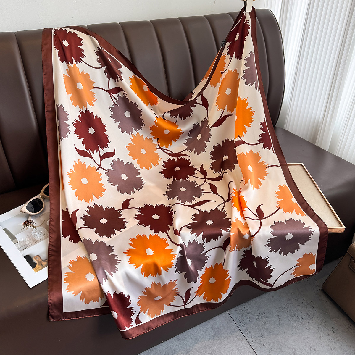 2025 새로운 도착 인쇄 유행 실크 스카프 작은 꽃 시대 감소 봄 여름 한국 스타일 올매치 선스크린 목도리 목 보호 스카프 여성스토어 가기