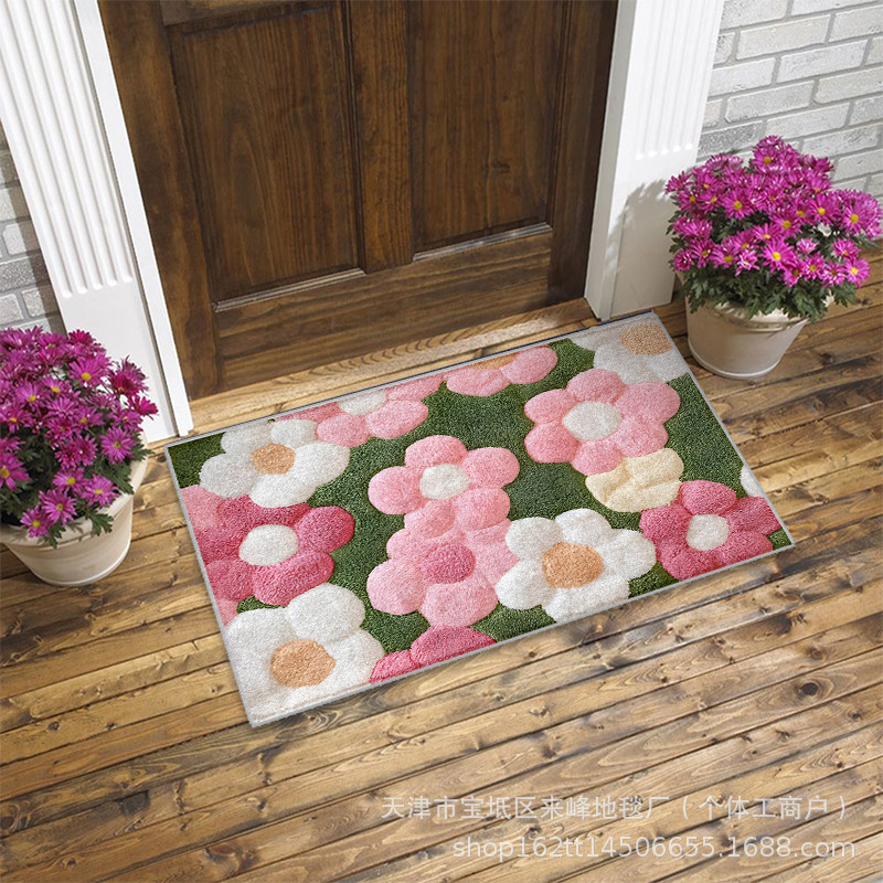 Ins 스타일 꽃 모조 캐시미어 바닥 매트 가정용 화장실 문 미끄럼 방지 발 매트 욕실 흡수성 발 매트 침대 옆 매트스토어 가기