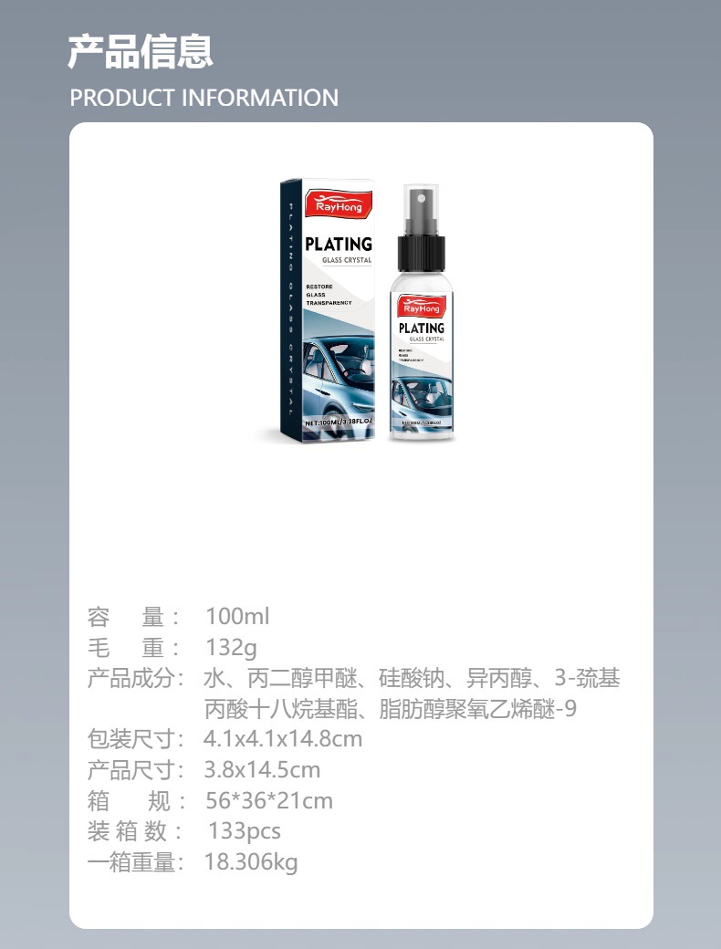 RAYHONG 유리 추적 제거제 자동차 창 방비 및 방오 물 추적 앞 유리 코팅 에이전트