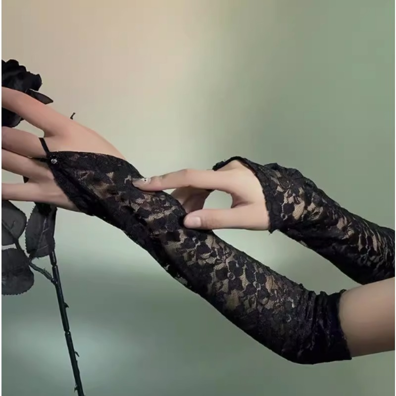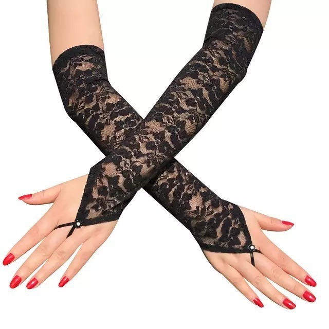 디아블로 스타일 섹시한 긴 블랙 레이스 장갑 얇은 원피스 손 소매 복고풍 사진 할로윈 소품