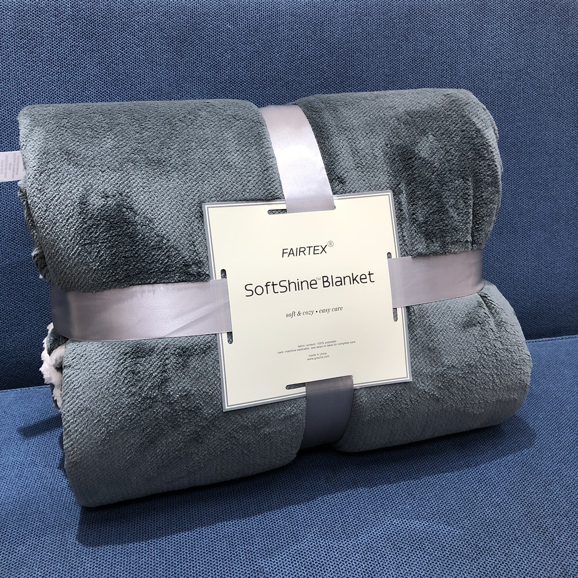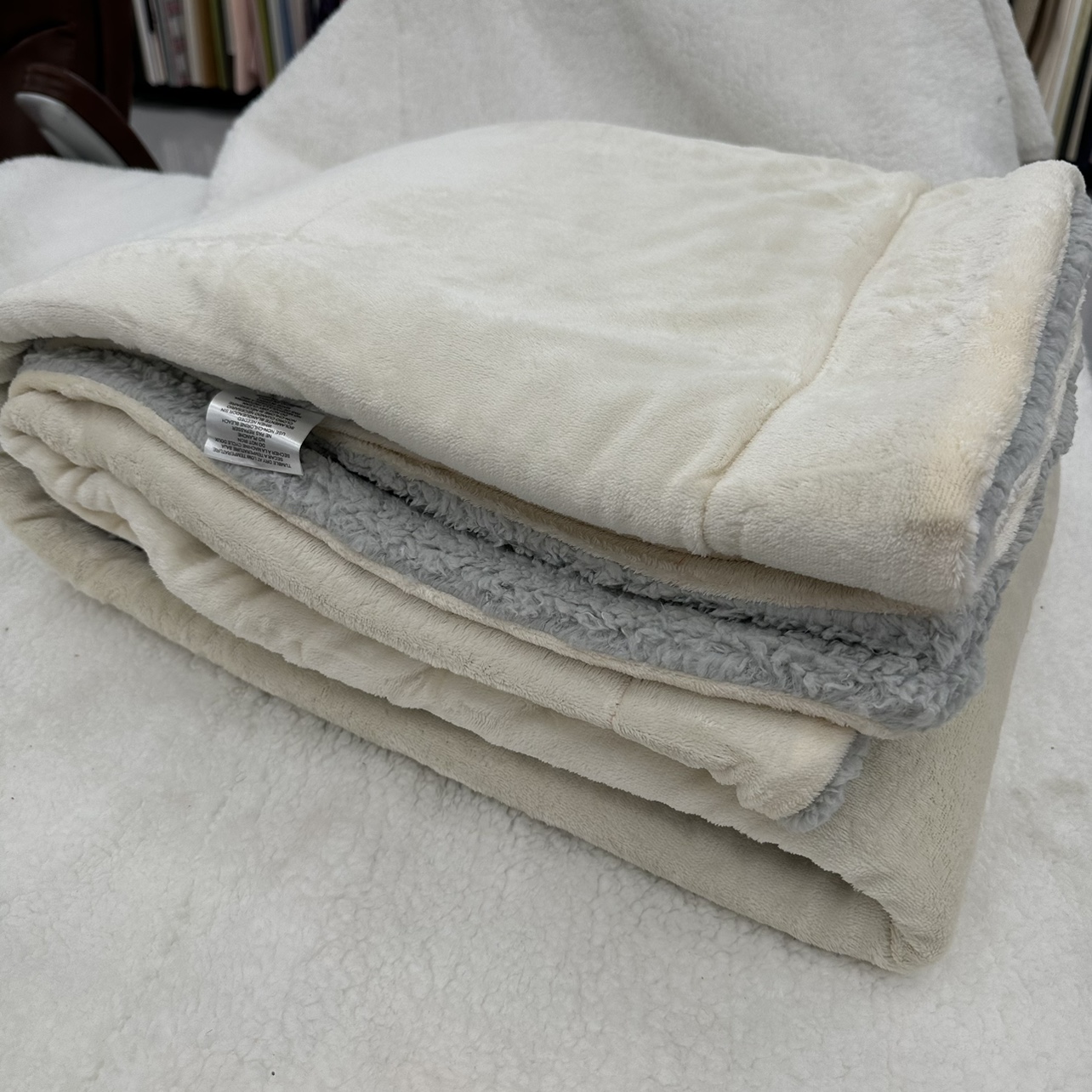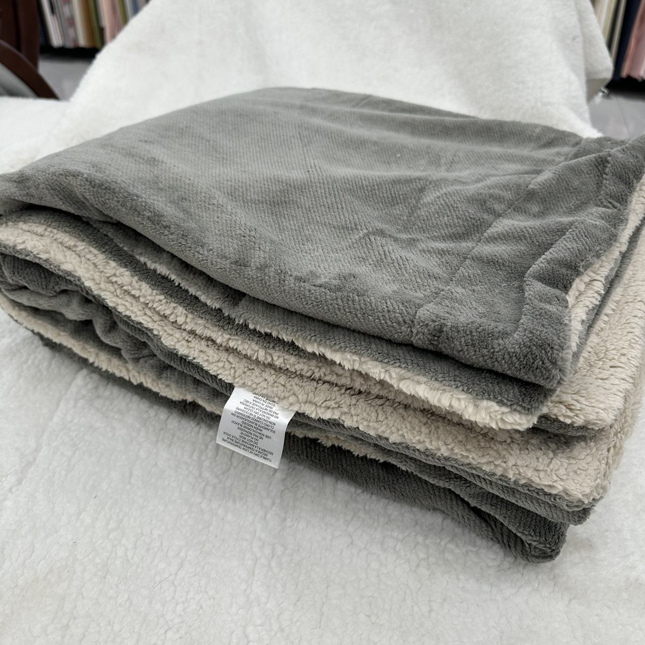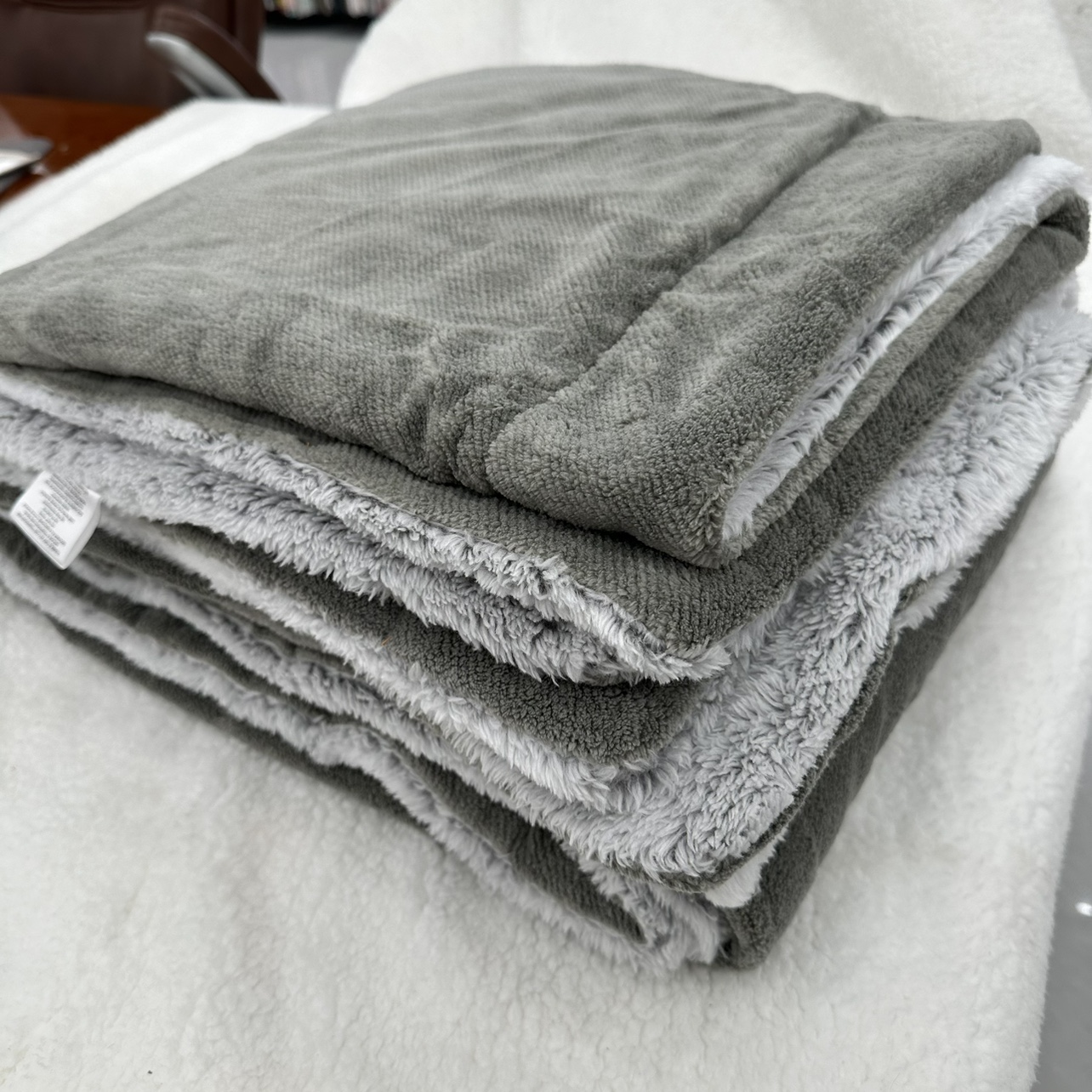 • 미디엄 그레이 + 그레이 백 프린트 슈 코튼 벨벳 더블 레이어 담요