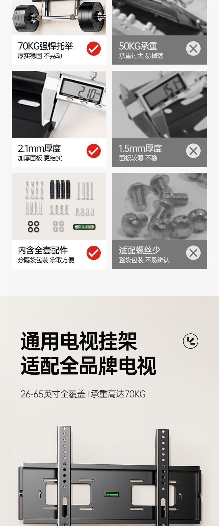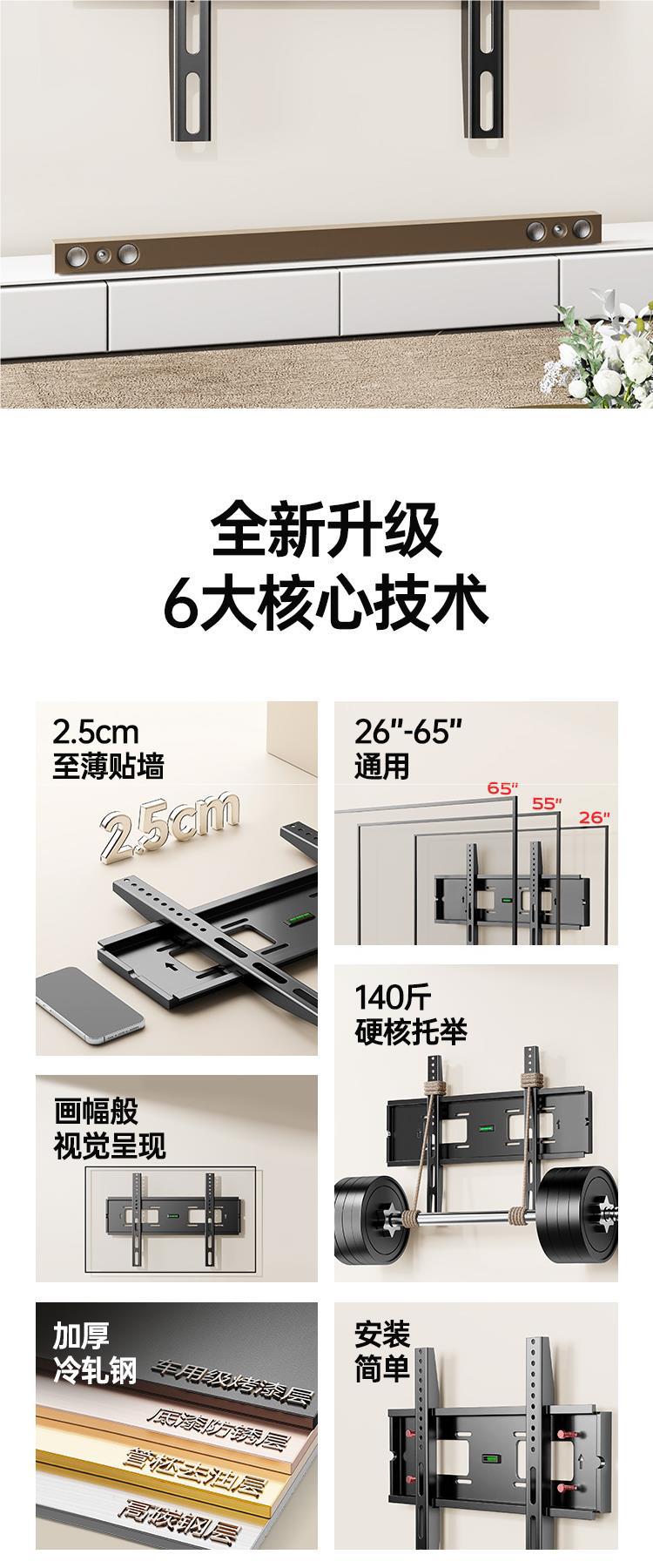 샤오미 스카이 워스 TCL55 65 인치 선반을위한 유니버설 TV 행거 유니버설 벽 걸이