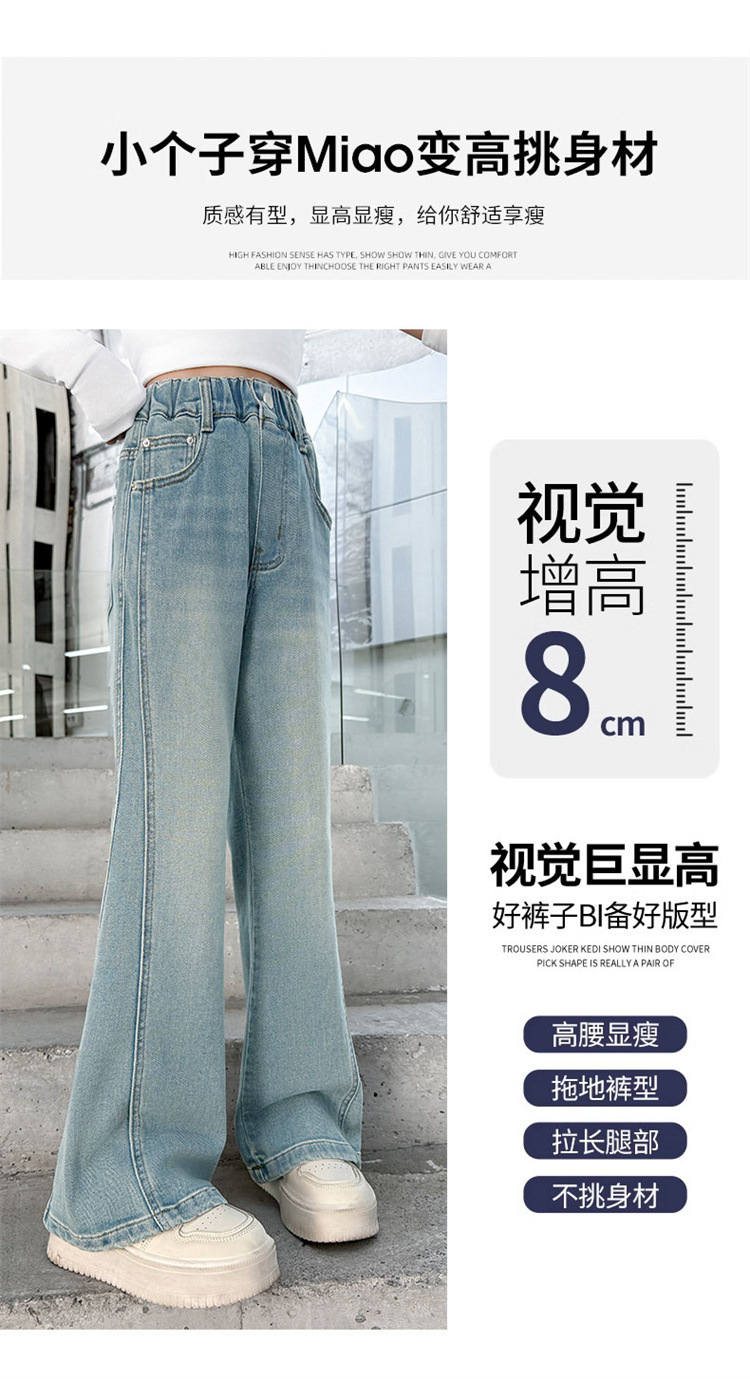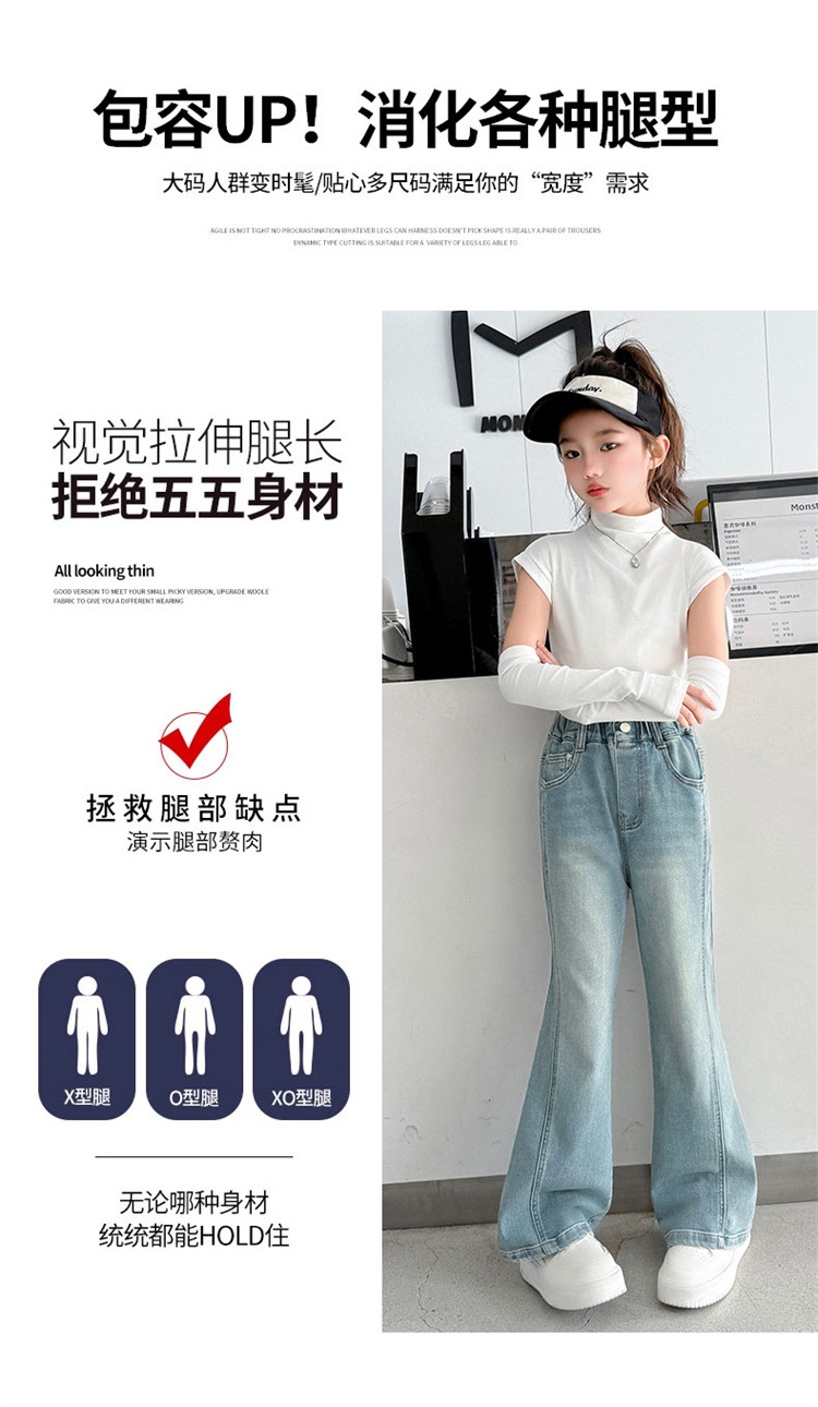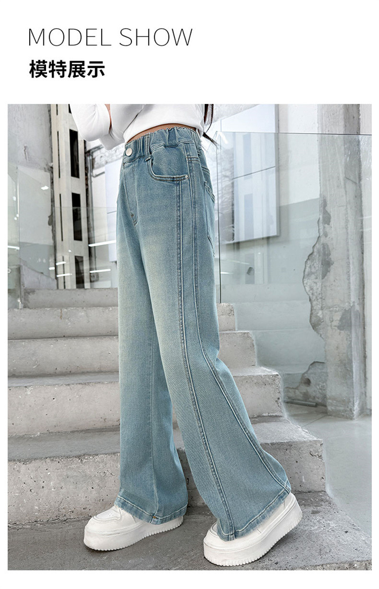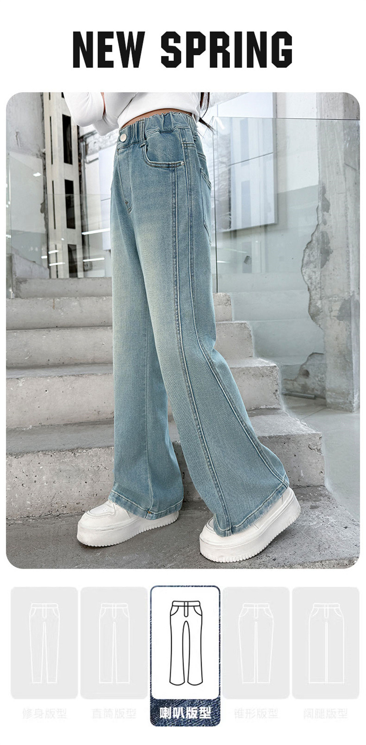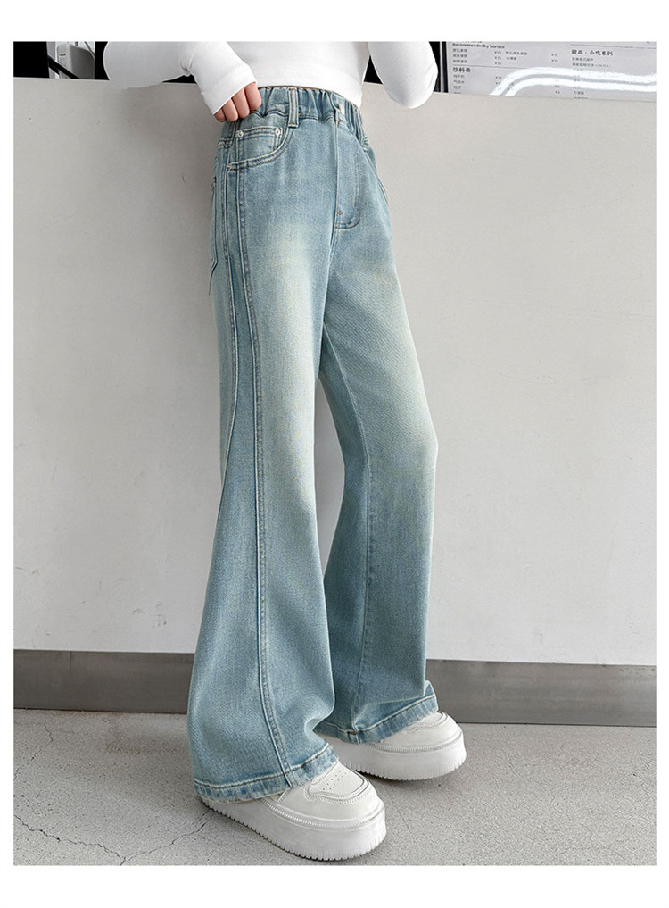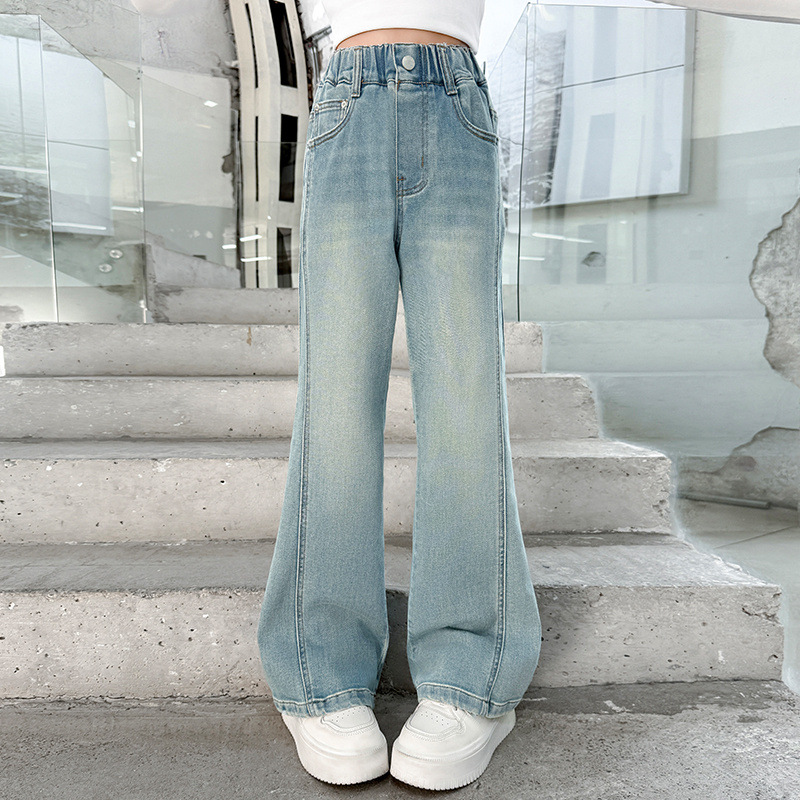 소녀 데님 플레어 바지 봄과 가을 2025 새로운 대형 어린이 봄 마이크로 풀 탄성 바지 도매 조수