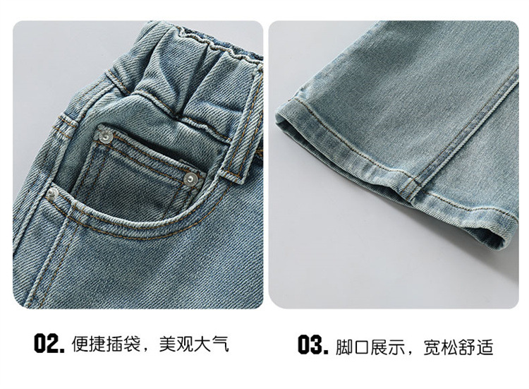 소녀 데님 플레어 바지 봄과 가을 2025 새로운 대형 어린이 봄 마이크로 풀 탄성 바지 도매 조수스토어 가기